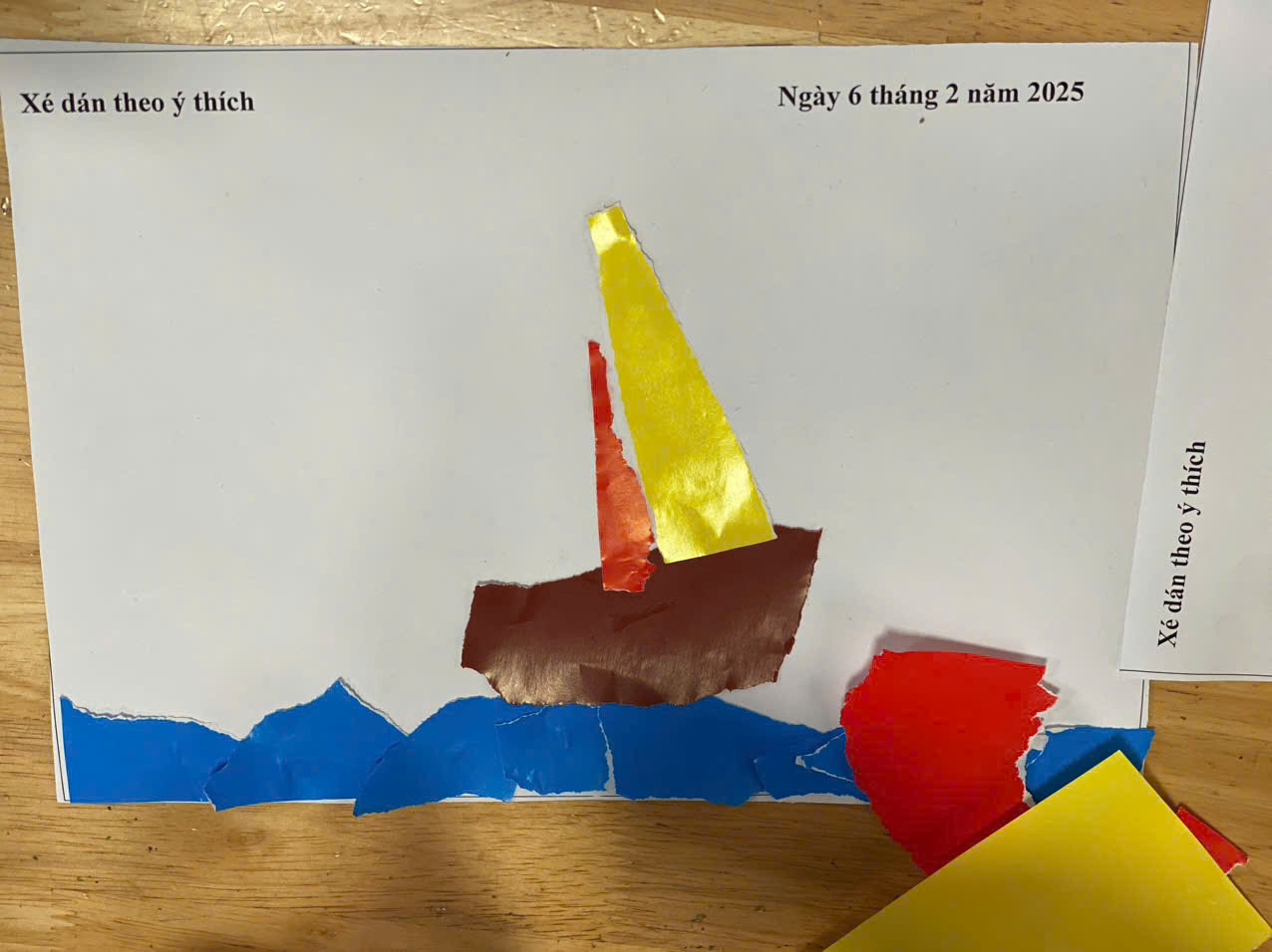 Trong hoạt động tạo hình hôm nay của lớp mẫu giáo lớn A3, các bé đã được xé dán con thuyền với nhiều hình dáng, màu sắc vô cùng sáng tạo