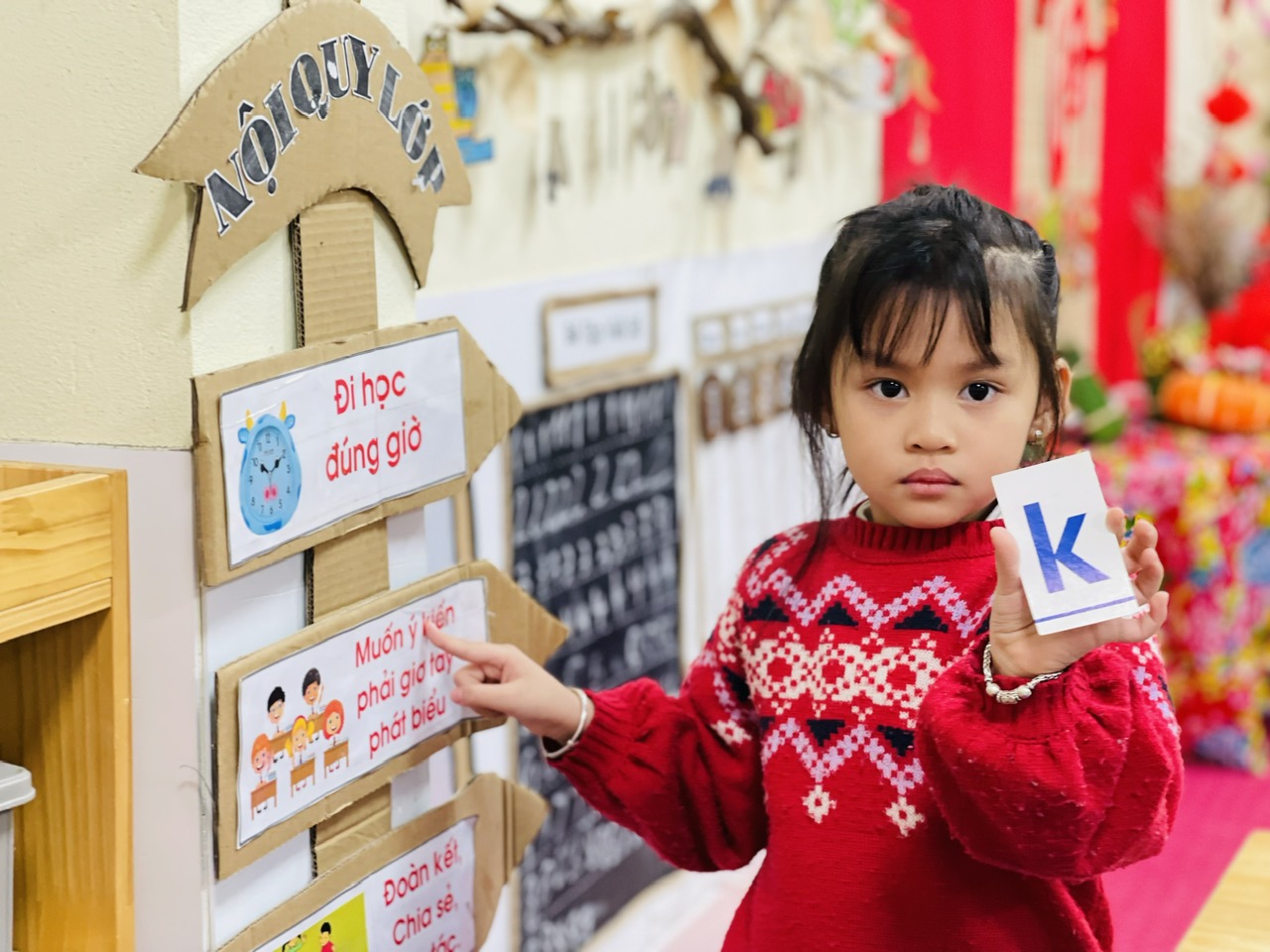 Với hoạt động Trò chơi chữ cái h- k, các bé lớp A2 vô cùng hứng khởi và tham gia tích cực. Giáo viên đã xây dựng nội dung các trò chơi với chữ cái phong phú, đa dạng sử dụng nhiều hình thức, nguyên liệu trò chơi gần gũi với trẻ. trò chơi hấp dẫn, thú vị mức độ chơi, hình thức trò chơi thảo mãn nhu cầu về trí tuệ của trẻ, kết quả chơi có yếu tố bất ngờ và luật chơi đơn giản giúp trẻ dễ nhớ. Đồ chơi đi kèm các trò chơi có thể sử dụng trong nhiều trò chơi. Đối tượng tham gia các trò chơi cũng rất linh hoạt, trẻ có thể chơi một mình hoặc chơi theo nhóm. Các trò chơi có thể tổ chức theo các hoạt động góc, hoạt động chiều...thu hút sự tham gia của trẻ.