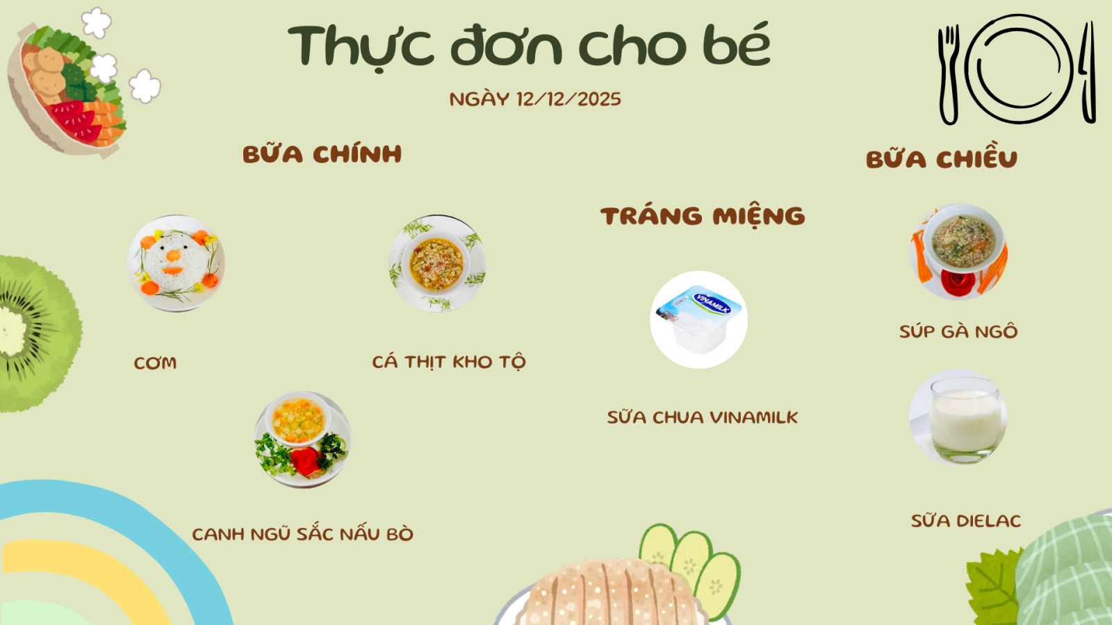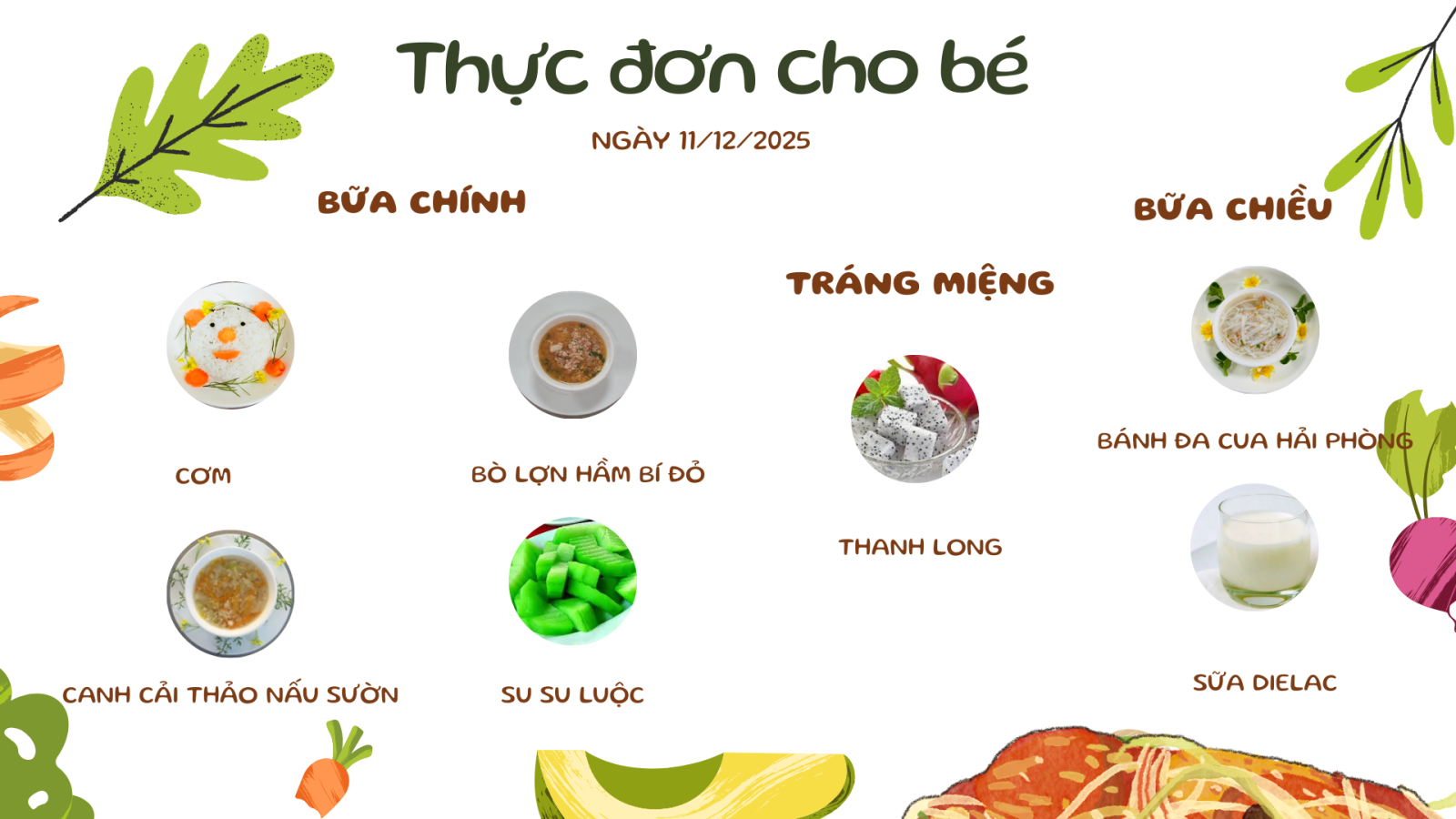 Thực đơn cho trẻ tuần II tháng 12/2025