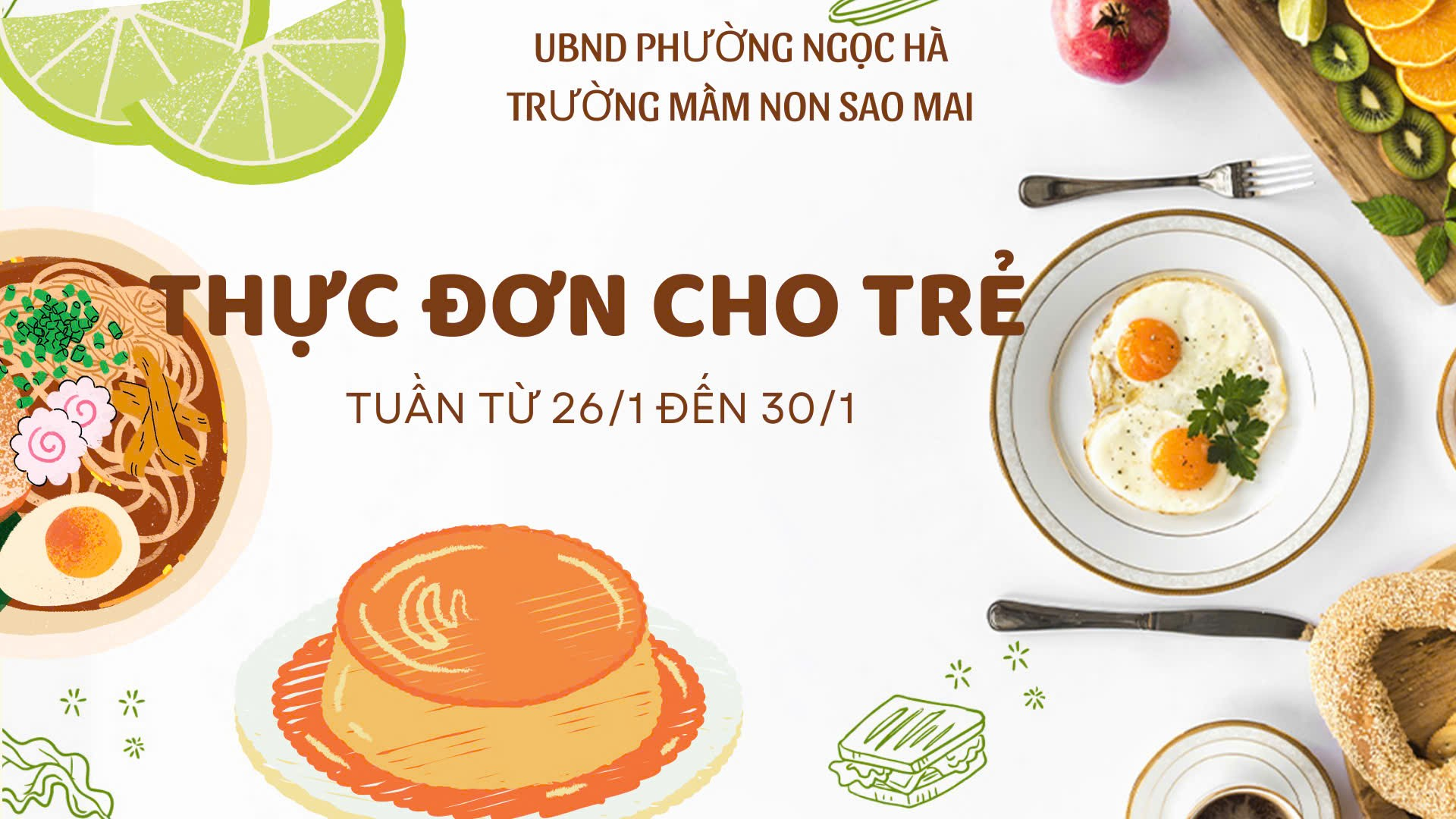 Trường Mầm non Sao Mai xin trân trọng gửi tới Quý phụ huynh Thực đơn cho trẻ tuần IV tháng 1/2026 (từ ngày 26 - 30/1/2026). Thực đơn được thiết kế đa dạng, đủ chất và an toàn, nhằm mang đến cho các con những bữa ăn ngon miệng, hỗ trợ phát triển khỏe mạnh mỗi ngày. Chúc các con luôn ăn ngon, lớn khỏe!