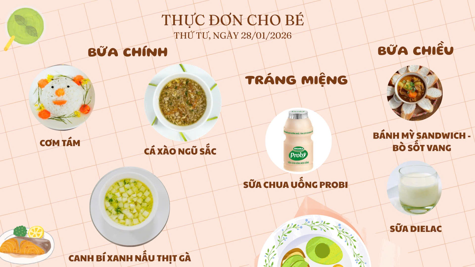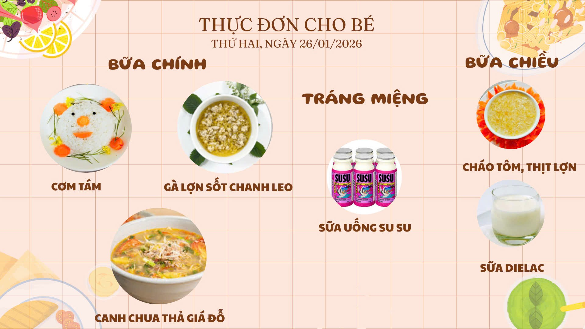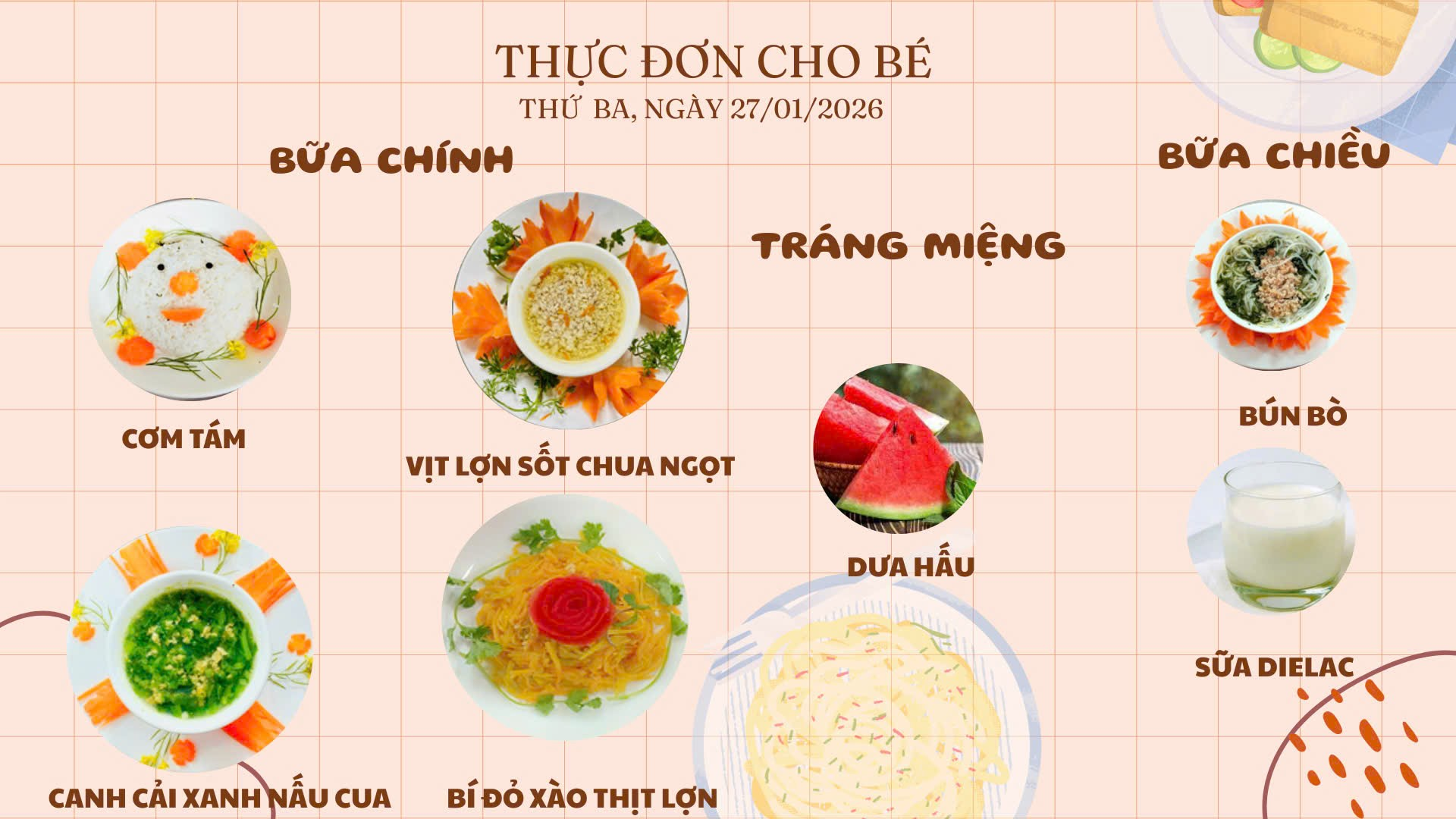 Thực đơn cho trẻ tuần IV tháng 1 năm 2026