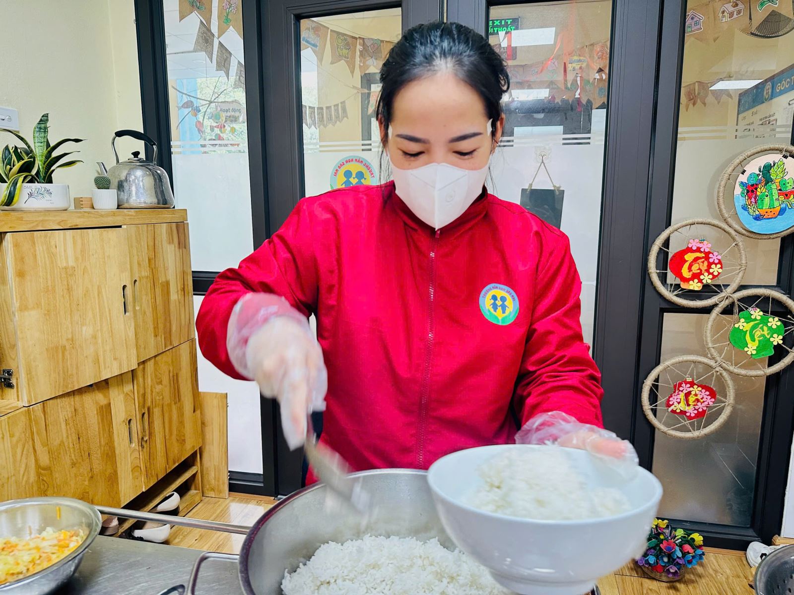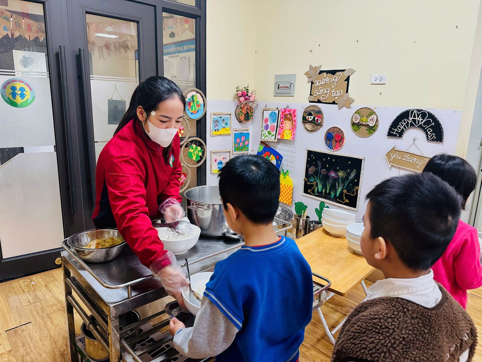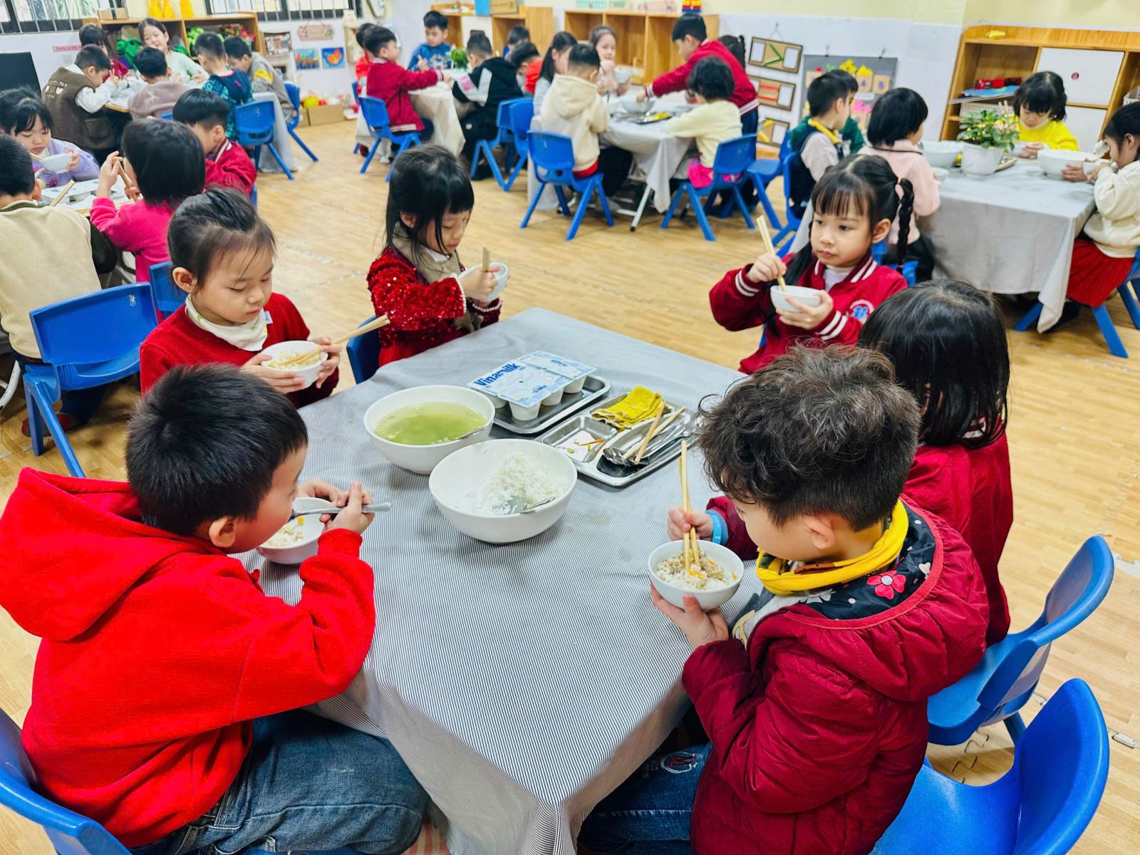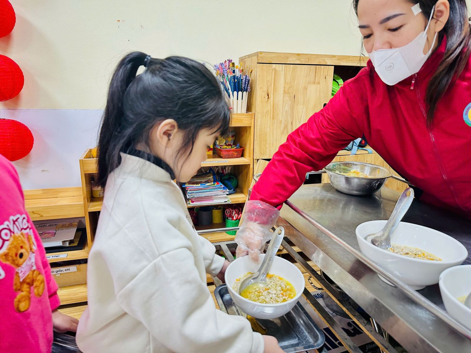 Trong công tác nuôi dưỡng thì việc tổ chức cho trẻ ăn bán trú rất quan trọng, góp phần nâng cao thể lực, phát triển tầm vóc cho trẻ. Tại trường Mầm non Sao Mai, việc tổ chức cho trẻ ăn bán trú thông qua các hình thức tổ chức bữa ăn thường, bữa ăn khay, bữa cơm gia đình được duy trì thường xuyên hàng tháng, hàng tuần. Mỗi một hình thức trẻ sẽ được trải nghiệm theo nhiều cách khác nhau, mang đến cho trẻ cảm xúc mới lạ khi dùng bữa tại nhà trường.