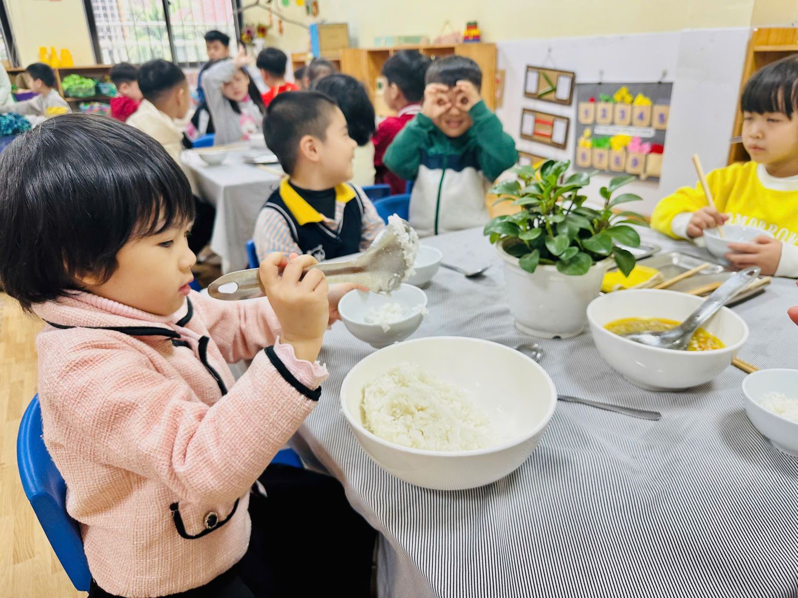 Tổ chức “Bữa ăn gia đình” ấm áp, yêu thương tại lớp A4 trường Mầm non Sao Mai