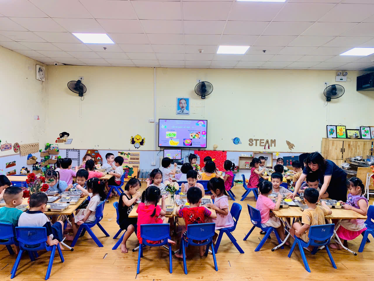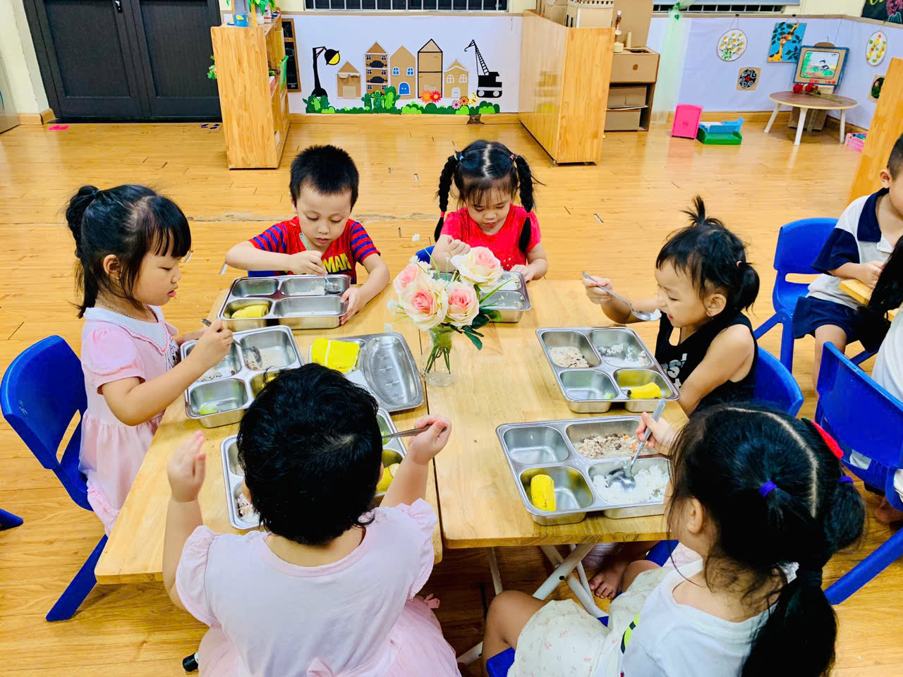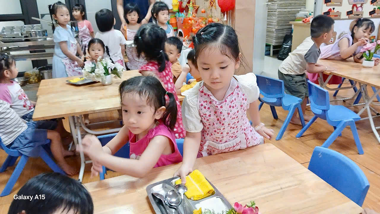 Niềm vui hiện rõ trên từng gương mặt của các bé lớp MGN B4 khi tự tay cầm khay cơm, lựa chọn món ăn và thưởng thức bữa trưa cùng bạn bè. Những ánh mắt sáng ngời, nụ cười rạng rỡ chính là minh chứng cho thành công của hoạt động này.