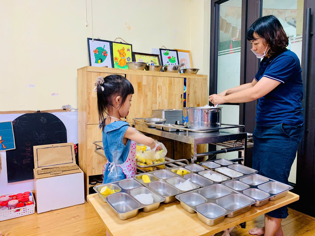 Thông qua hình thức ăn khay, các con không chỉ ăn ngon miệng hơn mà còn học được nhiều kỹ năng: