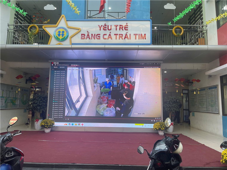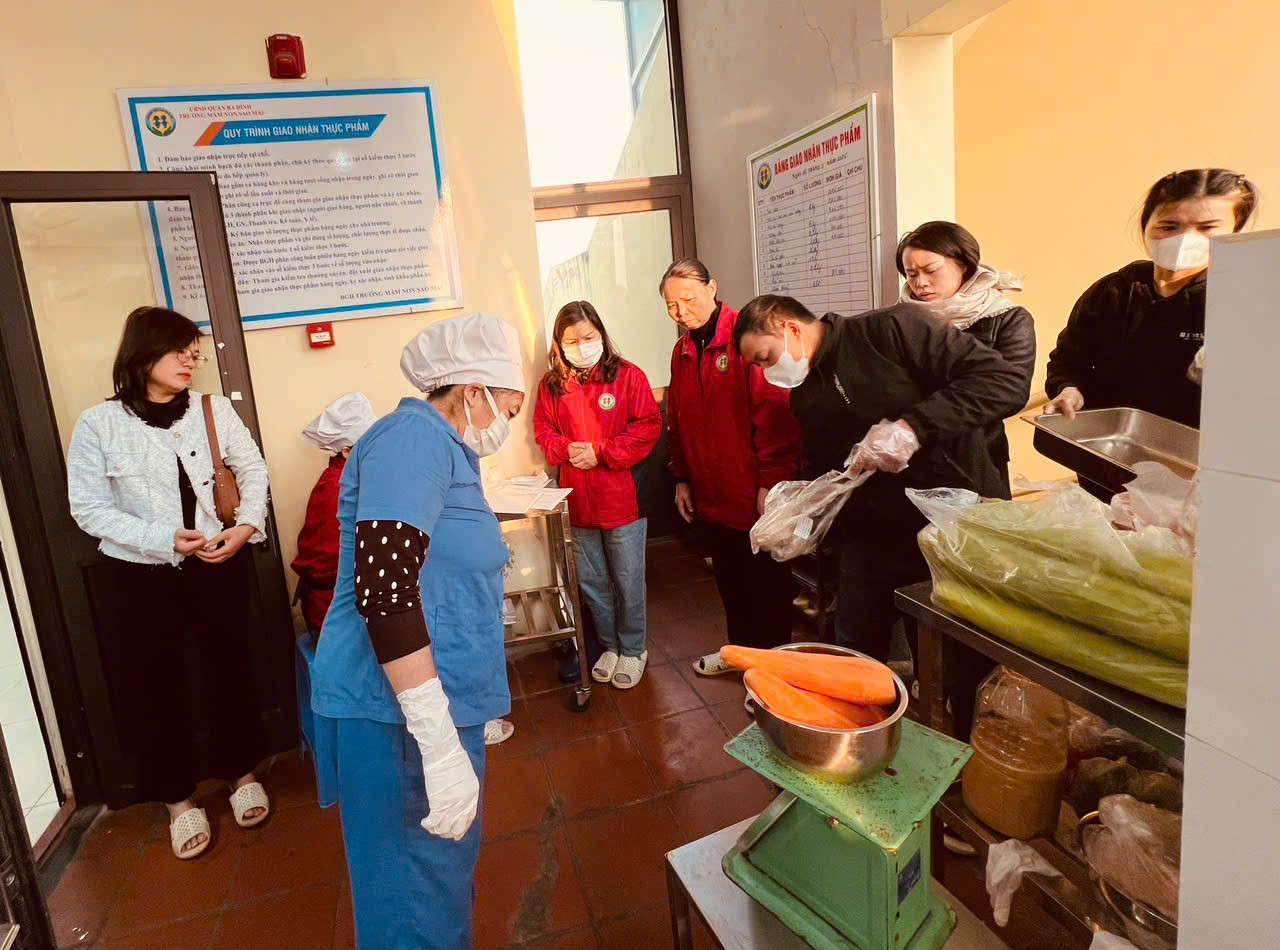 Để bảo đảm nguồn thực phẩm an toàn, nhà trường chỉ ký kết hợp đồng với các cơ sở cung cấp có uy tín, thực phẩm có nguồn gốc, xuất xứ rõ ràng. Quá trình chế biến, yêu cầu các nhân viên cấp dưỡng thực hiện nghiêm ngặt ngay từ quy trình giao nhận thực phẩm hàng ngày. Quy trình gaio nhận thực phẩm đều được giám sát chặt chẽ đầy đủ các thành phần và được phát trực tiếp trên màn hình Led mỗi sáng thứ 5 hàng tuần cho 100% PHHS theo dõi. Quy trình vệ sinh sạch sẽ từ dụng cụ chế biến, đến sơ chế, nấu ăn, chia ăn cho trẻ...