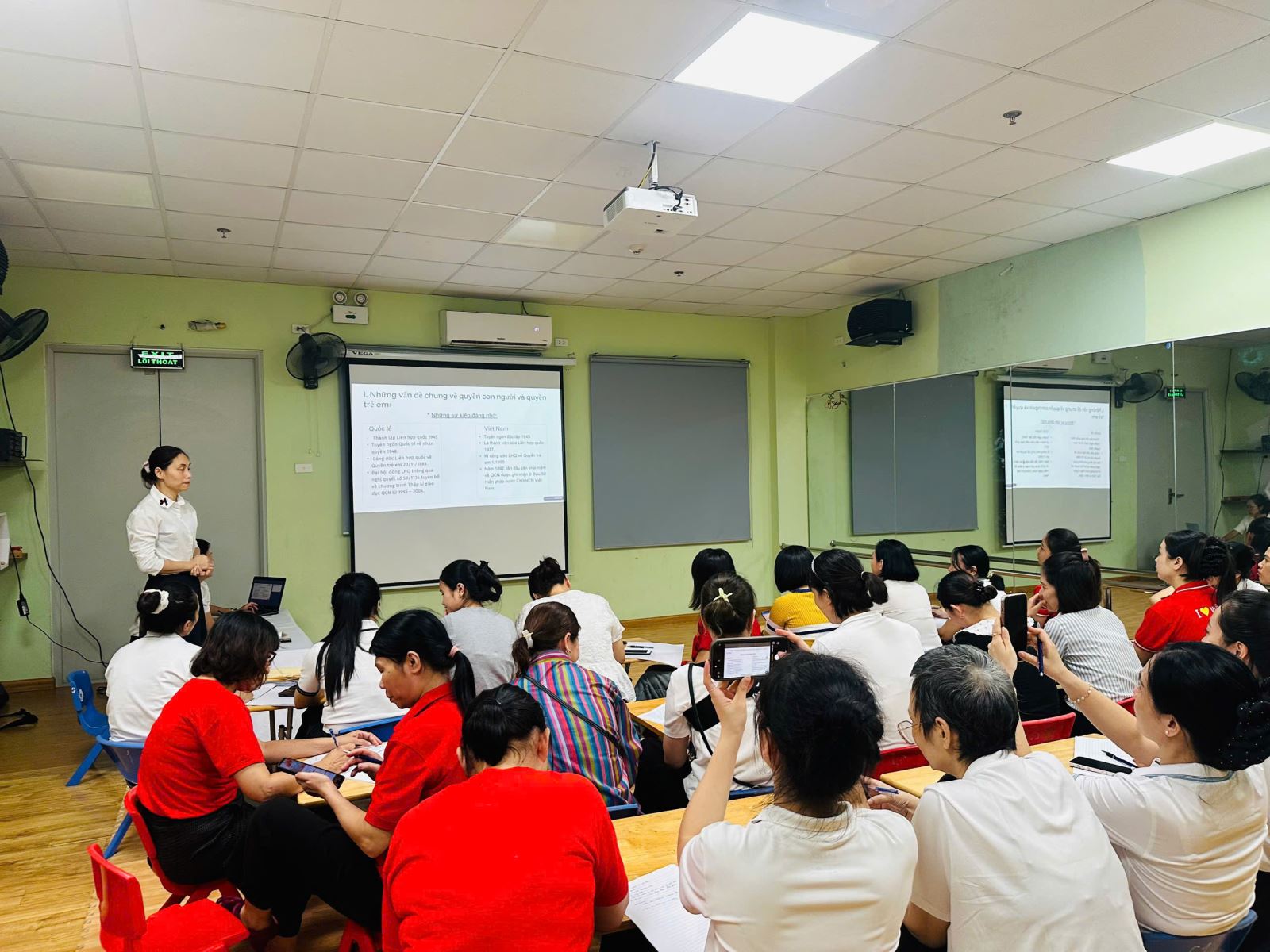 Trong tuần lễ ý nghĩa này, các cô giáo nhà trường đã tích cực tham gia lớp bồi dưỡng chuyên môn về Quyền con người, nhằm hiểu rõ hơn về giá trị của tự do, bình đẳng, tôn trọng và trách nhiệm công dân trong môi trường giáo dục mầm non. Thông qua đó, mỗi giáo viên có thêm kiến thức để lồng ghép, giáo dục trẻ những bài học đầu đời về yêu thương, sẻ chia và tôn trọng lẫn nhau.