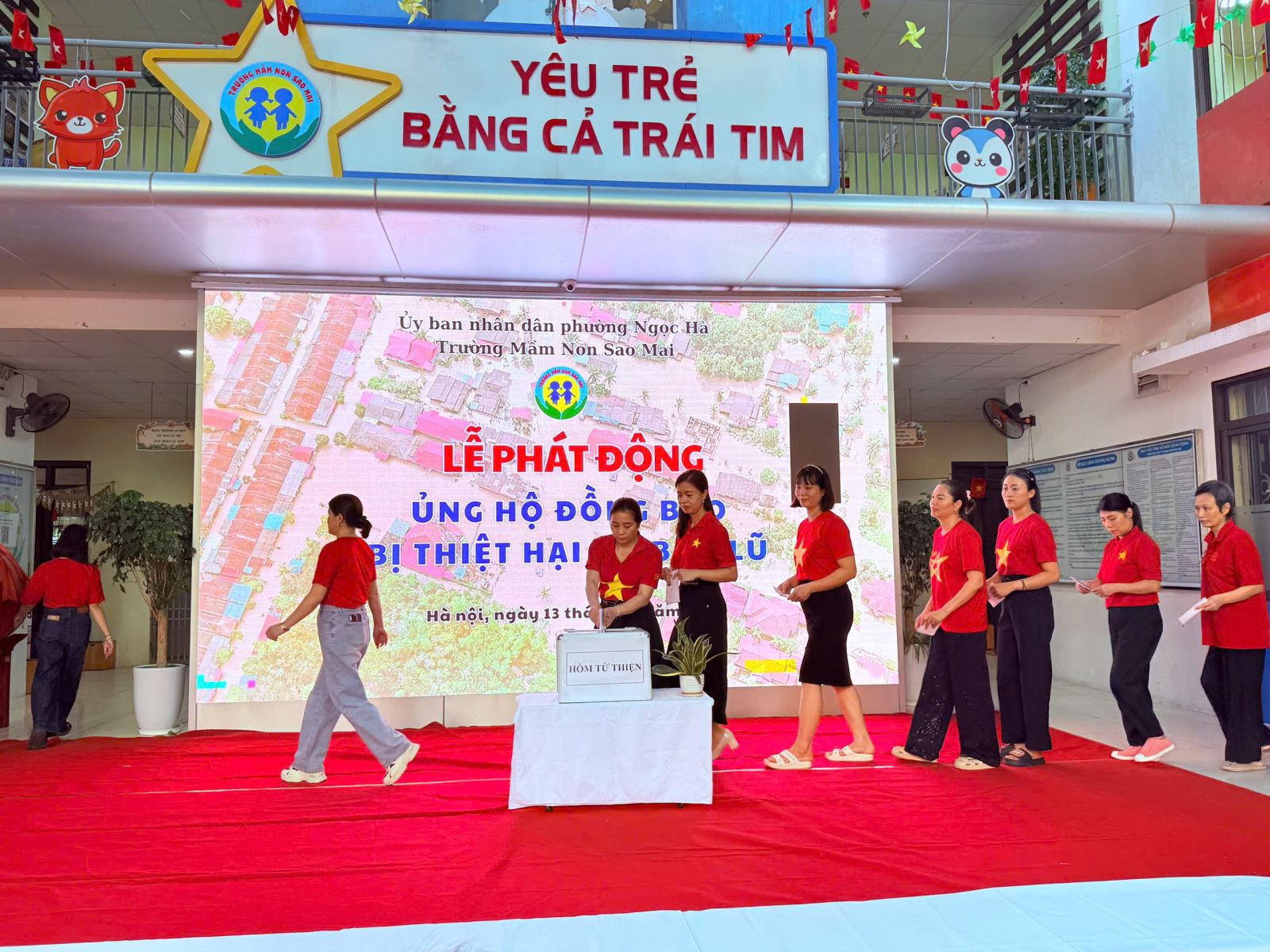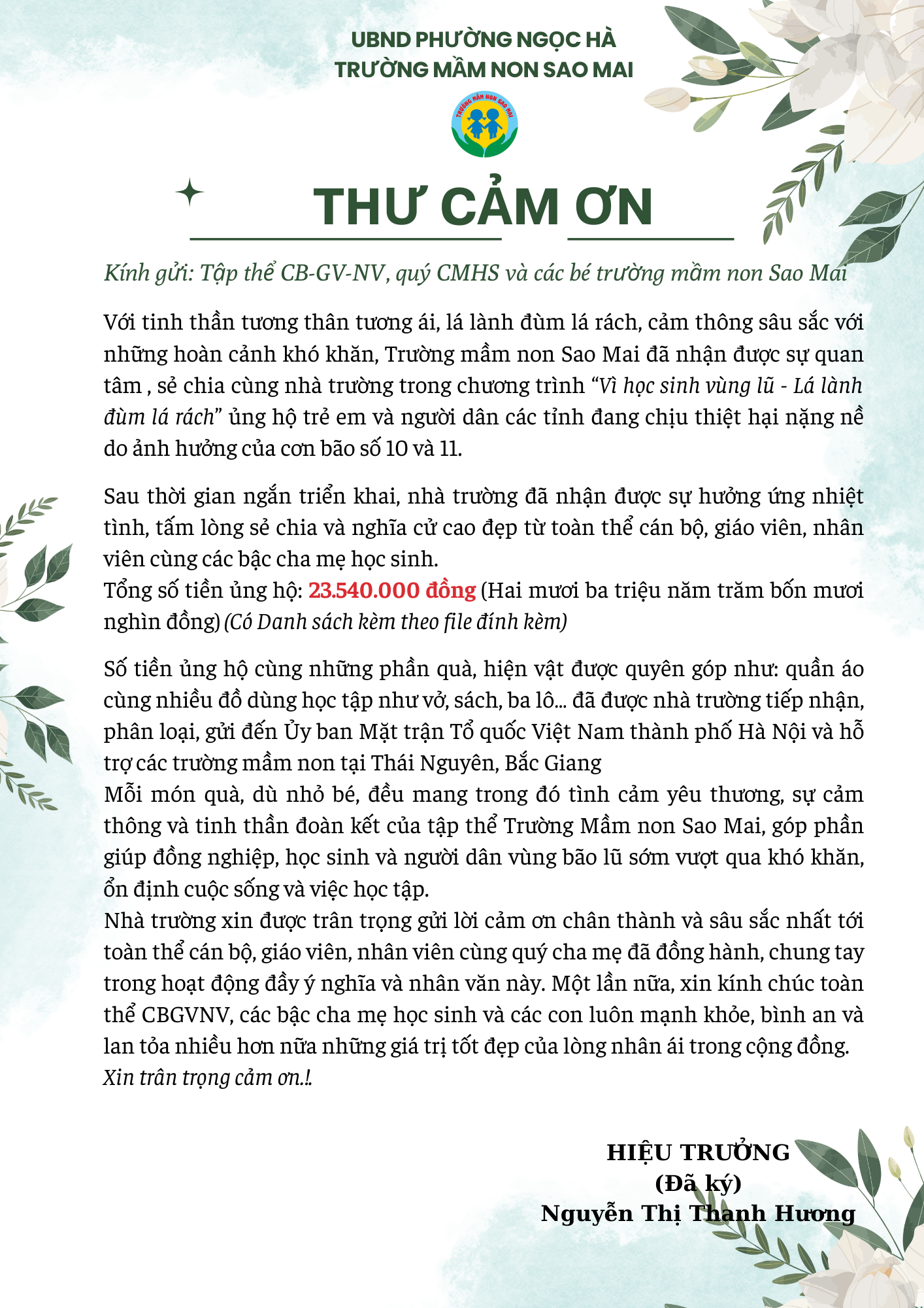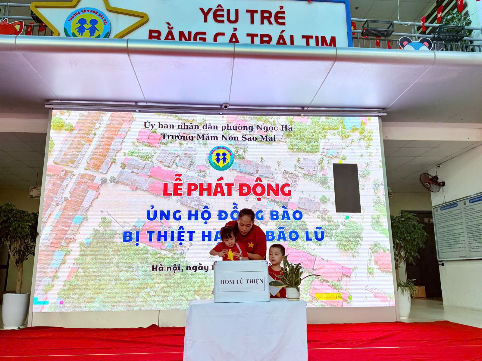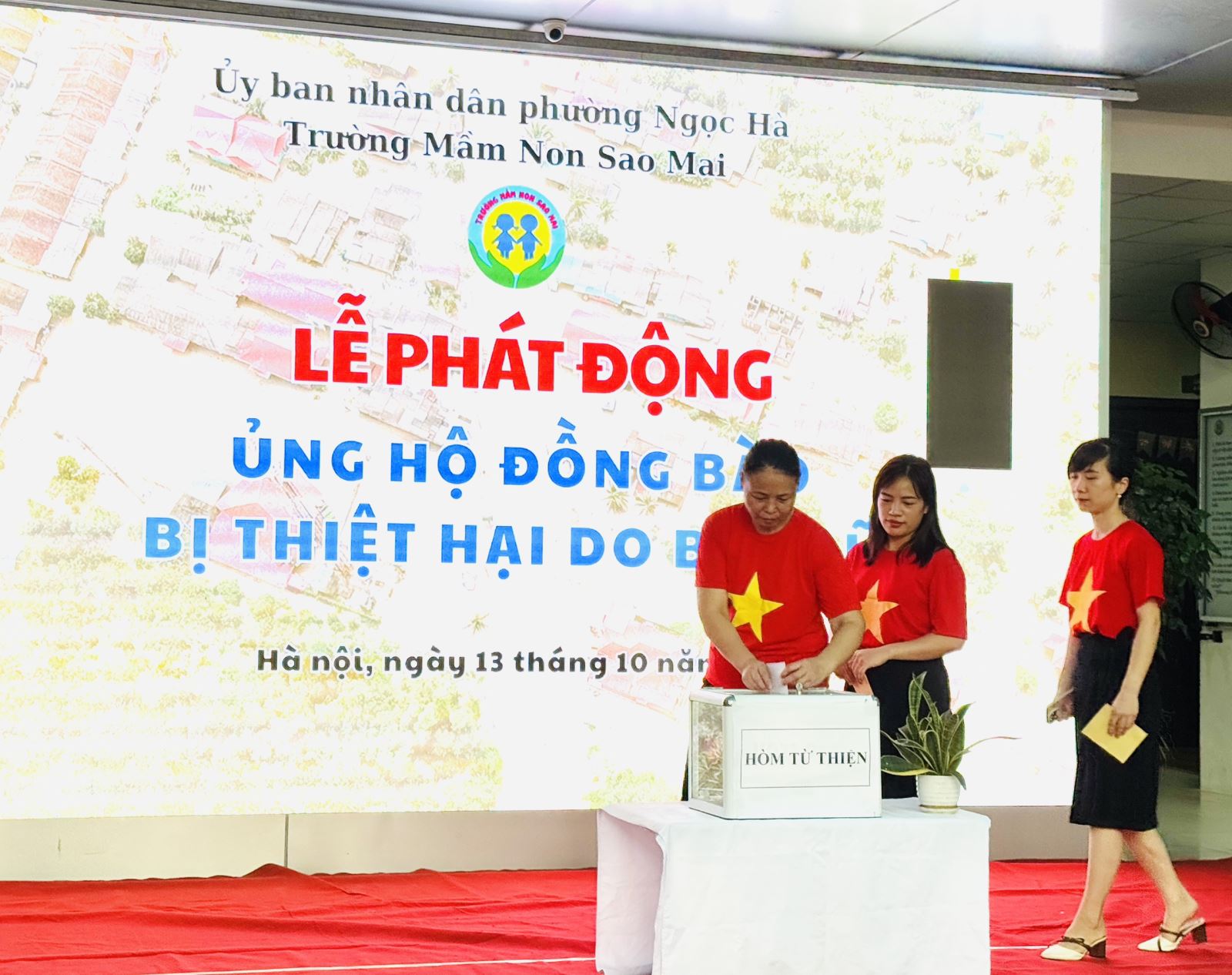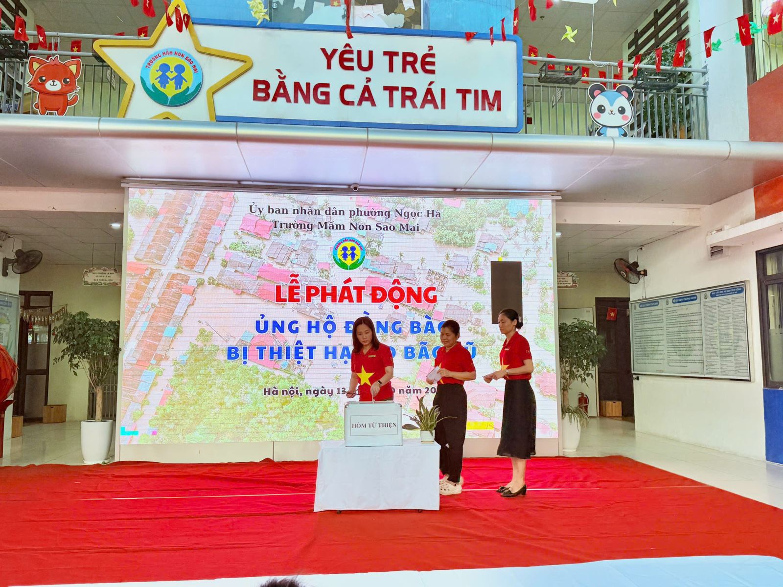 Trường Mầm non Sao Mai trân trọng cảm ơn tập thể CB-GV-NV, quý cha mẹ học sinh và các bé đã tích cực tham gia ủng hộ đồng bào bị thiệt hại bởi bão lũ