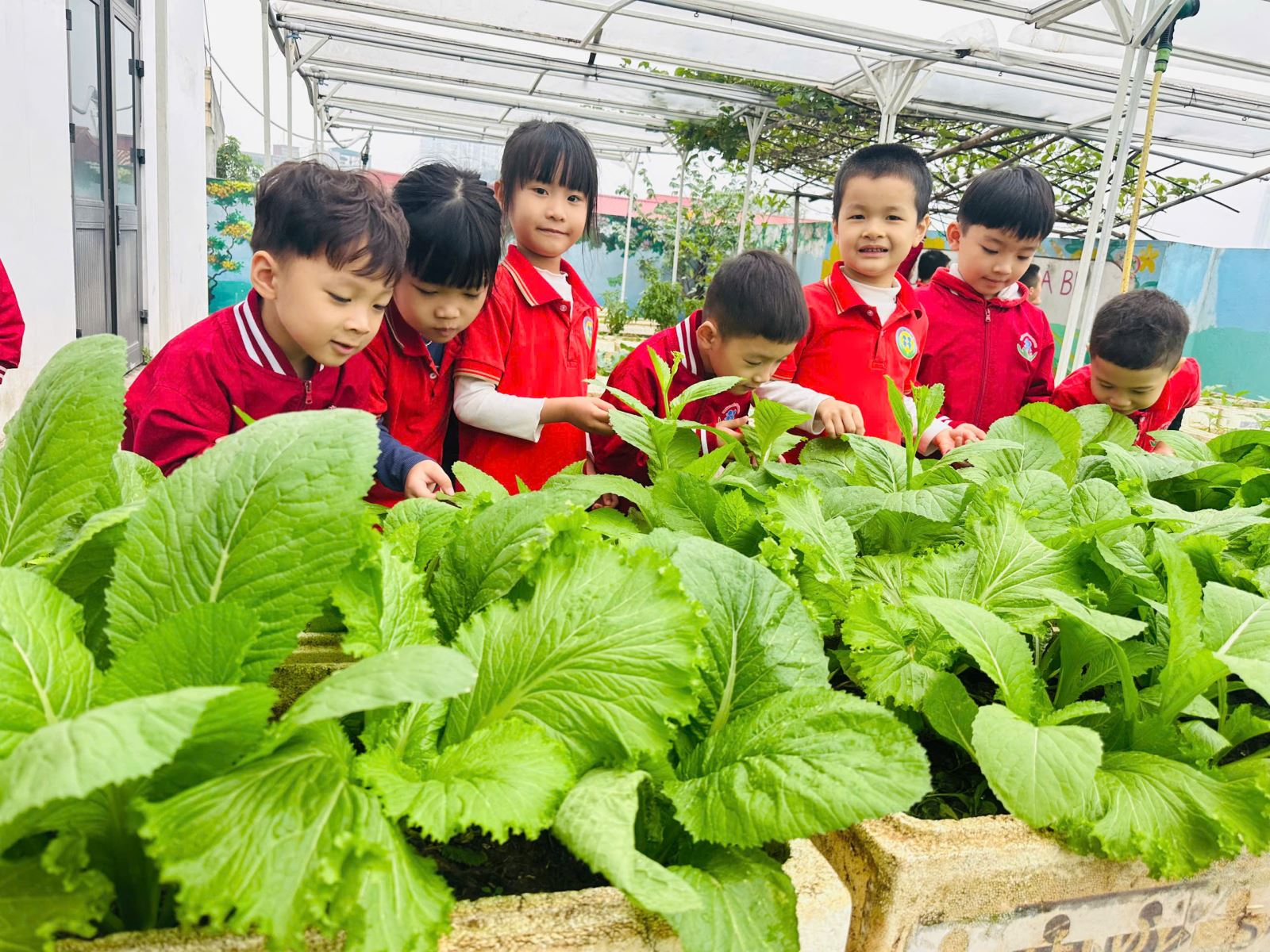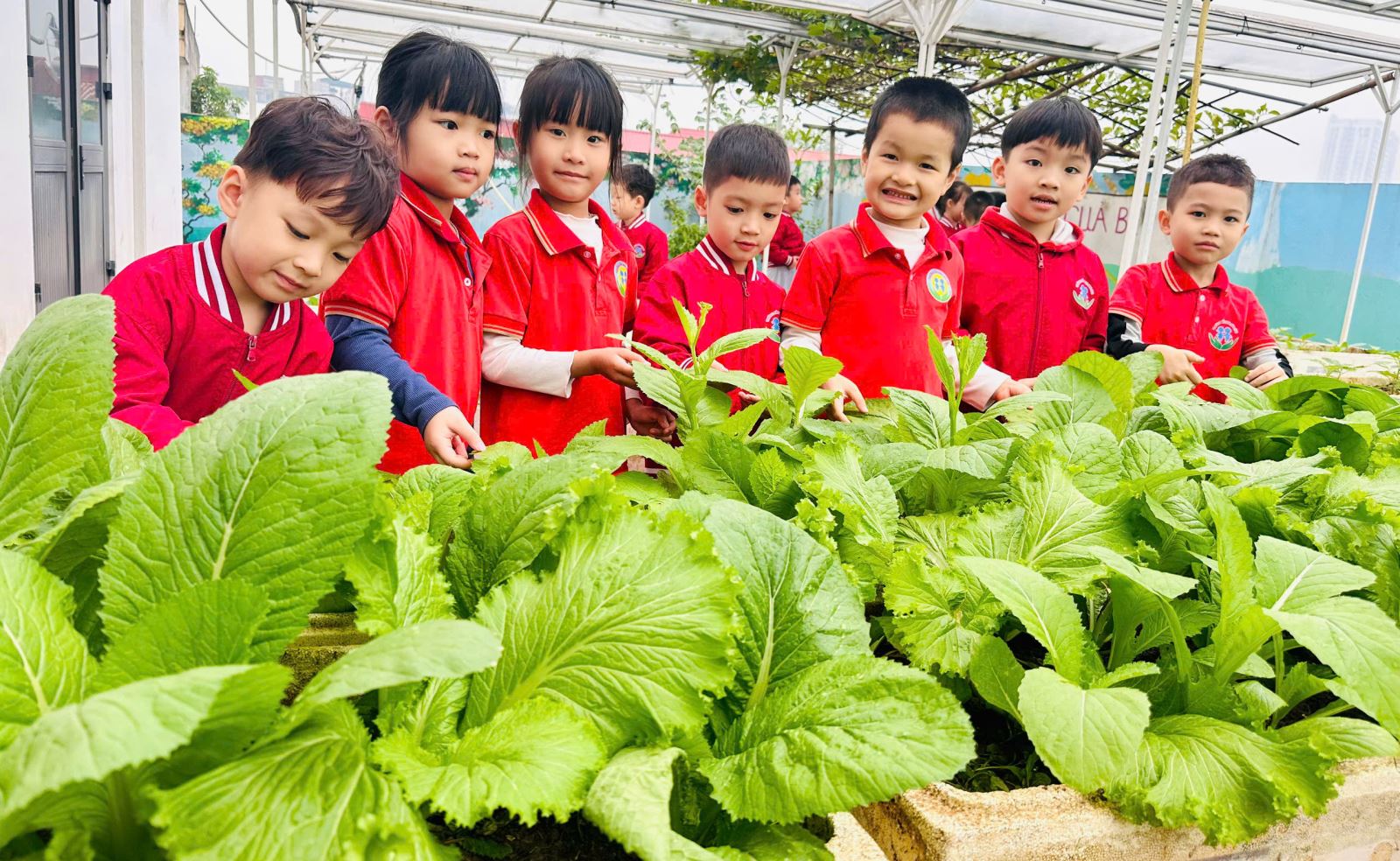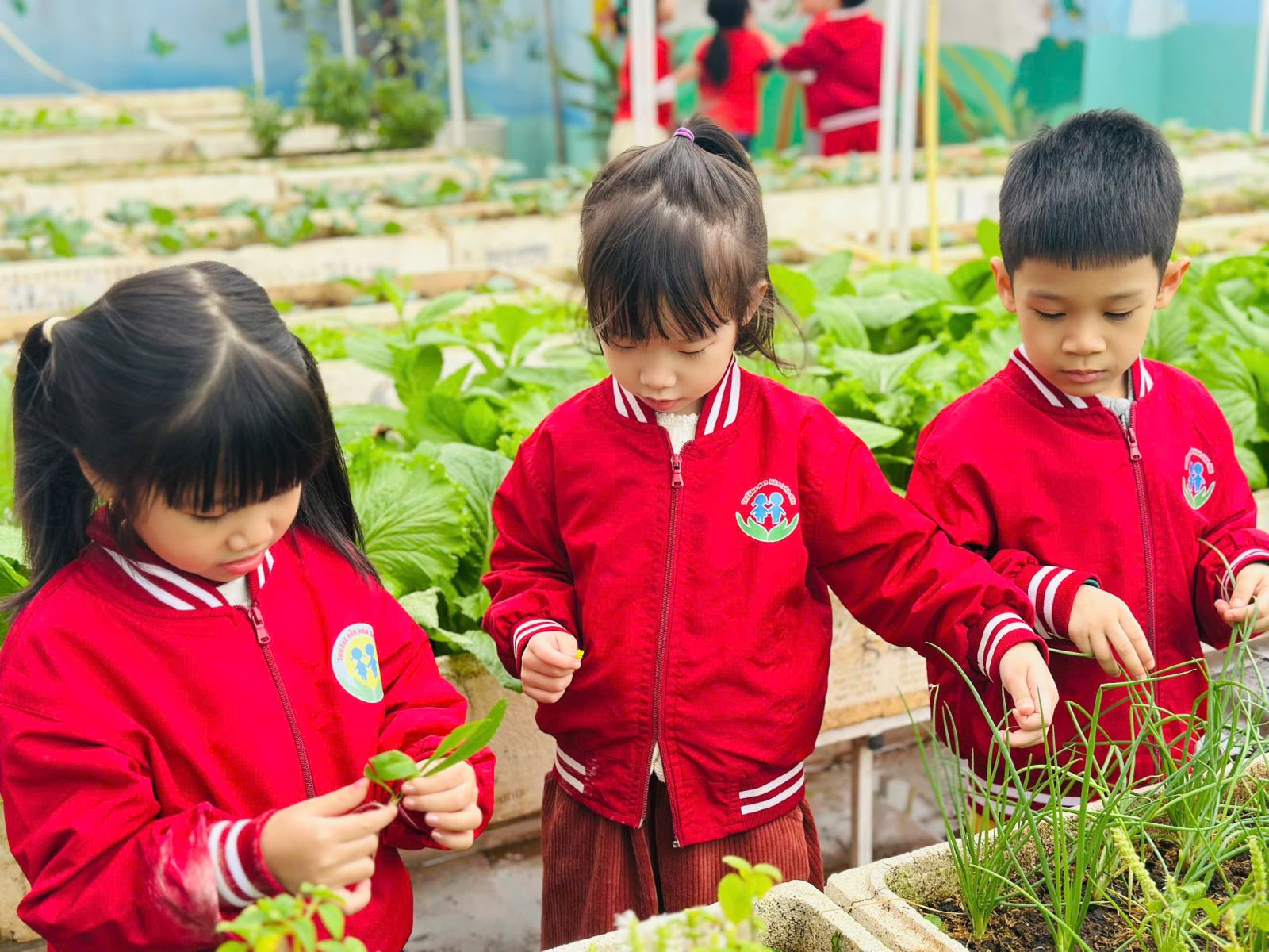 Bé lớn A2 tham quan và chăm sóc vườn rau tại Trường mầm non Sao Mai