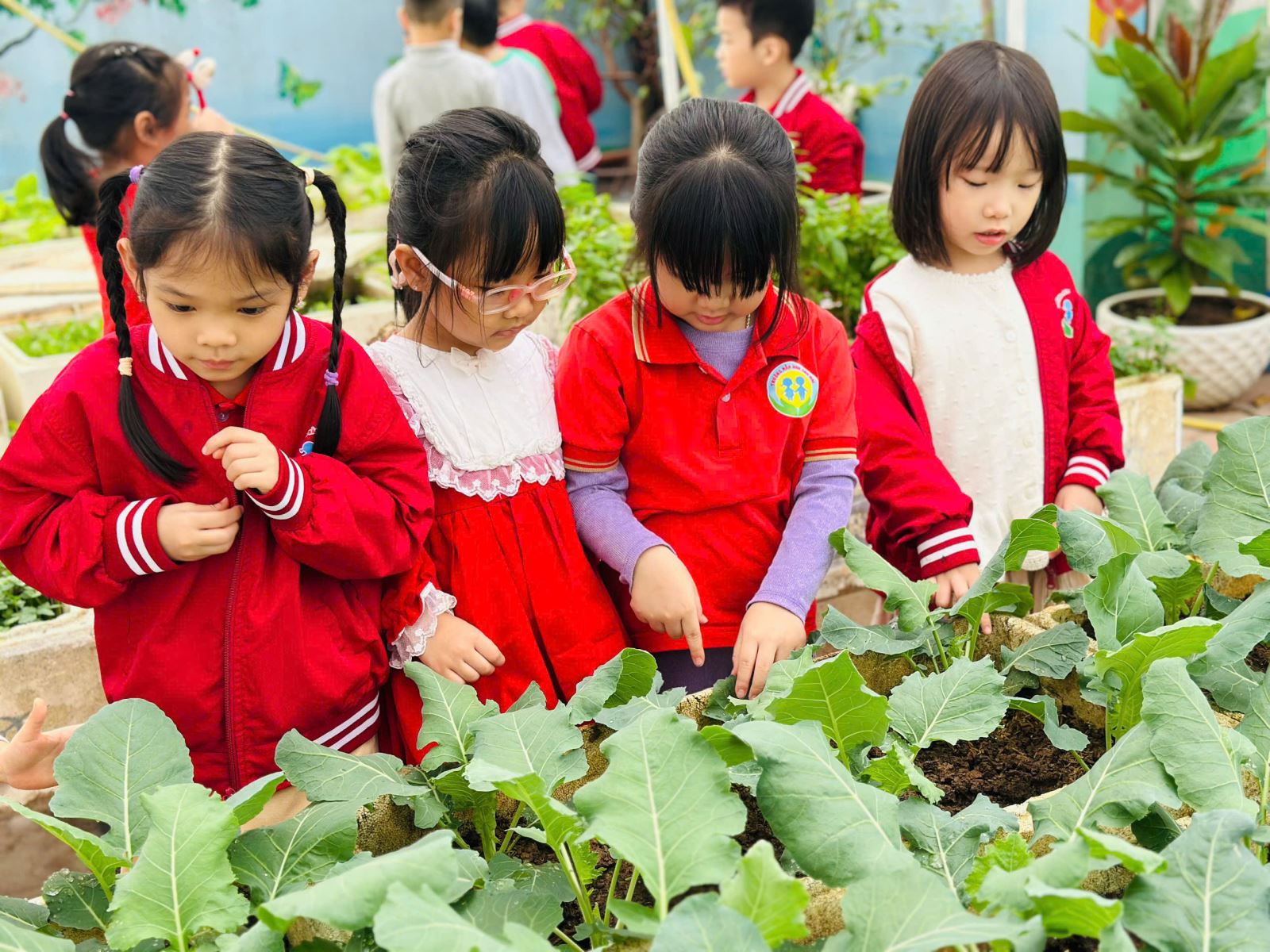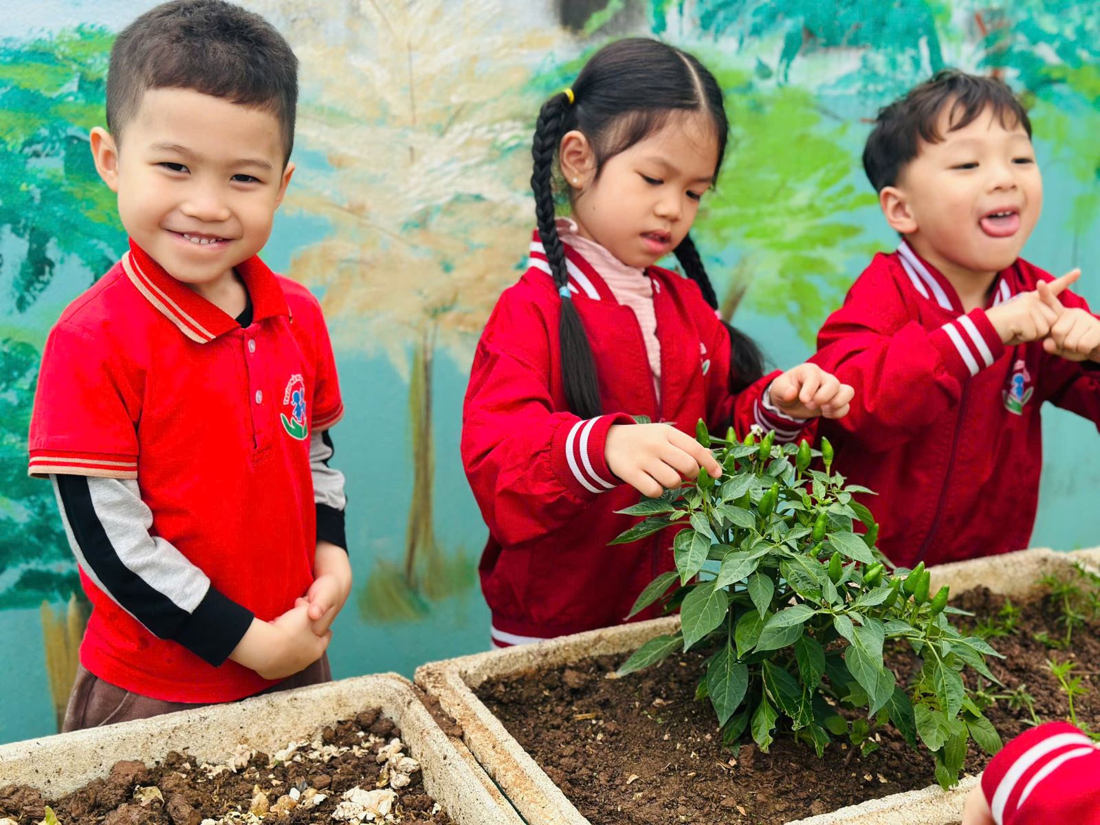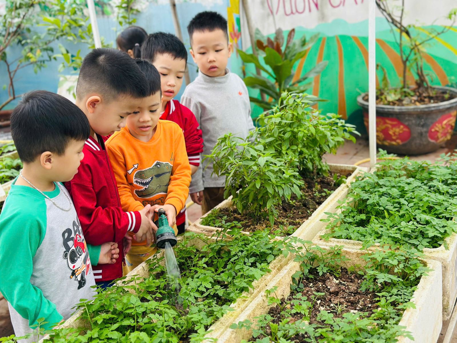 Những khoảnh khắc giản dị bên vườn rau nhỏ đã trở thành một phần quen thuộc trong sinh hoạt hằng ngày của lớp, giúp mỗi ngày đến trường của các bé thực sự là một ngày vui 🌿