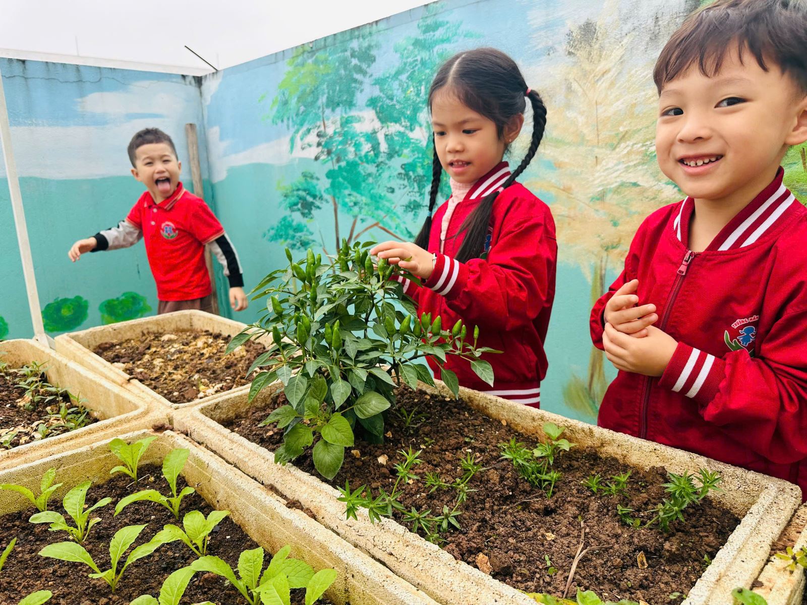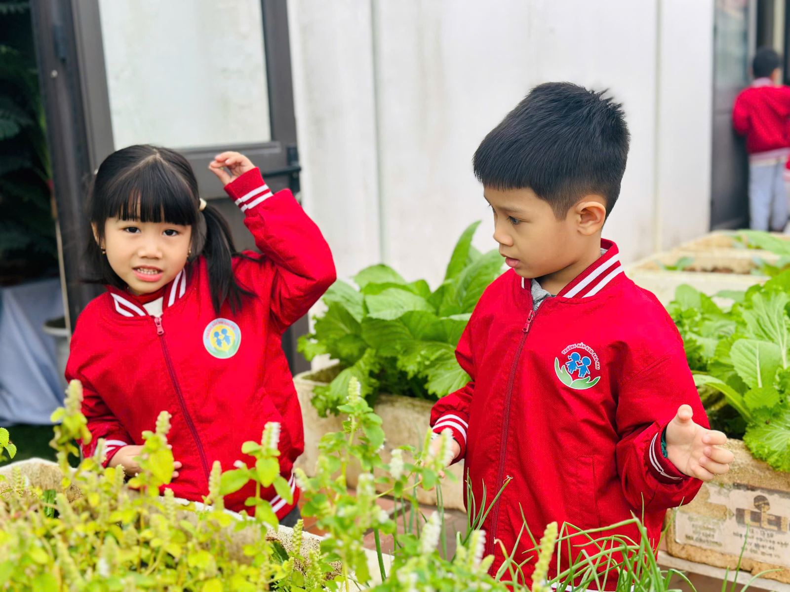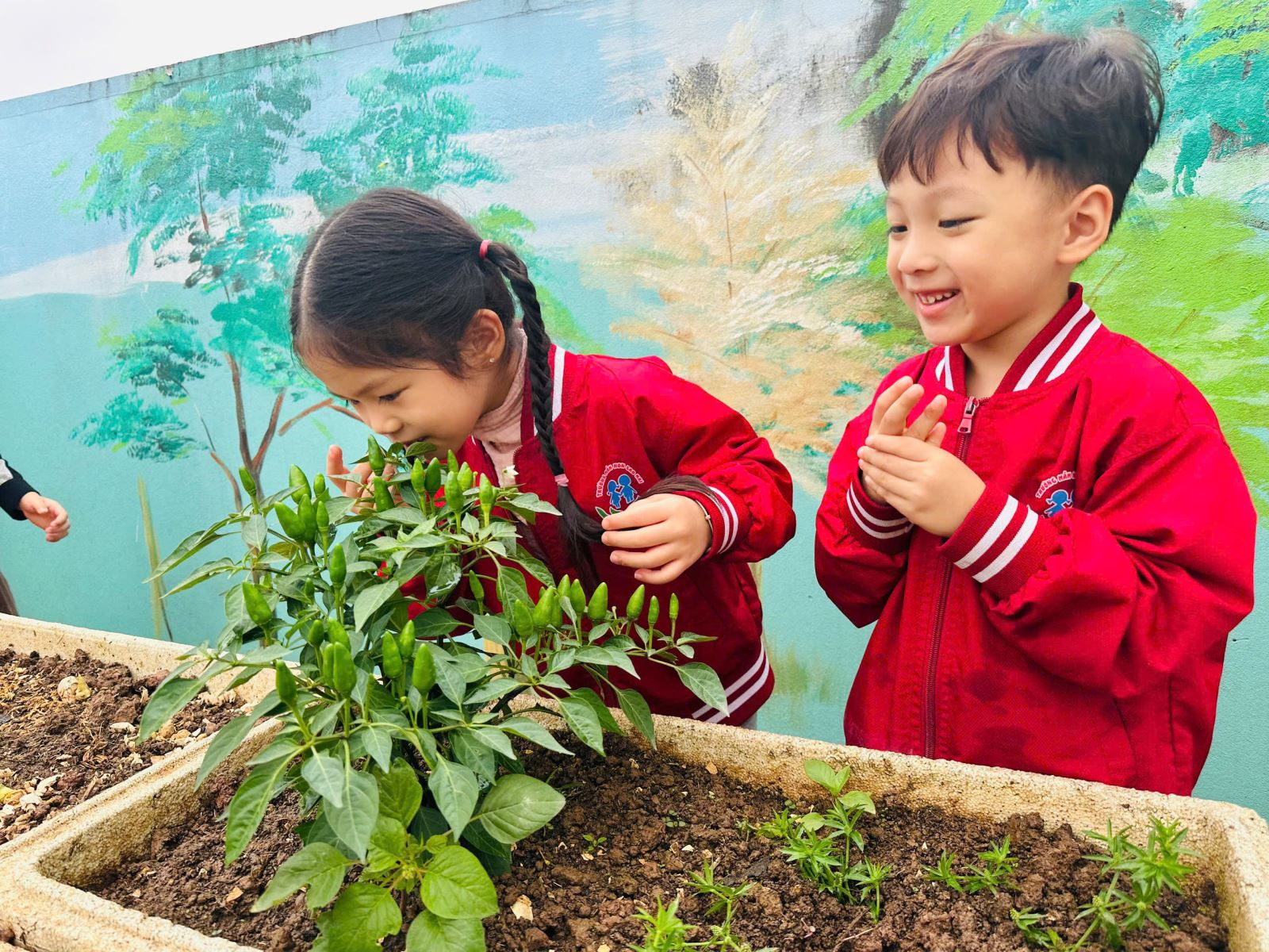 Những khoảnh khắc giản dị bên vườn rau nhỏ đã trở thành một phần quen thuộc trong sinh hoạt hằng ngày của lớp, giúp mỗi ngày đến trường của các bé thực sự là một ngày vui 🌿