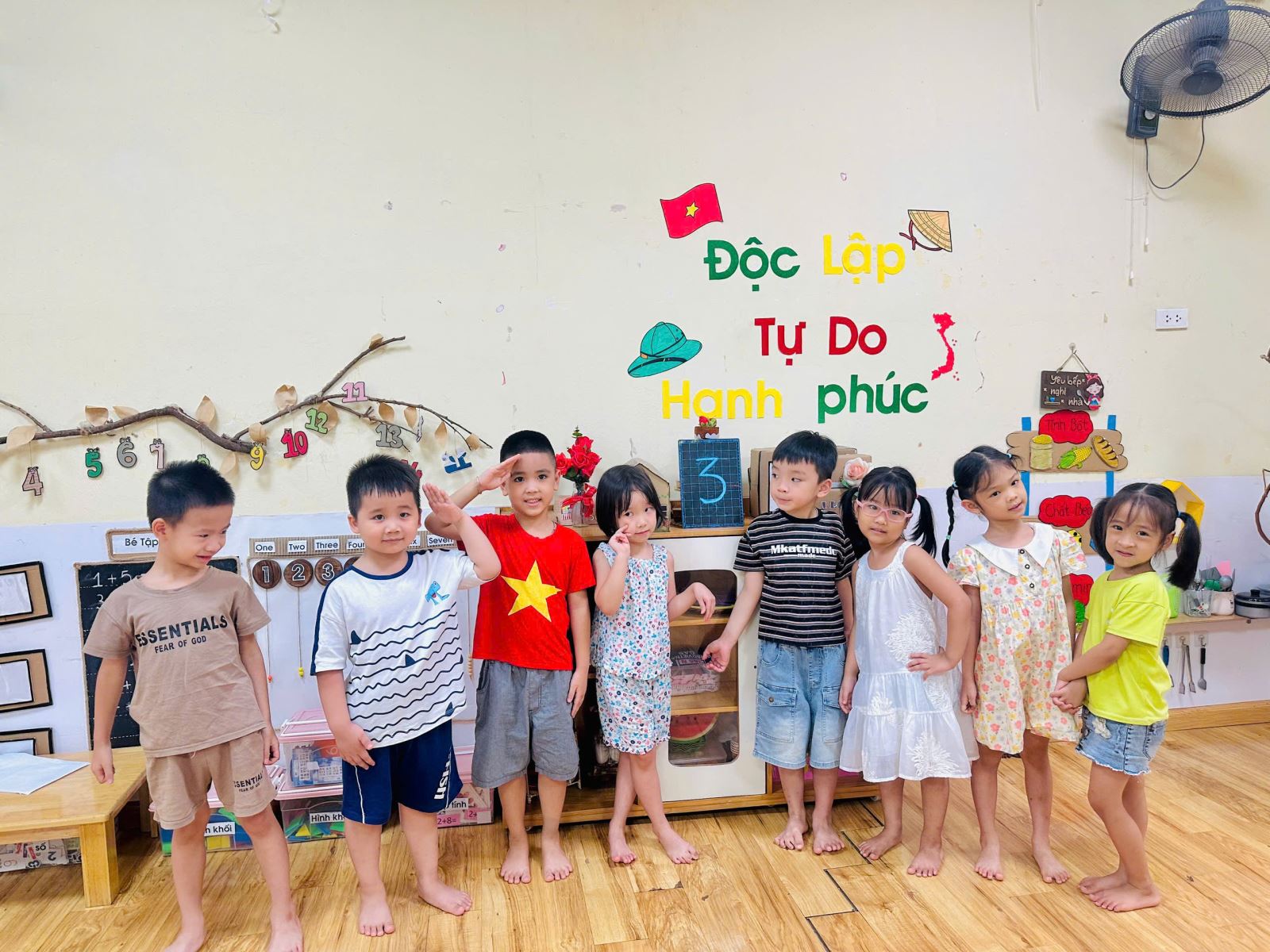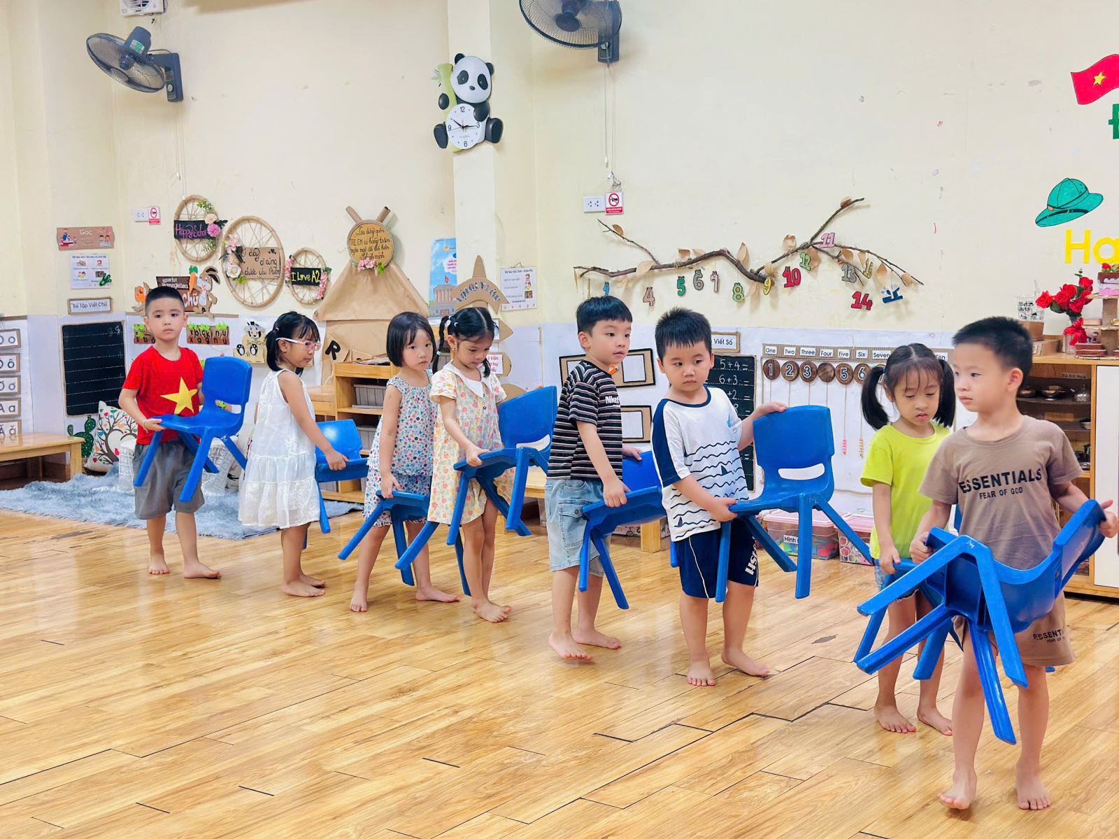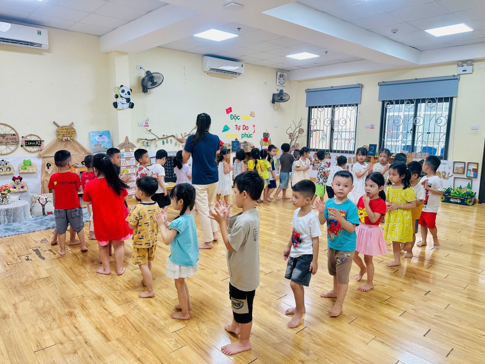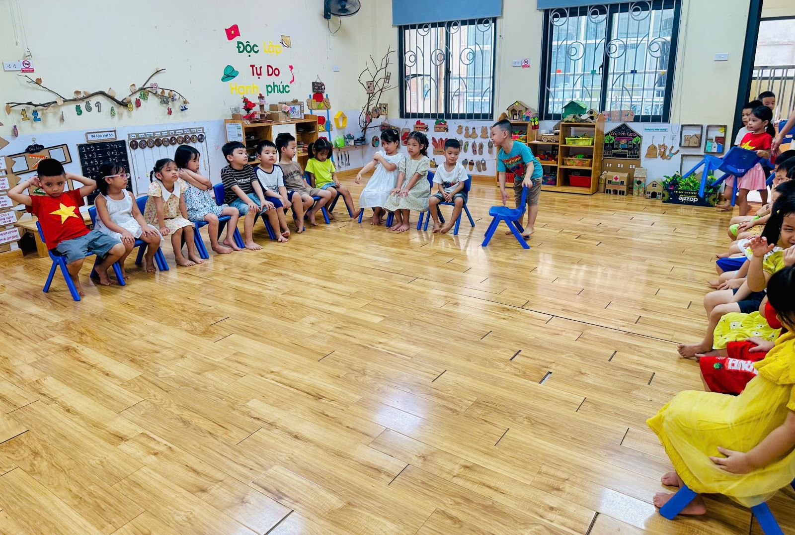 Để không khí trở nên sôi nổi hơn với các trò chơi giúp các con nhớ tổ của mình hơn. Bạn nào cũng rất hào hứng giơ tay và nhanh chân di chuyển về đúng tổ đã được phân công. Tiếng bước chân rộn ràng, tiếng cười giòn tan hòa cùng ánh mắt háo hức của các bé khiến lớp học trở nên thật vui nhộn và đầy năng lượng.