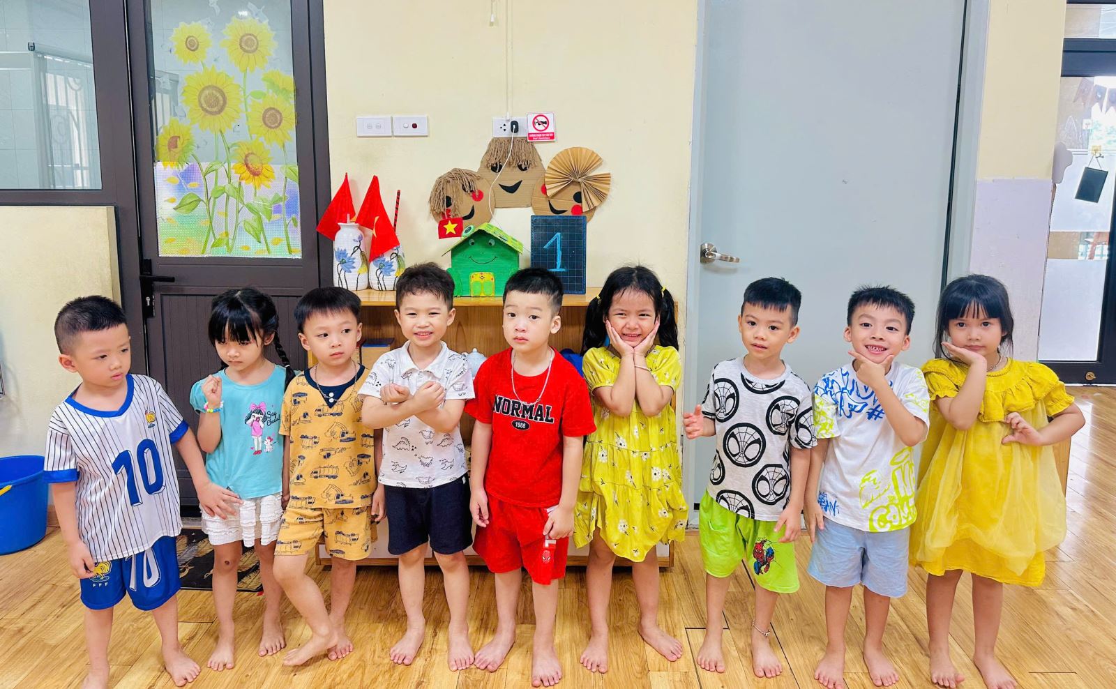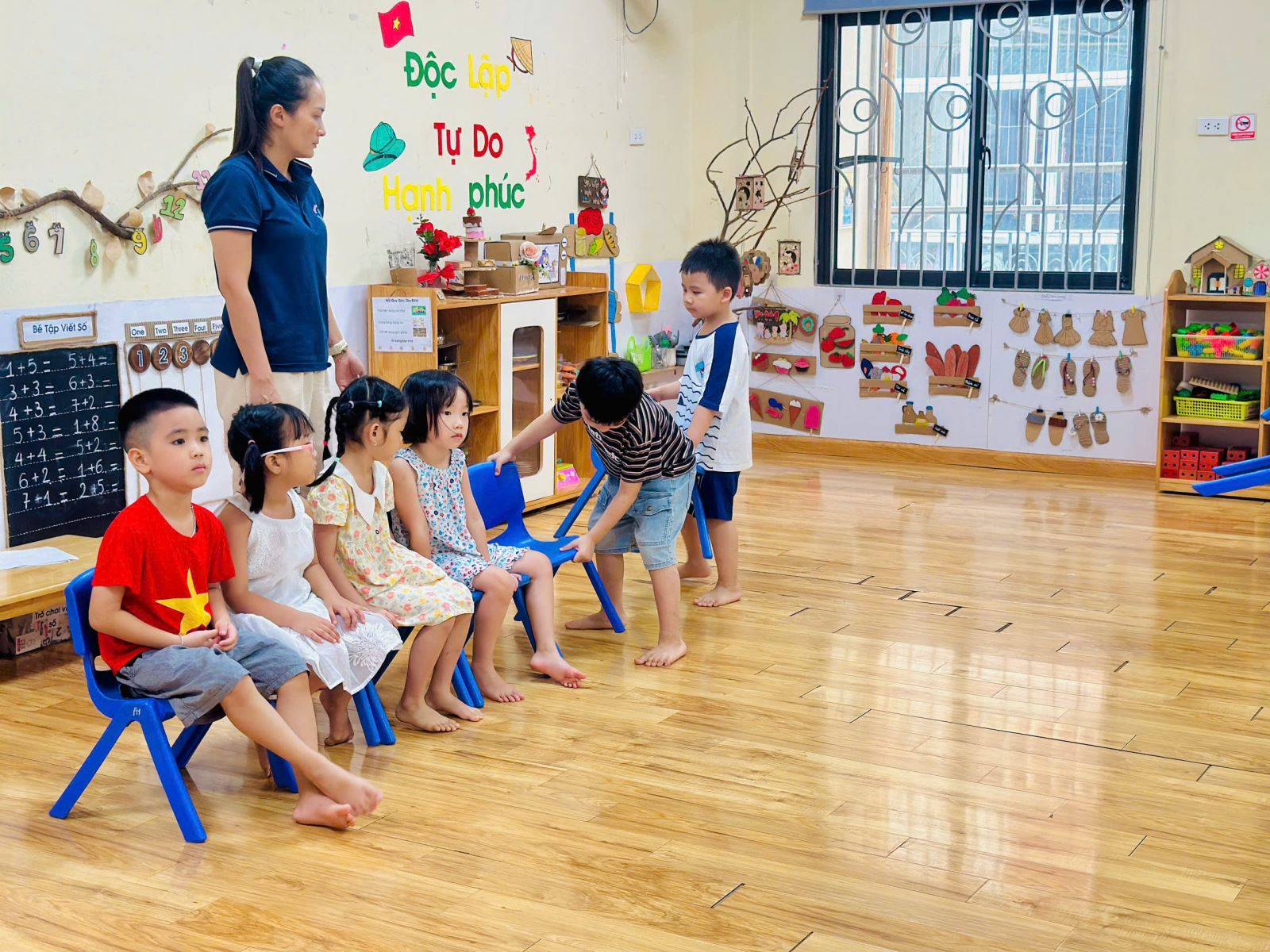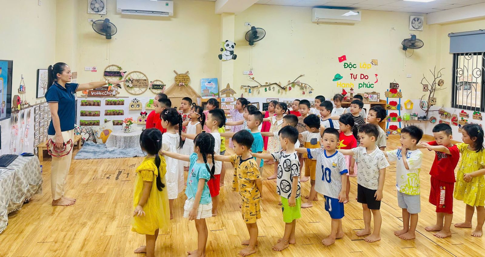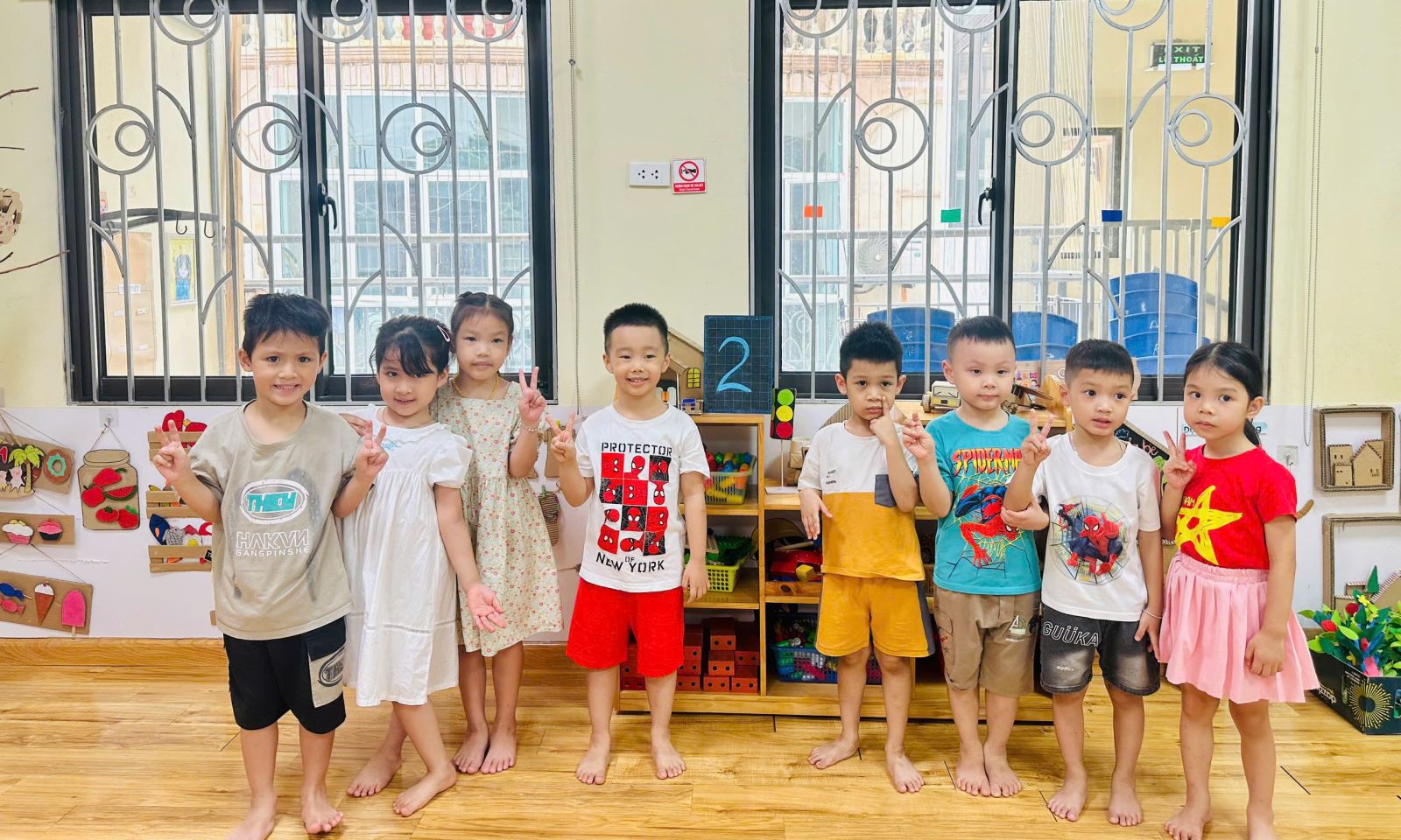 Để không khí trở nên sôi nổi hơn với các trò chơi giúp các con nhớ tổ của mình hơn. Bạn nào cũng rất hào hứng giơ tay và nhanh chân di chuyển về đúng tổ đã được phân công. Tiếng bước chân rộn ràng, tiếng cười giòn tan hòa cùng ánh mắt háo hức của các bé khiến lớp học trở nên thật vui nhộn và đầy năng lượng.