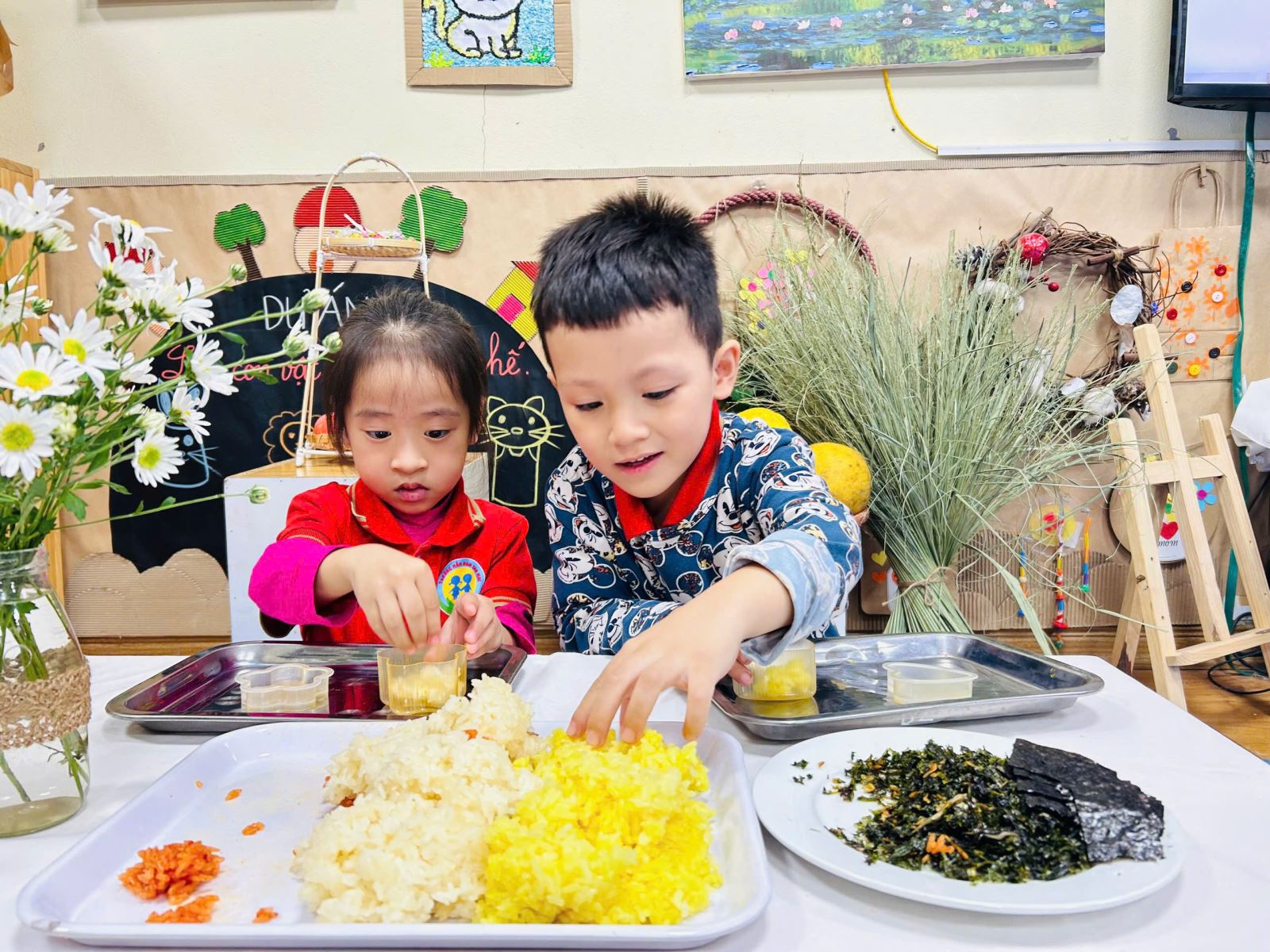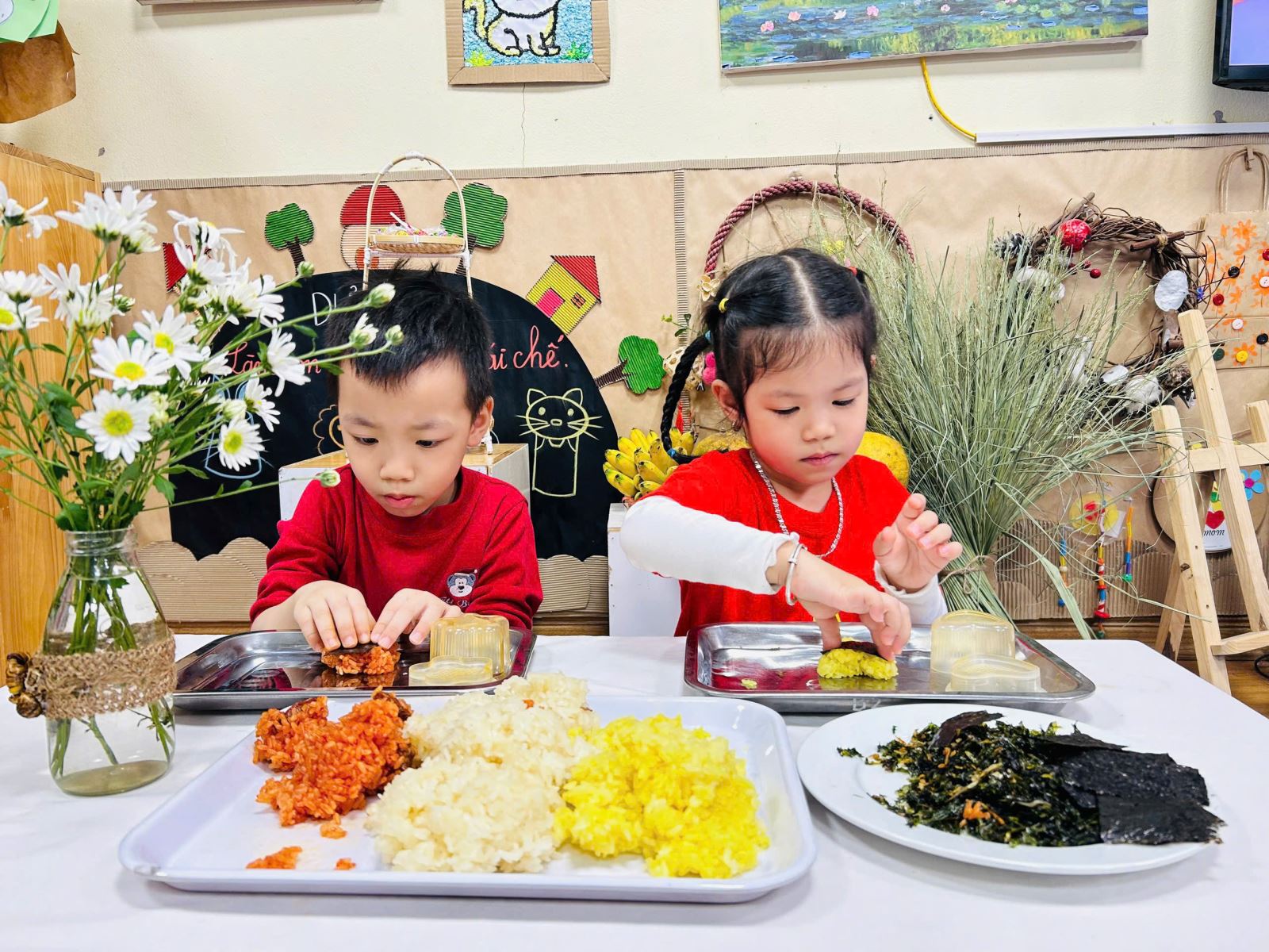 Hấp dẫn vị giác với hoạt động trải nghiệm "Bé làm cơm Bento" cùng các bạn lớp mẫu giáo nhỡ B1 và B2