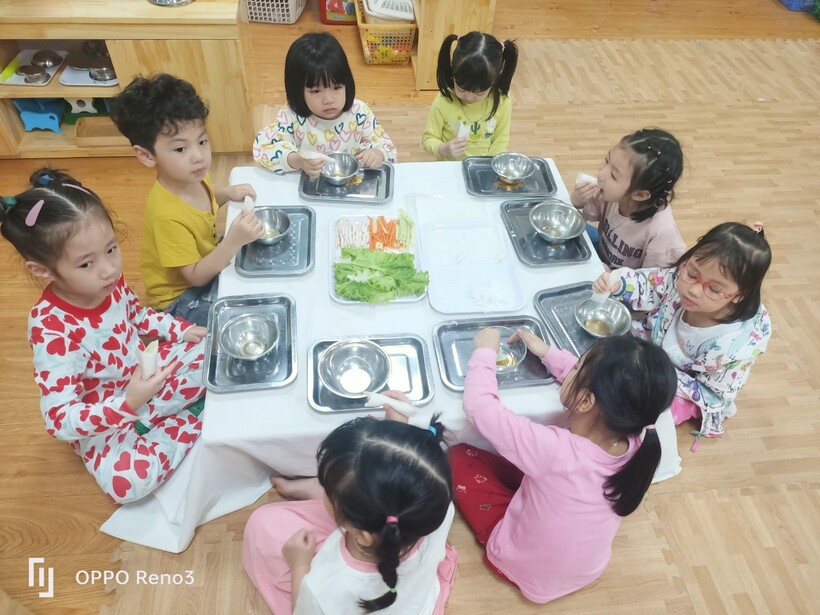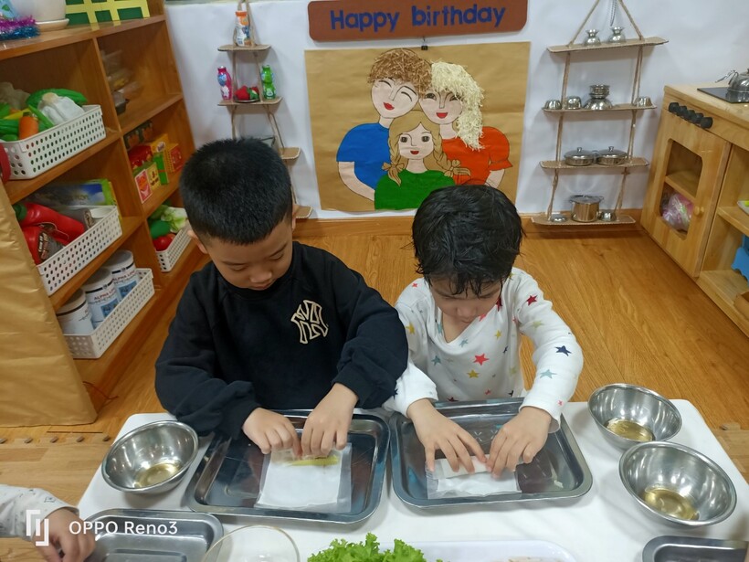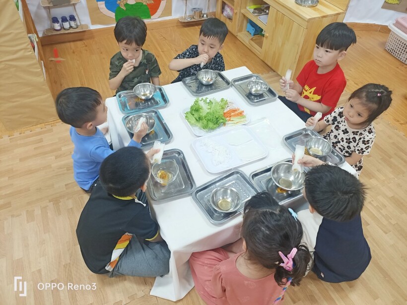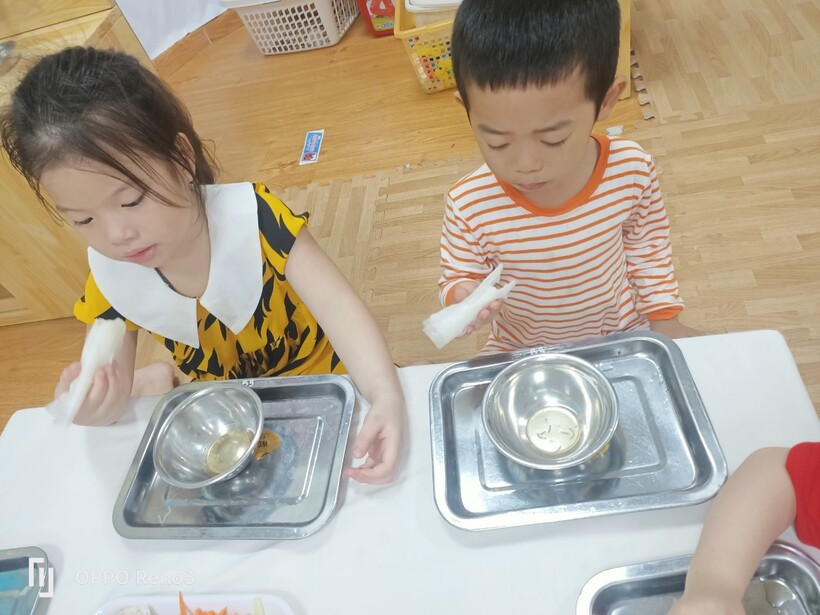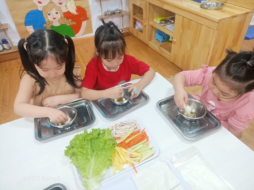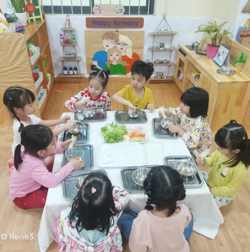 Hoạt động “Bé tập làm nội trợ - Làm phở cuốn” của cô và trò lớp Mẫu giáo nhỡ B3 trường Mầm non Sao Mai