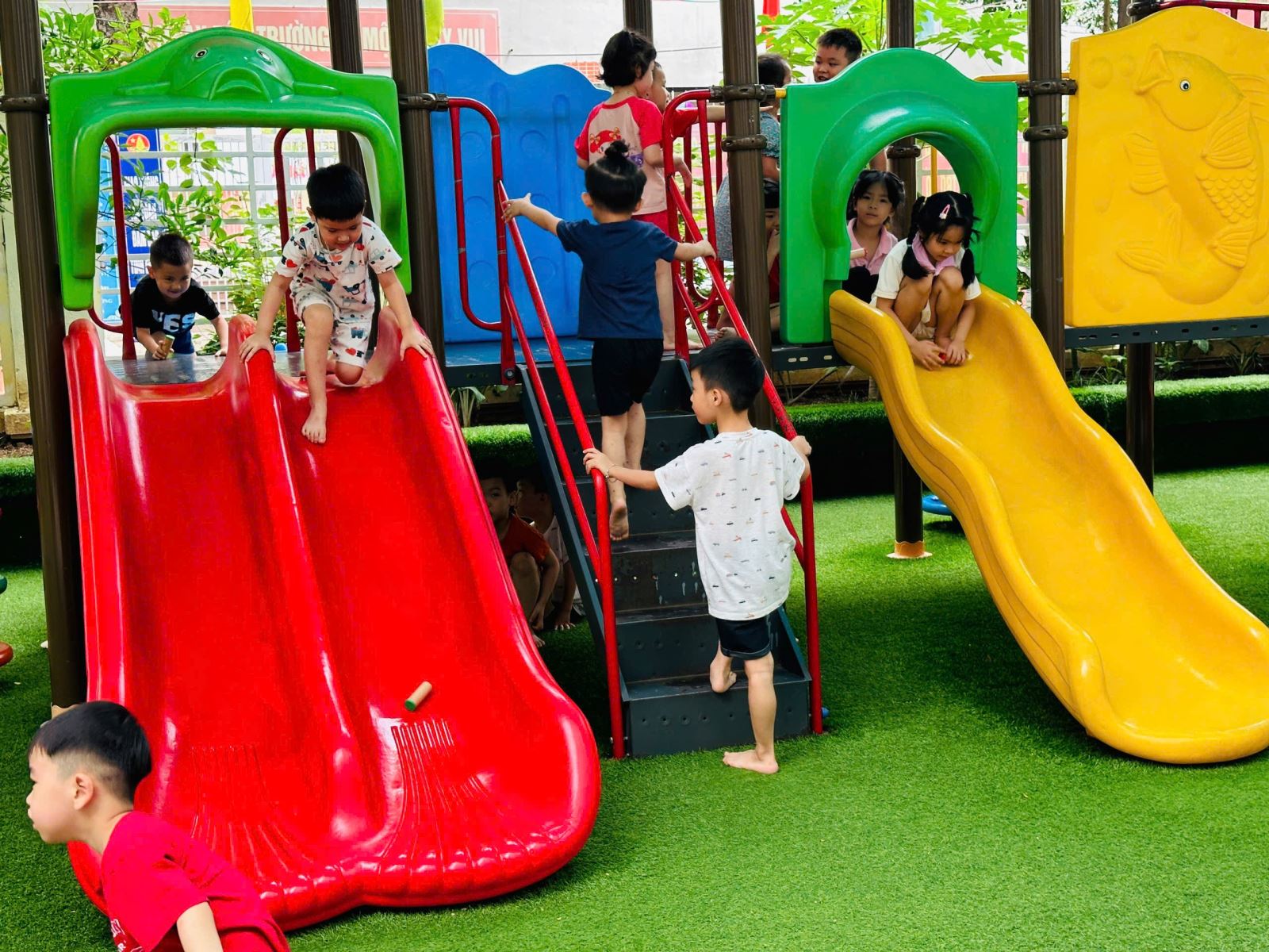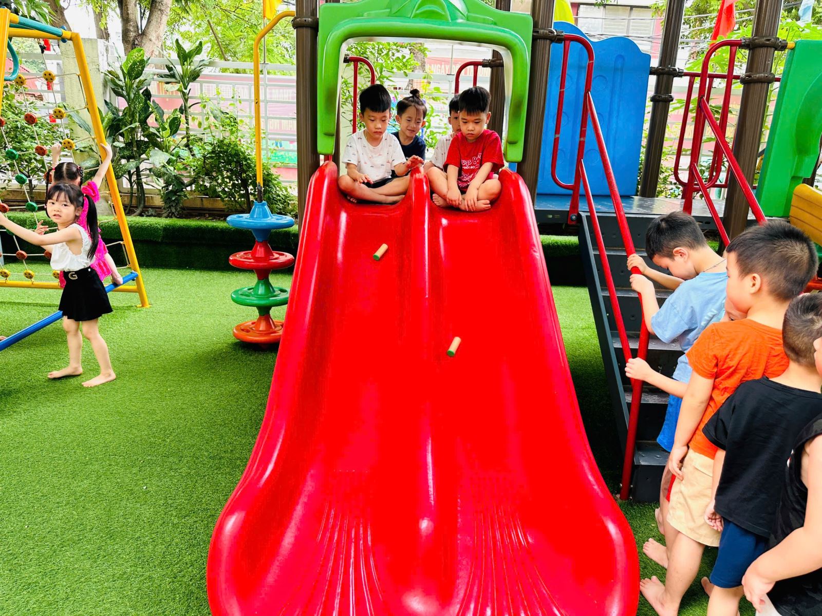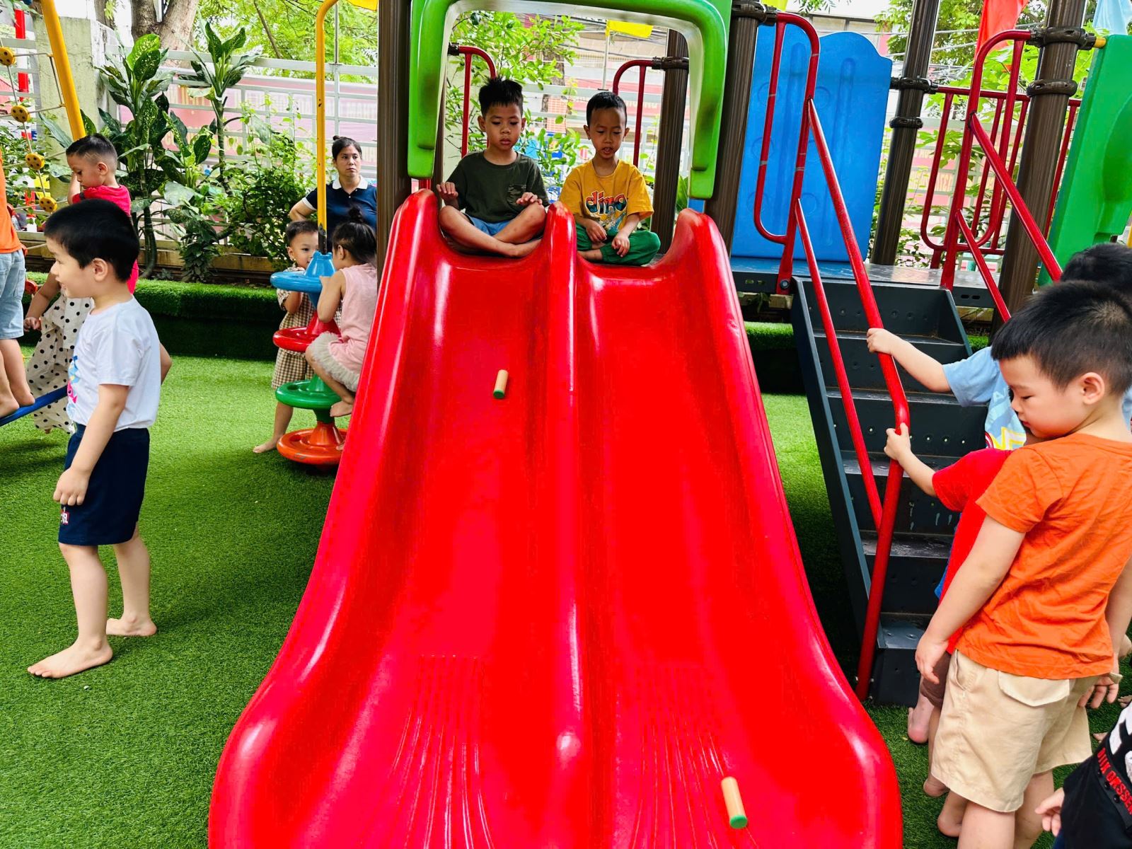 Hoạt động ngoài trời hôm nay của các bạn nhỏ lớp mẫu giáo nhỡ B4 thật đặc biệt! Với khối trụ và chiếc cầu trượt quen thuộc, cô giáo đã sáng tạo ra một trò chơi mang tên “Con lăn vui nhộn” vô cùng thú vị