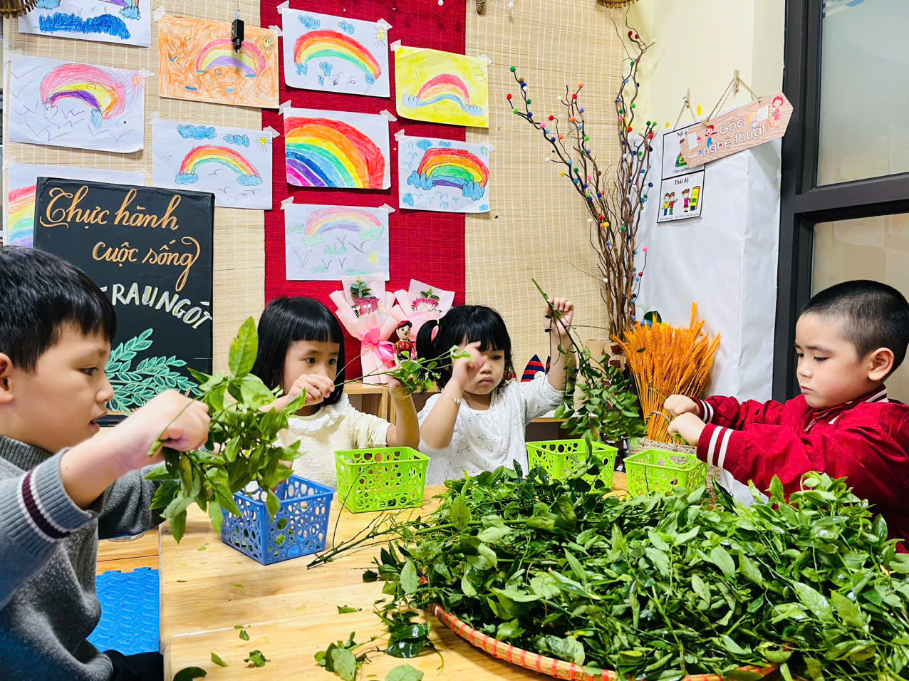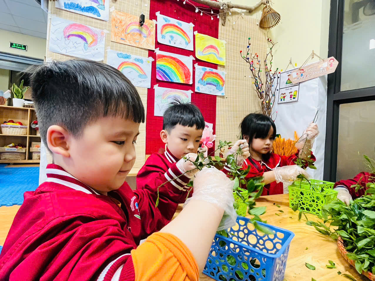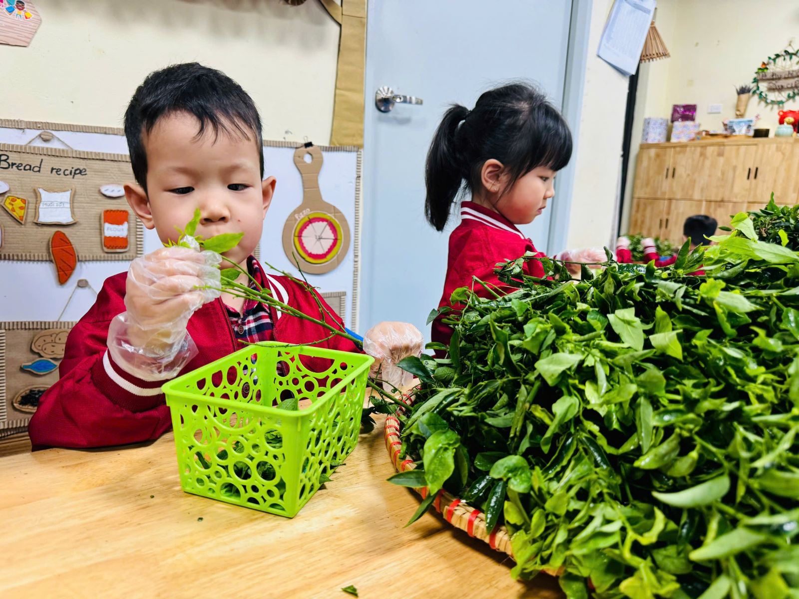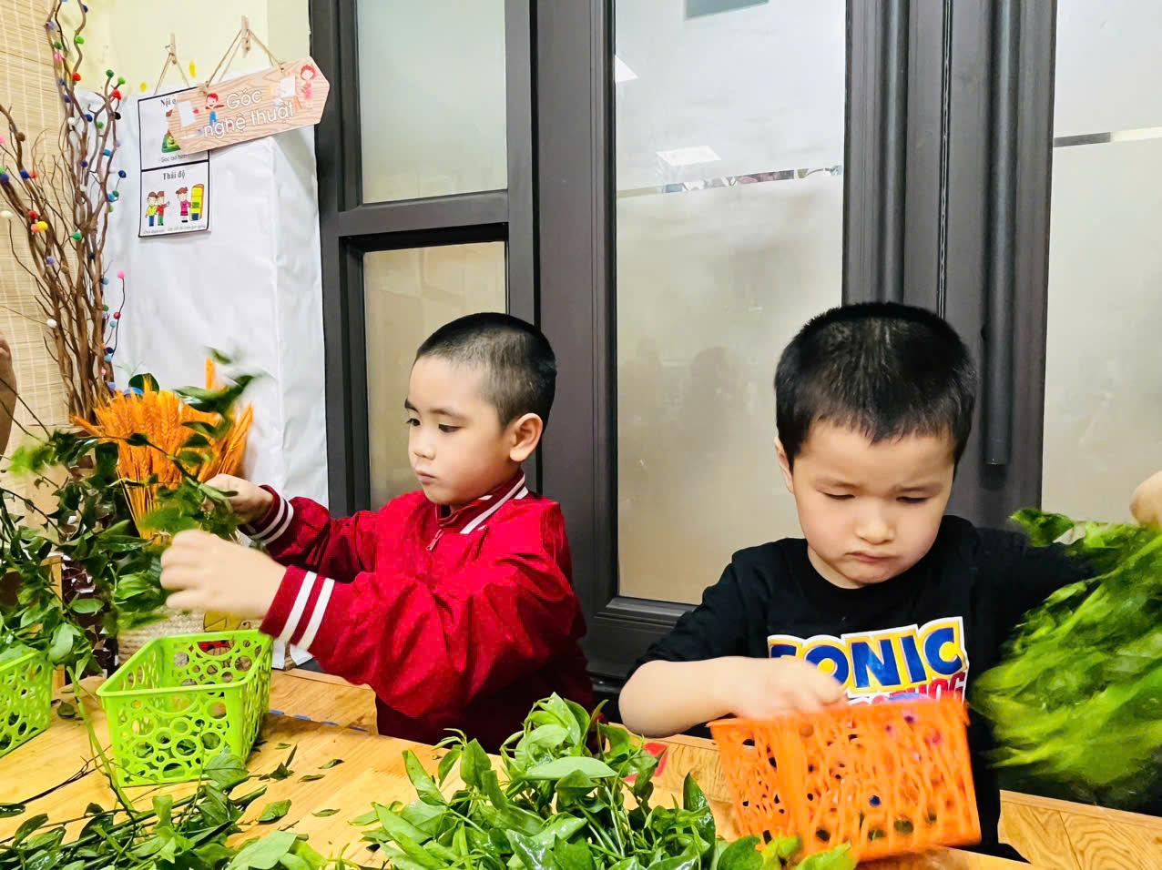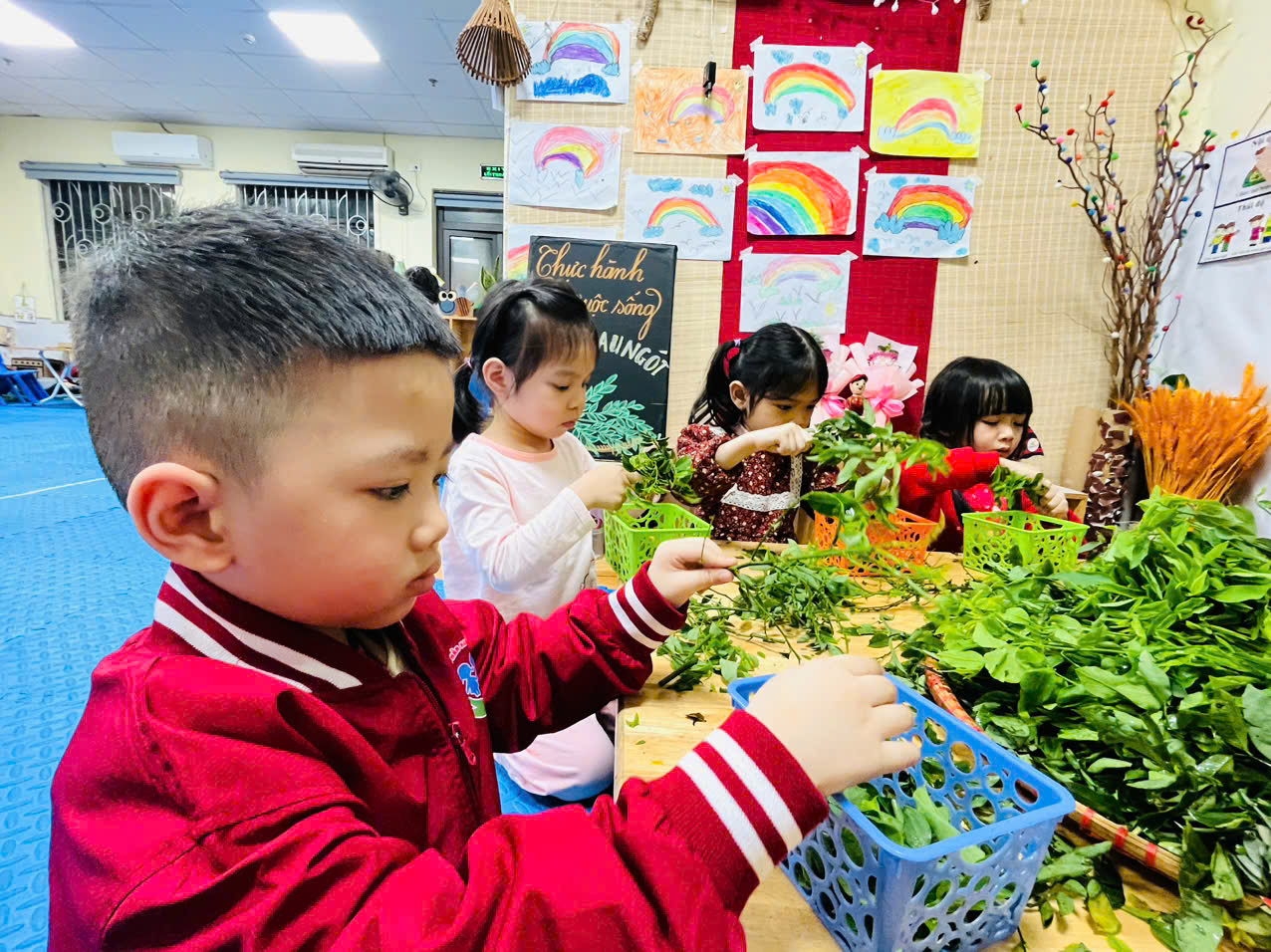 Khi tham gia hoạt động này, các con không chỉ đơn thuần học cách nhặt rau mà còn rèn luyện sự khéo léo của đôi tay, phát triển vận động tinh. Bé học cách quan sát, phân loại, kiên nhẫn và tỉ mỉ trong từng thao tác. Không chỉ vậy, thông qua công việc tưởng chừng đơn giản này, các con còn biết trân trọng công sức lao động, hiểu rằng bữa cơm hàng ngày có được là nhờ bàn tay chăm chút của bao người.