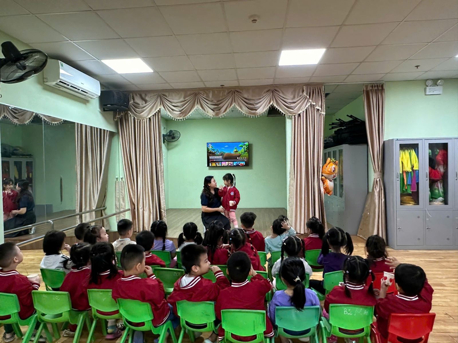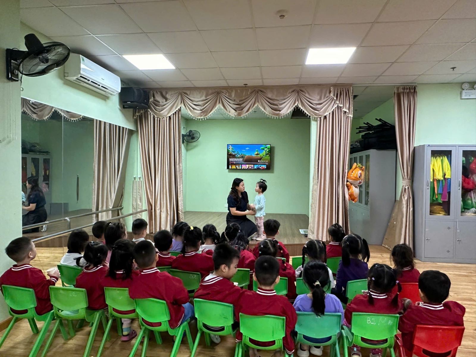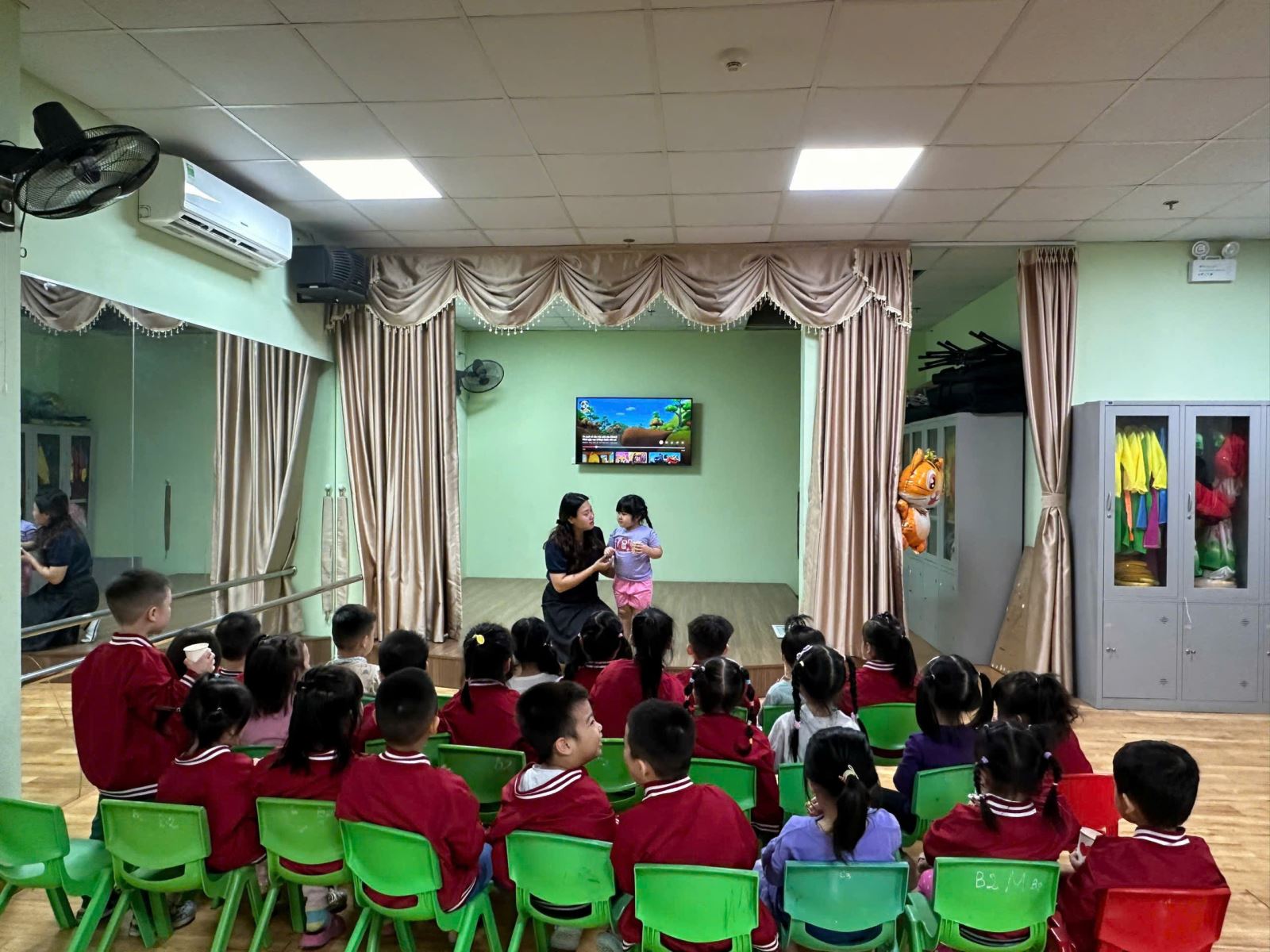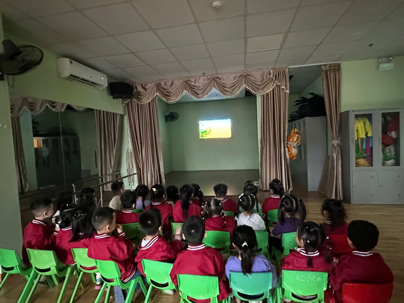 Hứng khởi với hoạt động giao lưu liên khối "Xem phim chiếu rạp" của các bạn lớp mẫu giáo nhỡ B1 và mẫu giáo bé C1