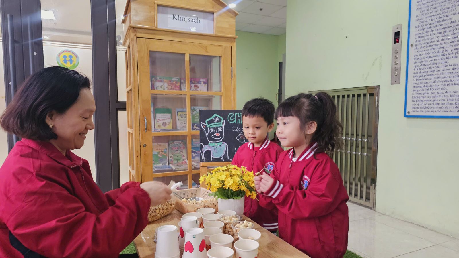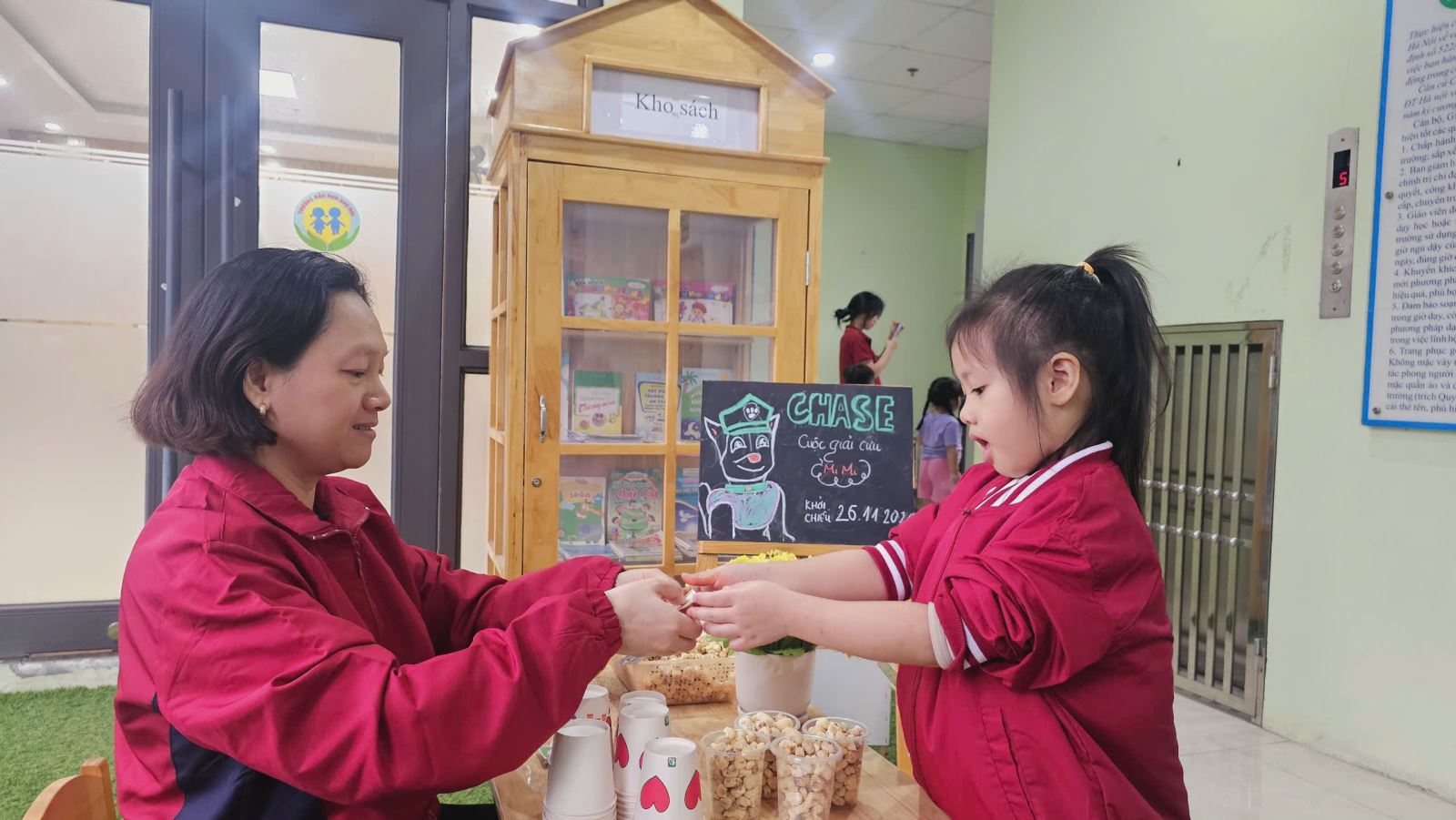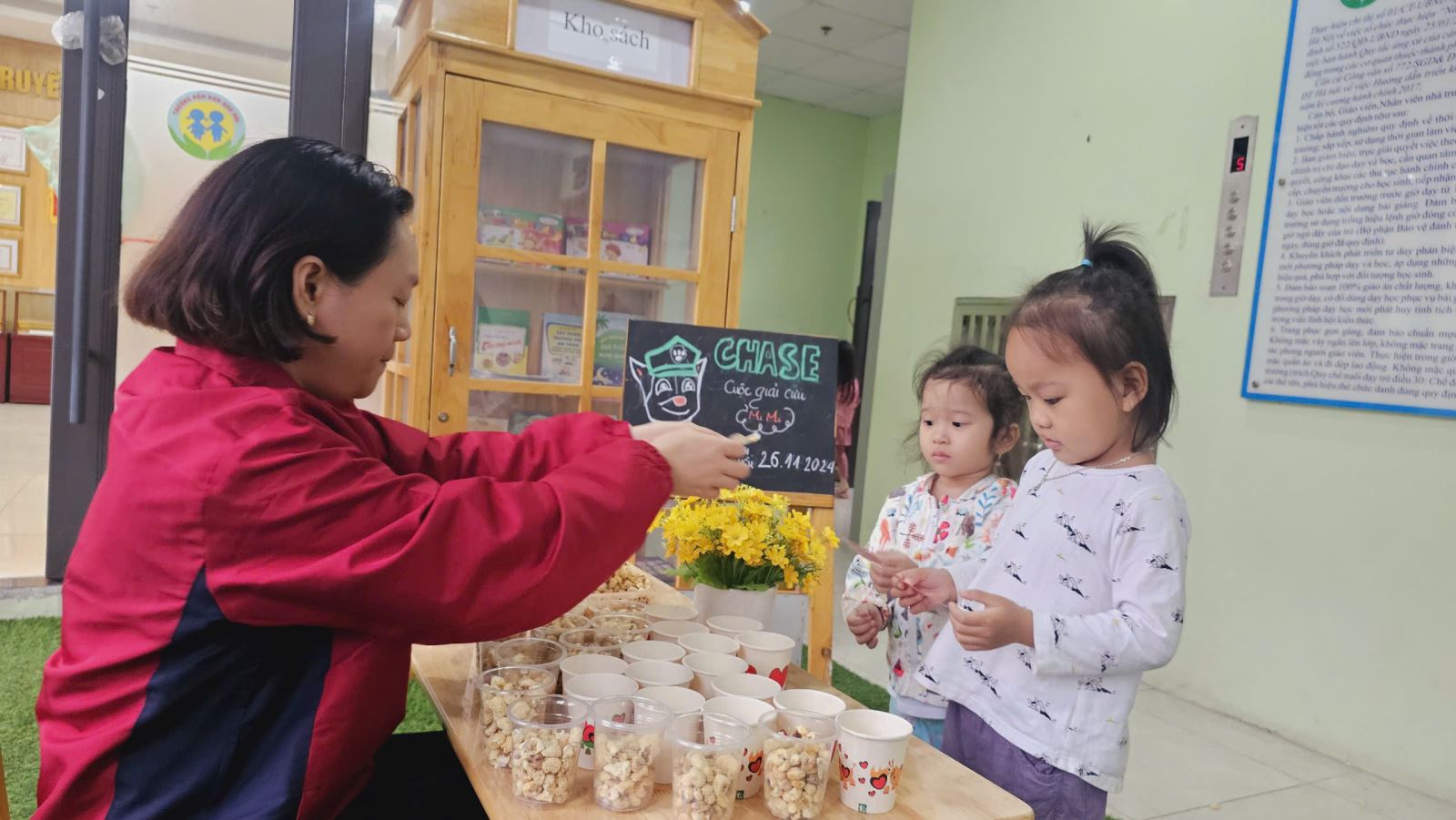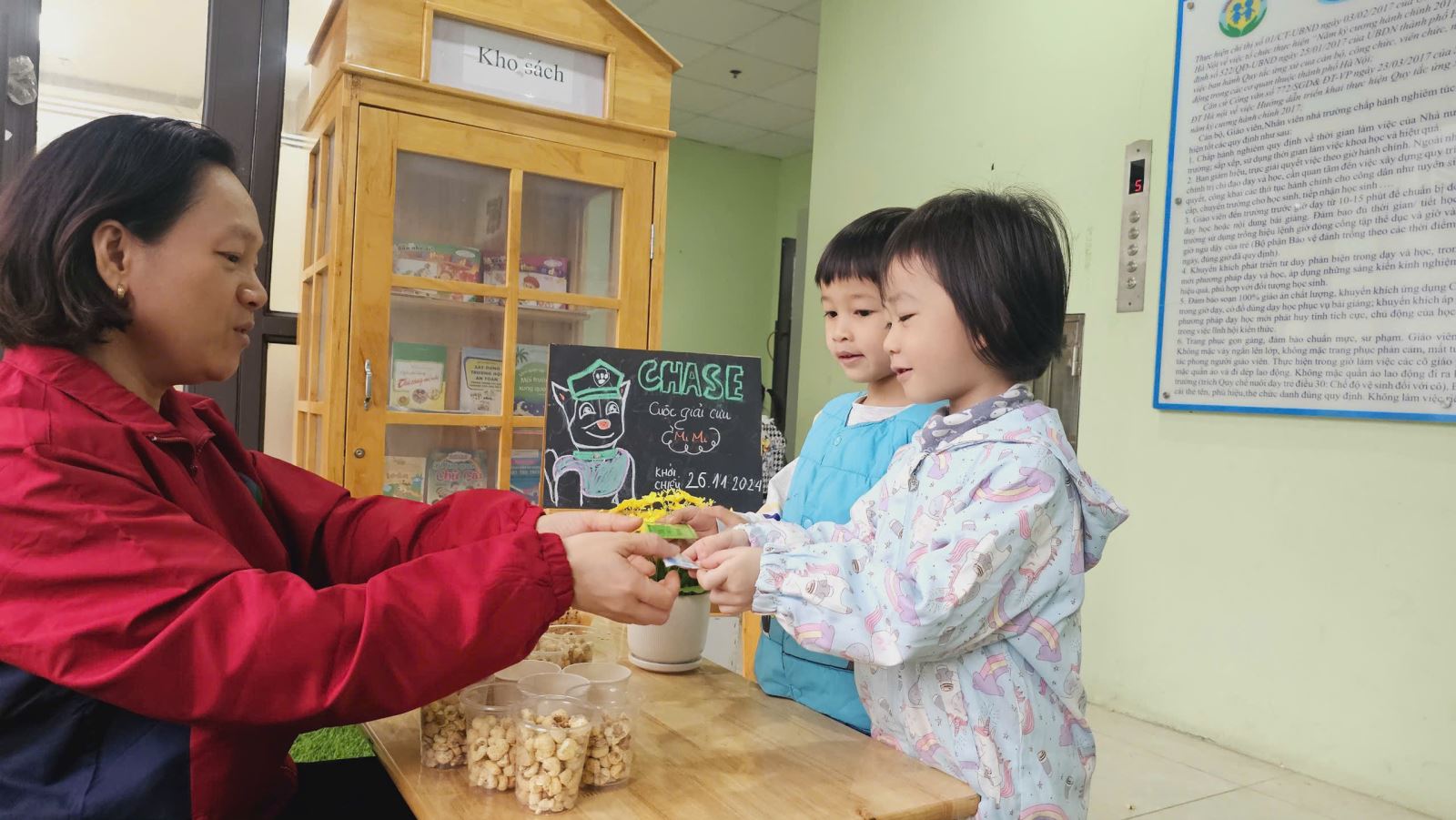 Hứng khởi với hoạt động giao lưu liên khối "Xem phim chiếu rạp" của các bạn lớp mẫu giáo nhỡ B1 và mẫu giáo bé C1