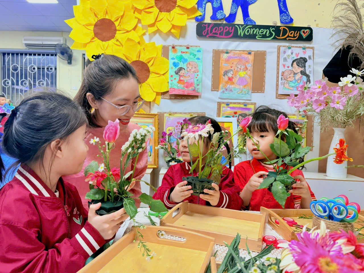 Thông qua hoạt động, các con không chỉ rèn luyện sự khéo léo, khả năng thẩm mỹ mà còn được giáo dục về lòng biết ơn, sự trân trọng và tình yêu thương đối với những người phụ nữ xung quanh mình. Đây chính là những bài học cảm xúc đầu đời vô cùng quý giá.