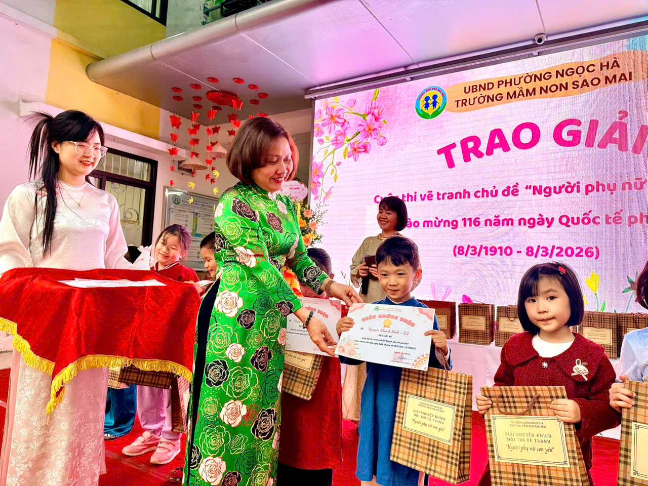 Sau thời gian tổng hợp và đánh giá, ngày 5/3/2026, Ban Tổ chức đã chính thức công bố kết quả và trao giải cho các bé có tác phẩm xuất sấc. Những phần quà nhỏ nhưng đầy ý nghĩa đã được trao tận tay các “họa sĩ nhí”, nhằm ghi nhận sự sáng tạo, nỗ lực và tình cảm mà các con gửi gắm trong từng bức tranh.