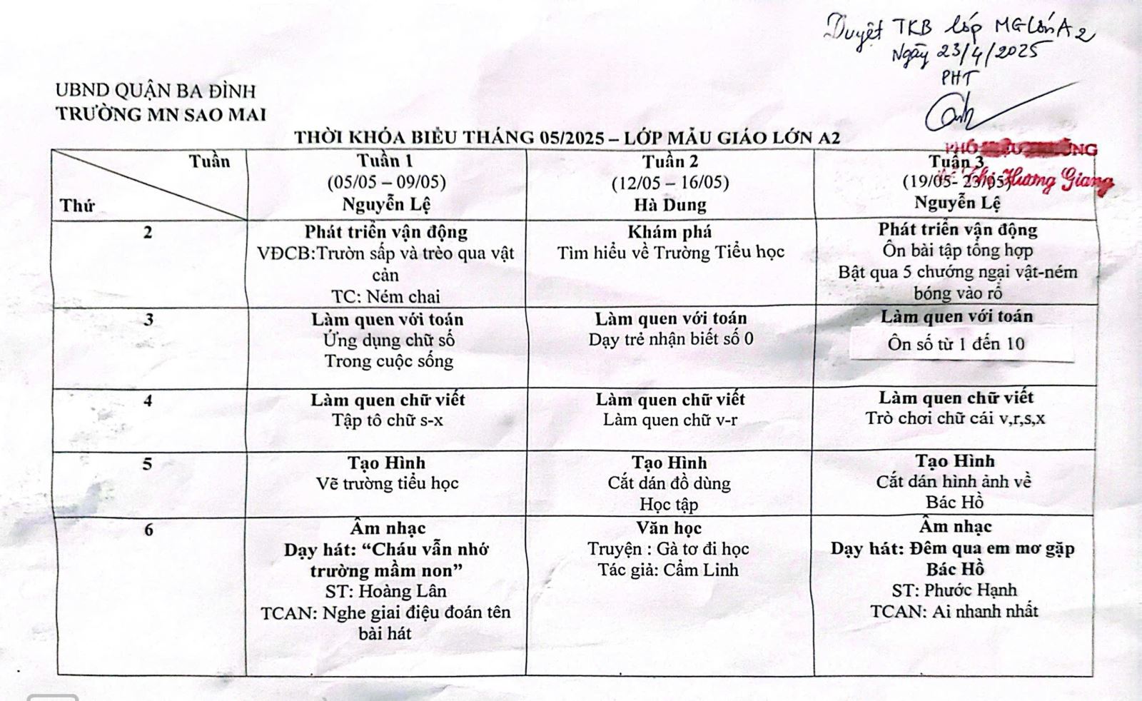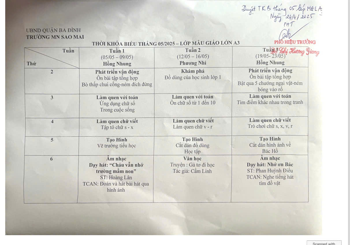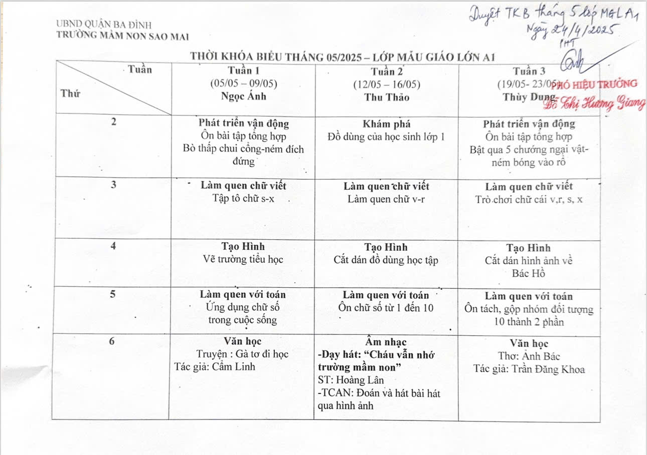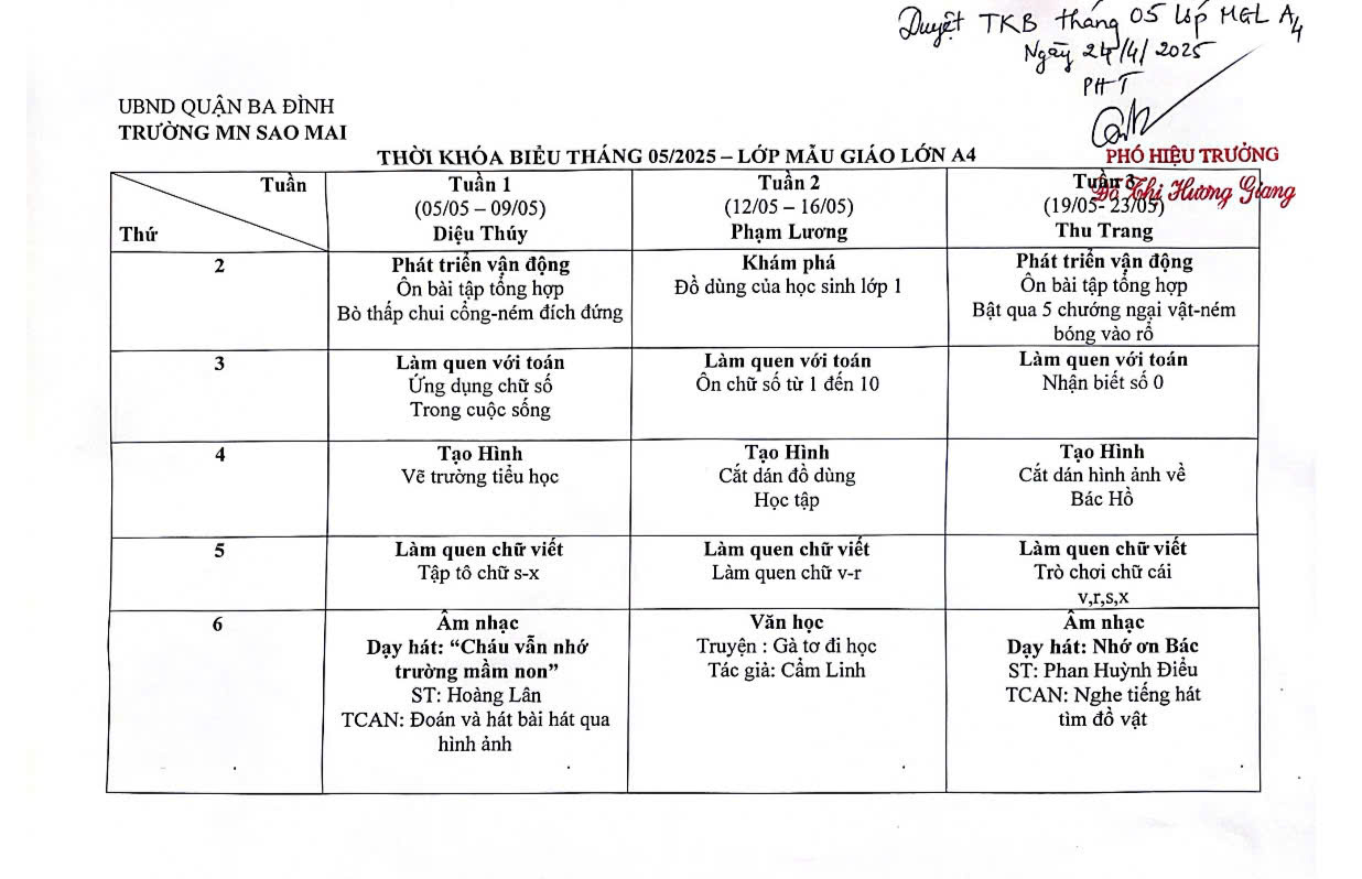 Thời Khóa Biểu Khối Mẫu Giáo Lớn Tháng 5 năm 2025