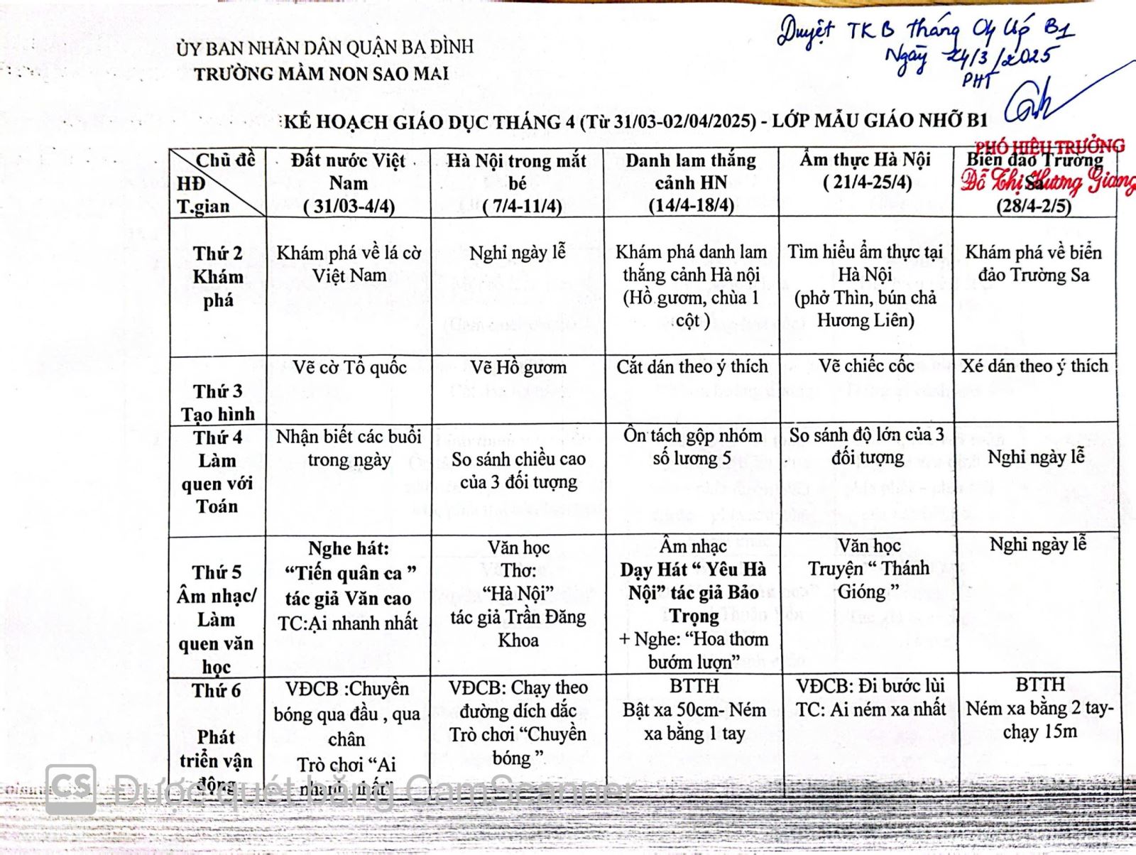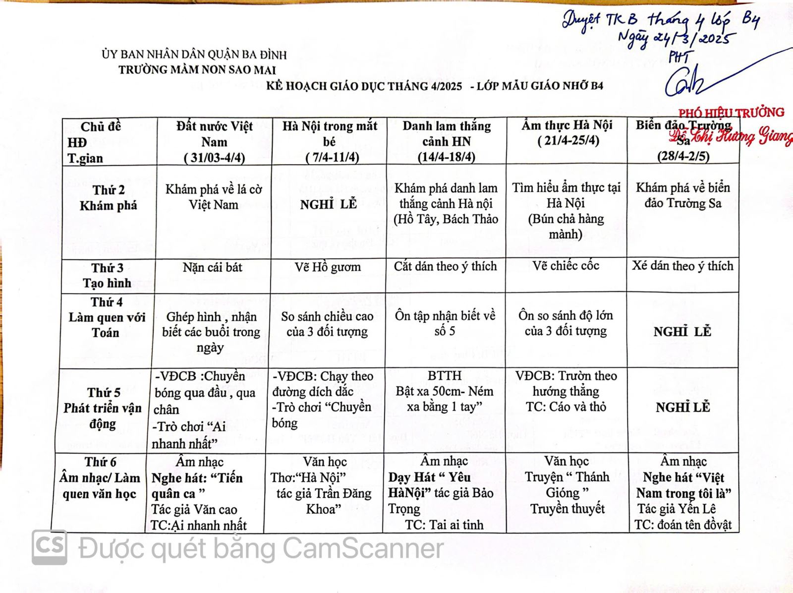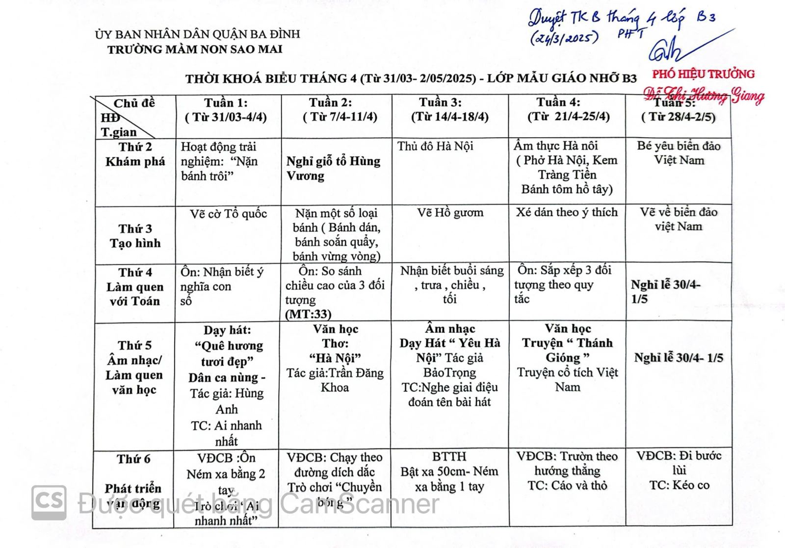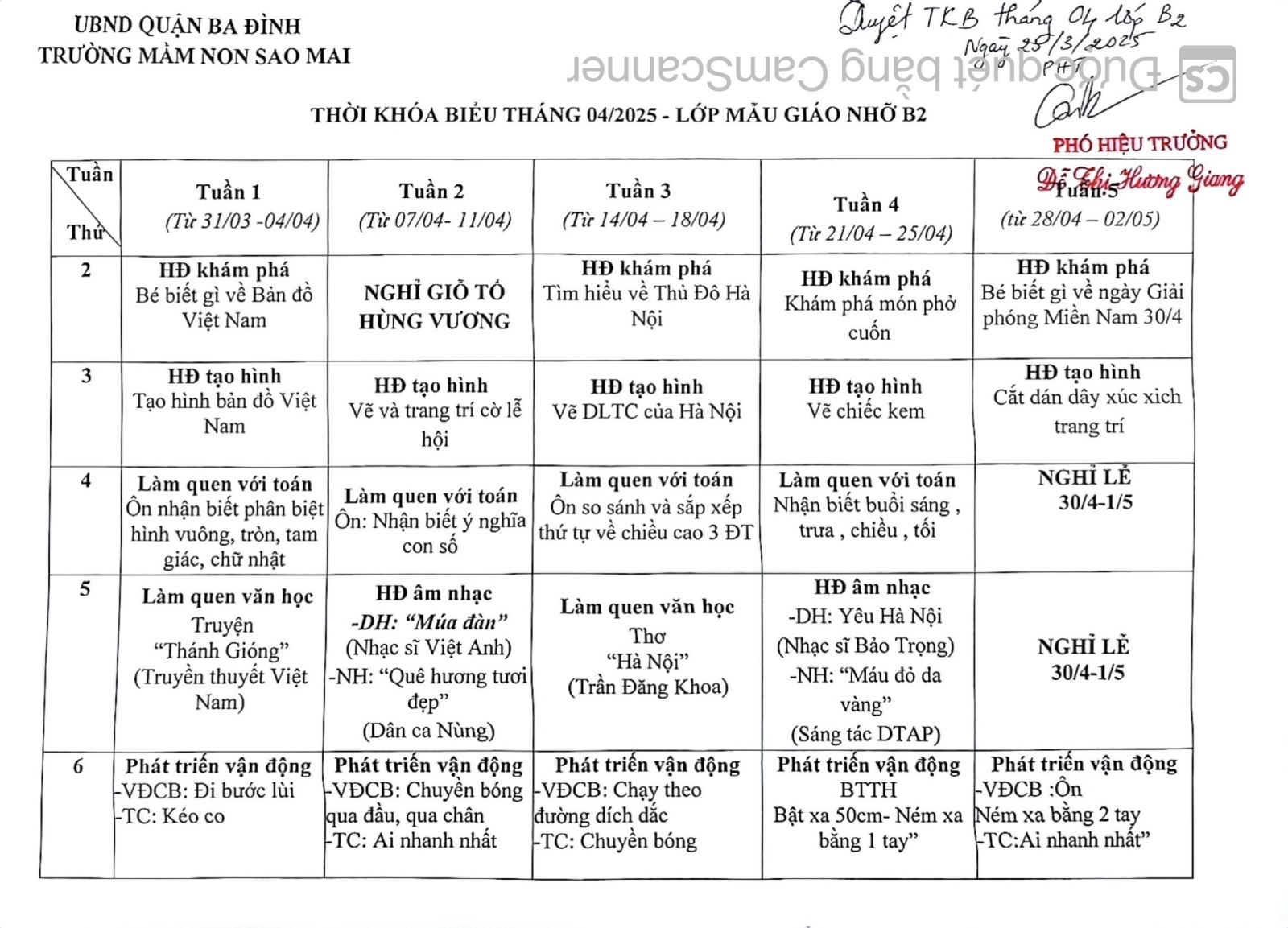 Trường Mầm non Sao Mai trân trọng gửi tới quý PHHS Thời khóa biểu tháng 04/2025 - Khối Mẫu giáo nhỡ - Năm học 2024-2025