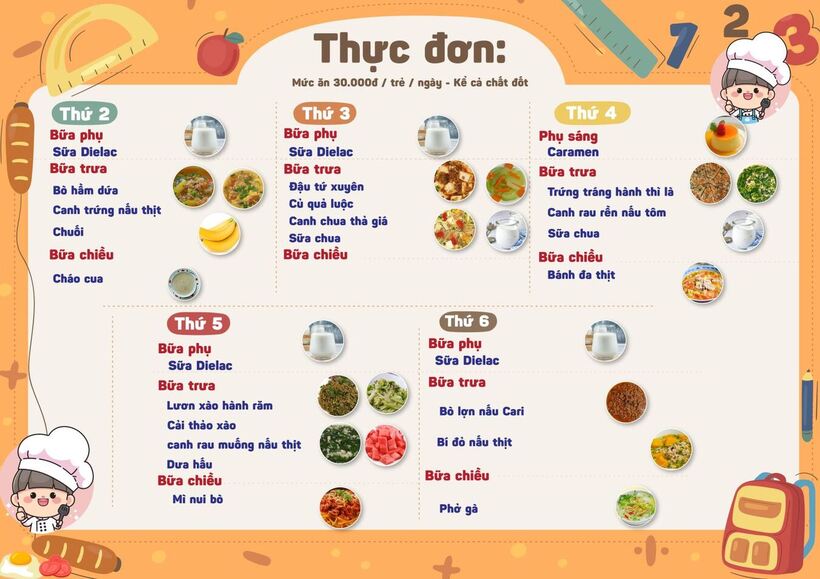 Thực đơn cho trẻ tuần I tháng 12/2025