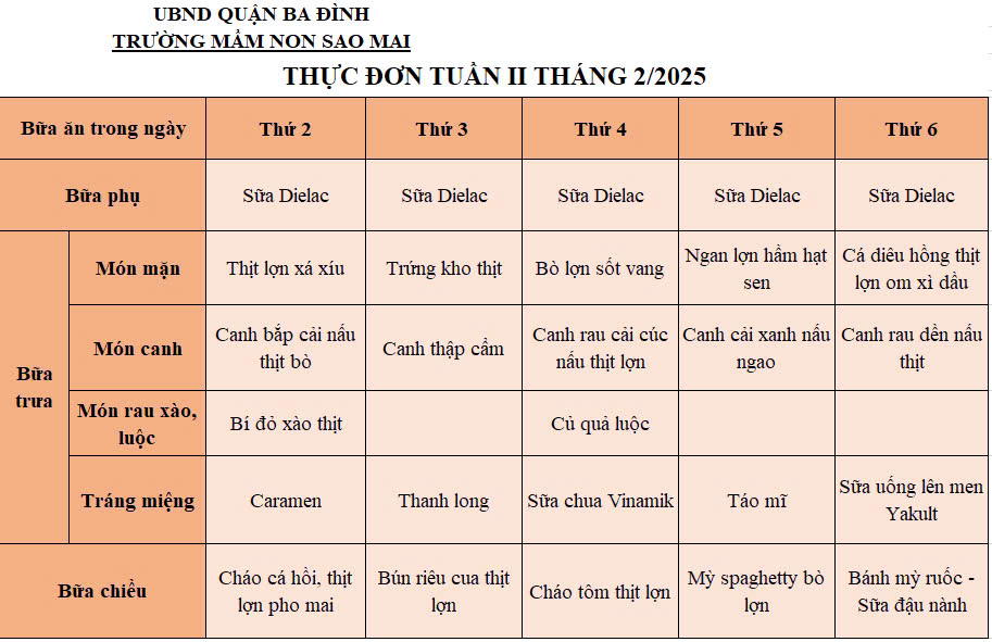 Thực đơn cho trẻ tuần II tháng 12/2025