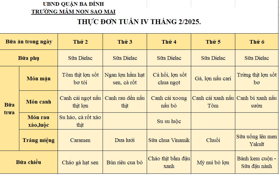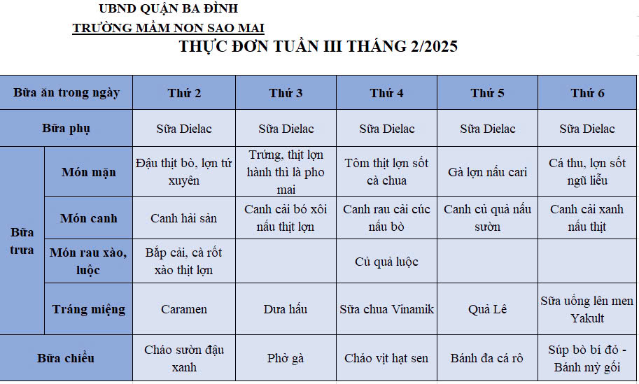 Thực đơn cho trẻ tuần III tháng 11/2025