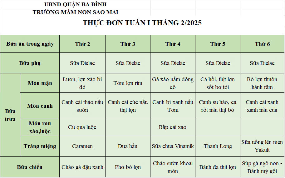 Thực đơn cho trẻ tuần I tháng 12/2025