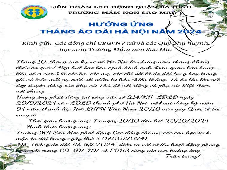 Trường Mầm non Sao Mai hưởng ứng "Tháng áo dài Hà Nội" năm 2024