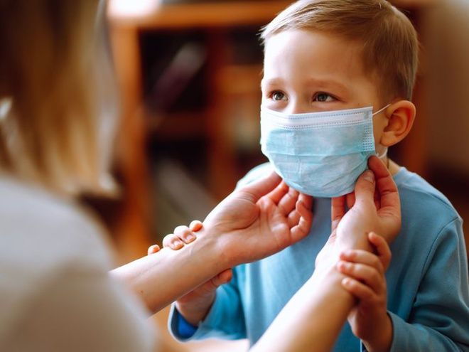 Trẻ nên đeo khẩu trang khi trong nhà có người thân mắc Covid-19.