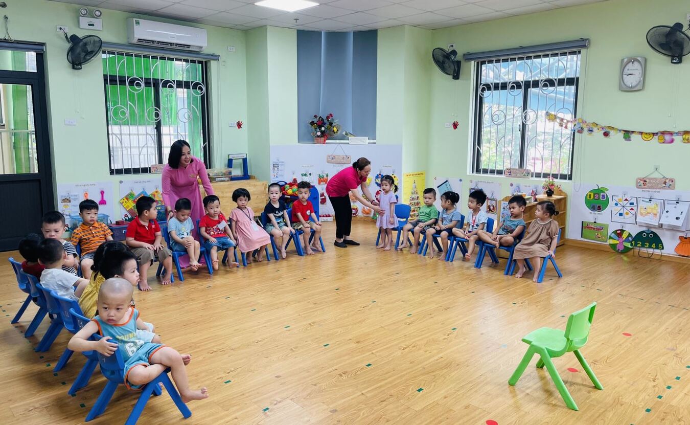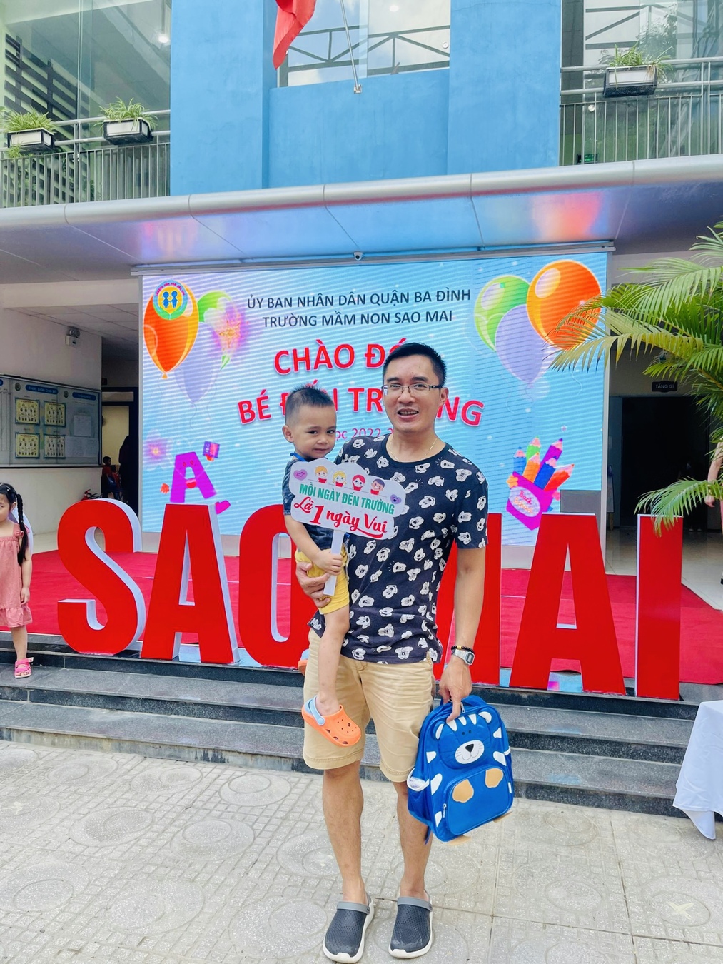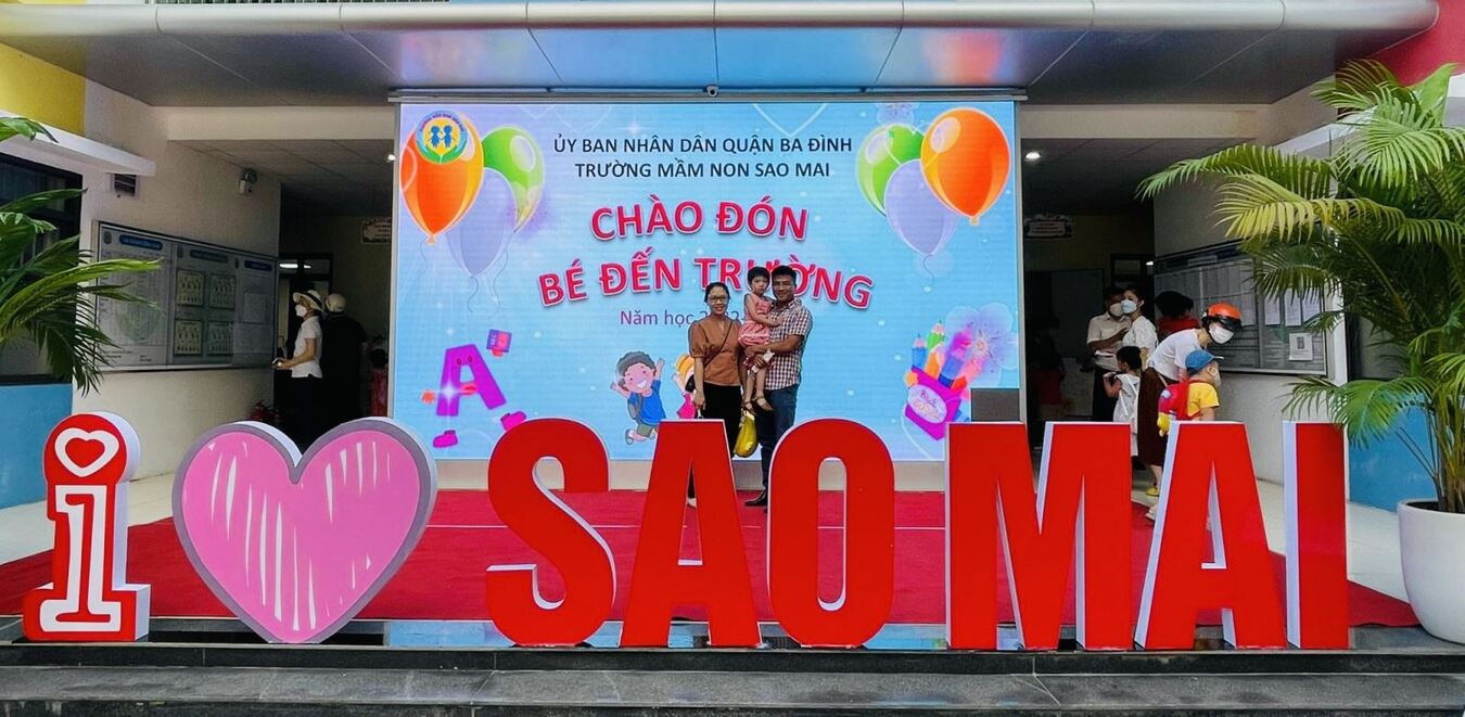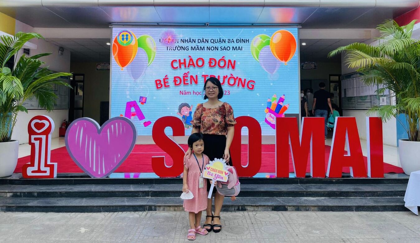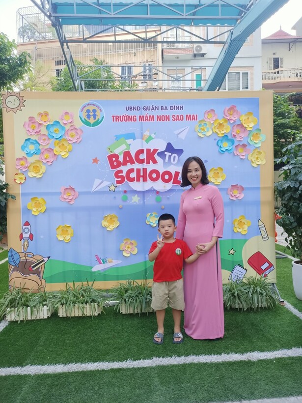 Cô và bé trường Mầm non Sao Mai hân hoan ngày đầu đến trường