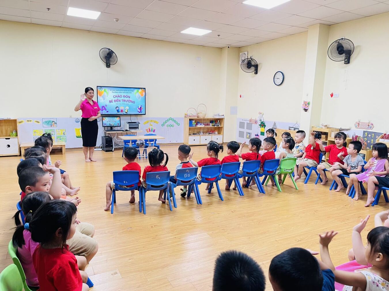 Sáng ngày 3/8/2022 các bé trường Mầm non Sao Mai bắt đầu trở lại trường học sau 2 tháng hè.
