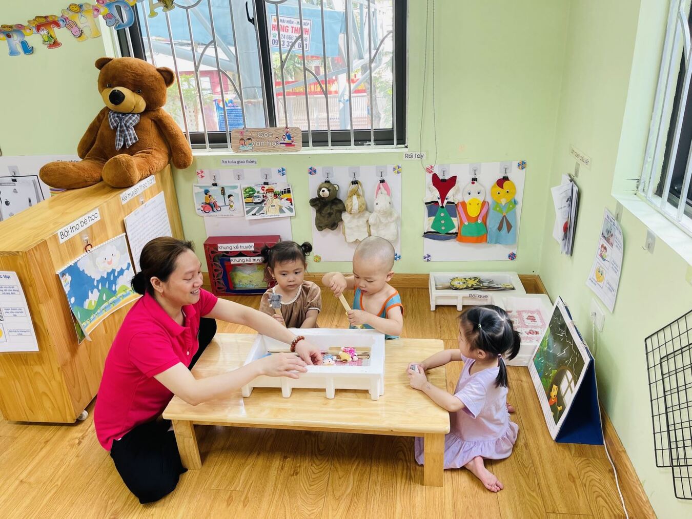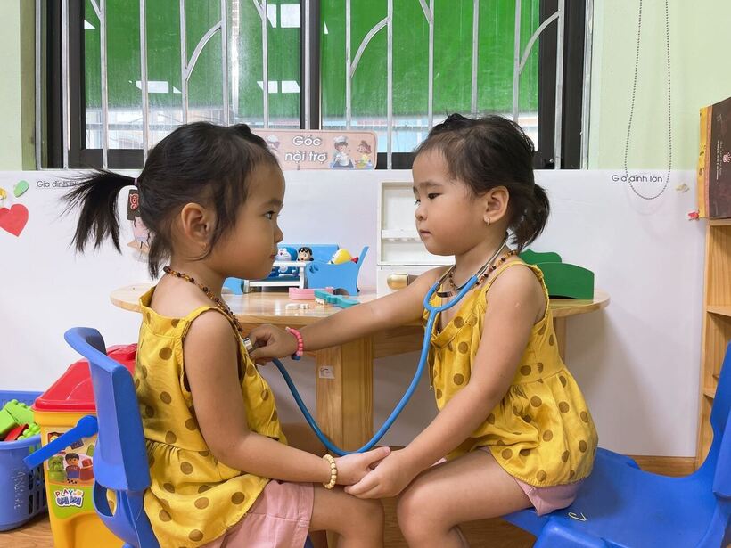 Nhà trường tạo những không gian xinh xắn và những phần quà tinh thần nhỏ nhắn tạo tâm lý tốt cho bé trong ngày đầu tiên đến trường.