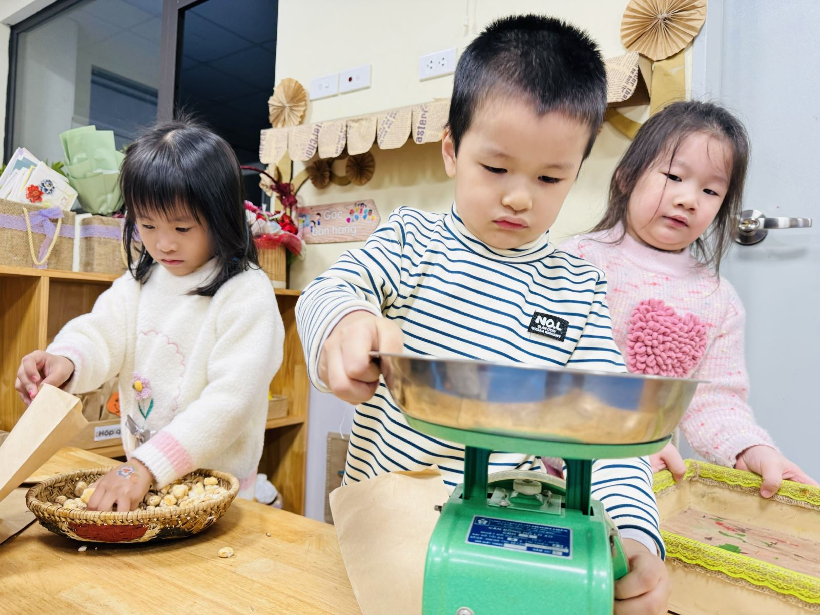 Sau các giờ hoạt động học, các bé được thỏa sức hóa thân vào các góc chơi mà bé yêu thích bằng việc lựa chọn đóng vai chơi và cùng các bạn chia sẻ niềm vui mỗi khi được đóng vai trong "xã hội người lớn thu nhỏ"