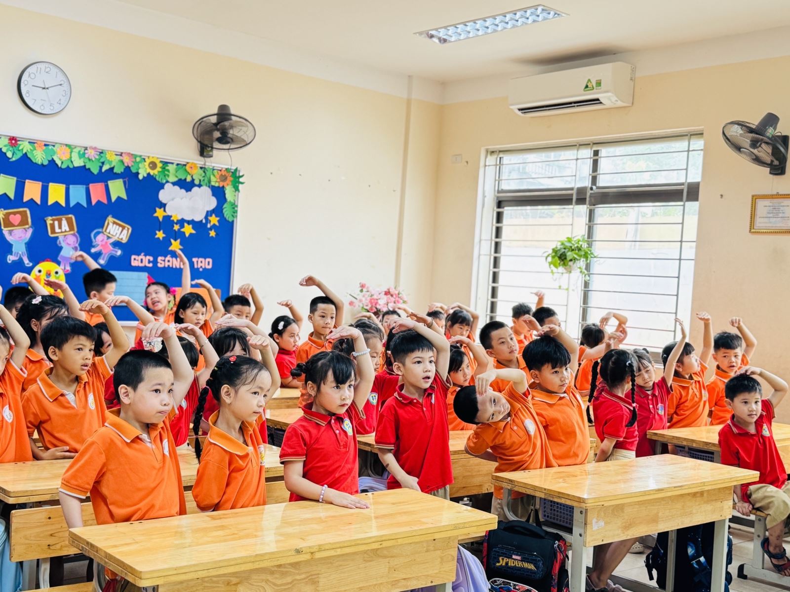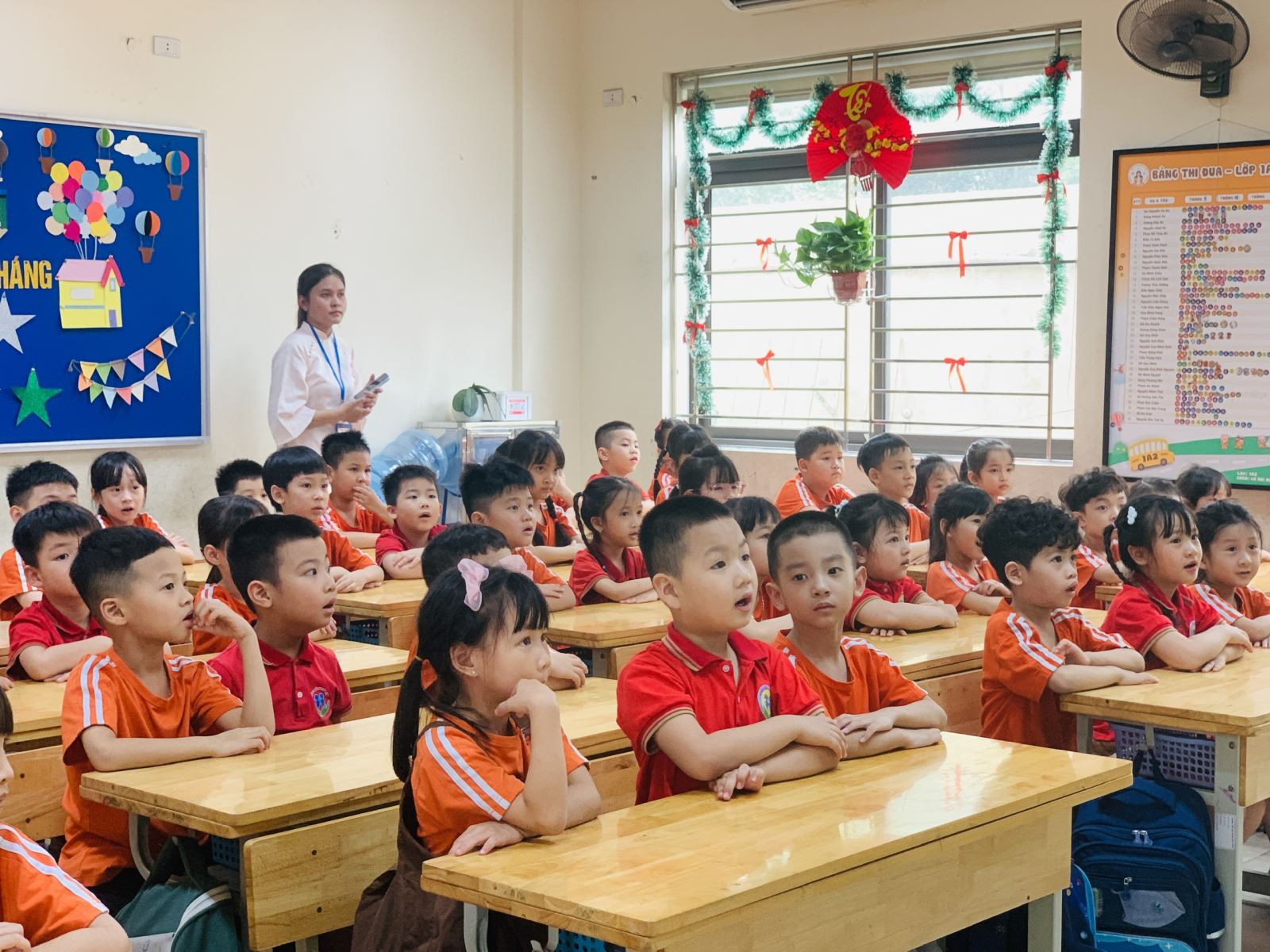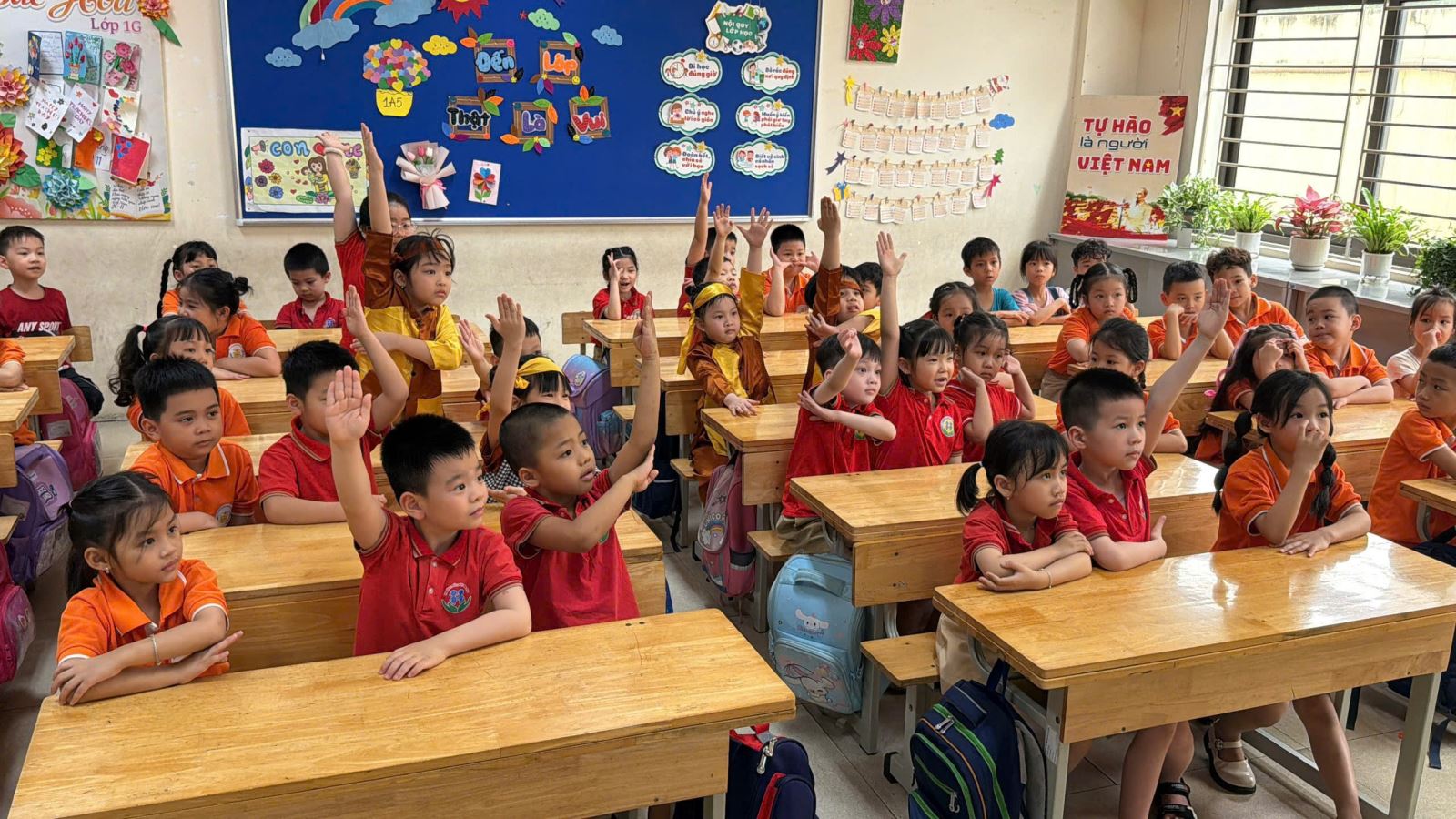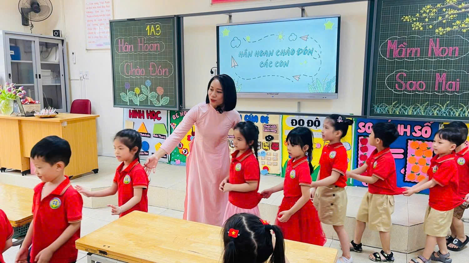 Trong suốt buổi tham quan, các bé còn được làm quen với một số hoạt động đặc trưng của học sinh tiểu học như cách ngồi học, giơ tay phát biểu, giữ gìn trật tự trong lớp. Thông qua những trải nghiệm trực quan và gần gũi, trẻ dần hình dung rõ hơn về môi trường học tập sắp tới, từ đó giảm bớt tâm lý bỡ ngỡ, lo lắng và hình thành niềm háo hức mong chờ ngày vào lớp Một.
