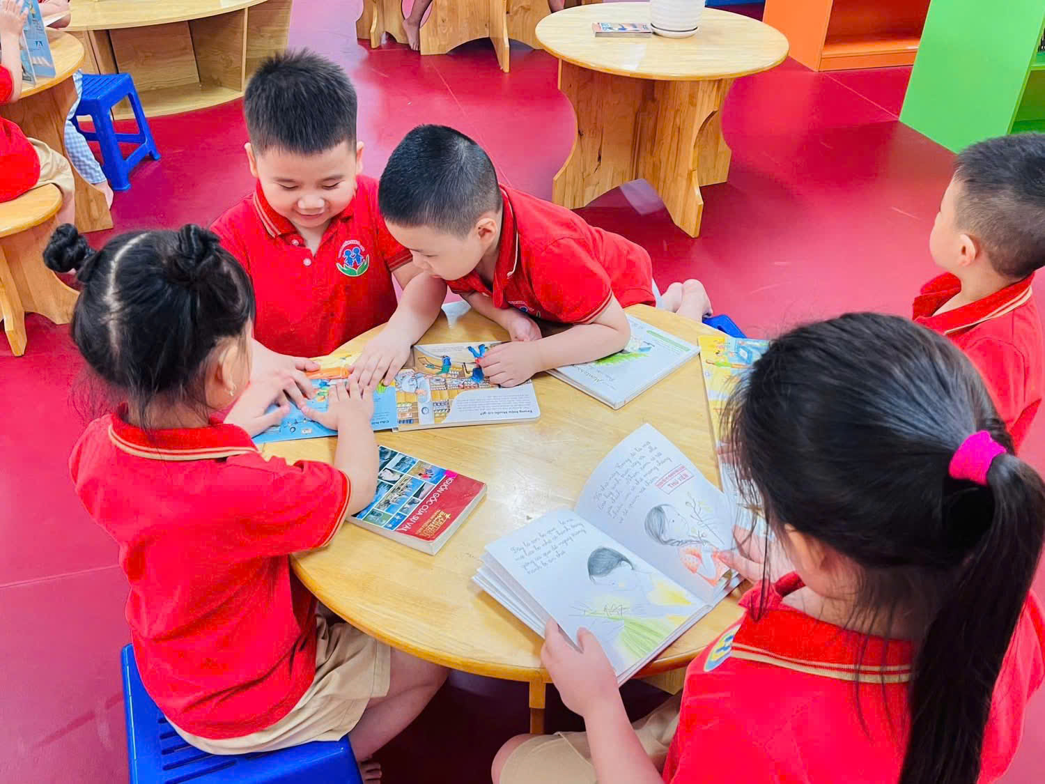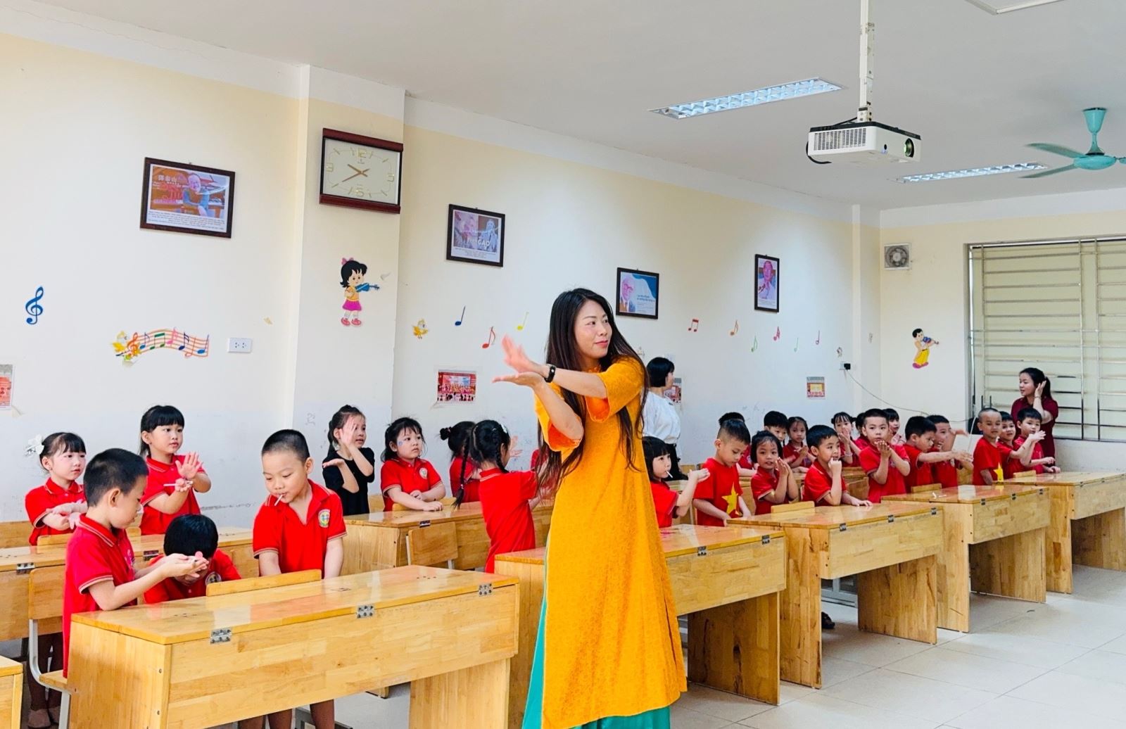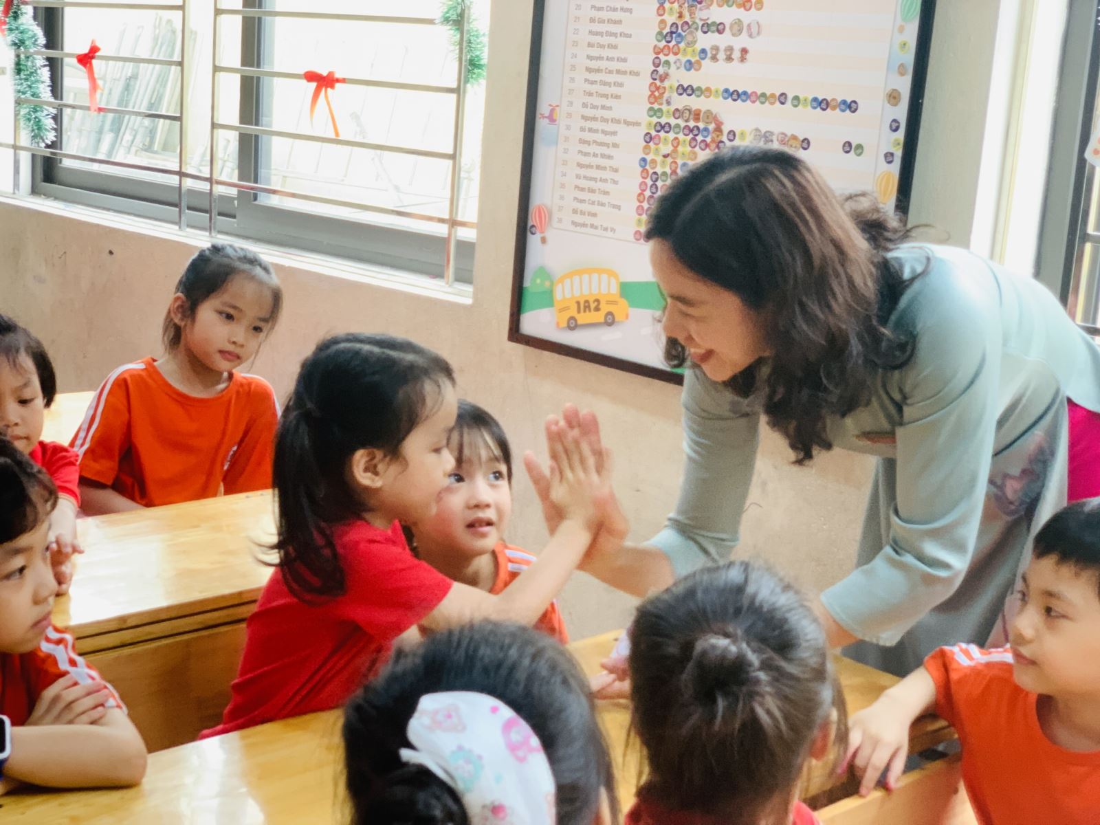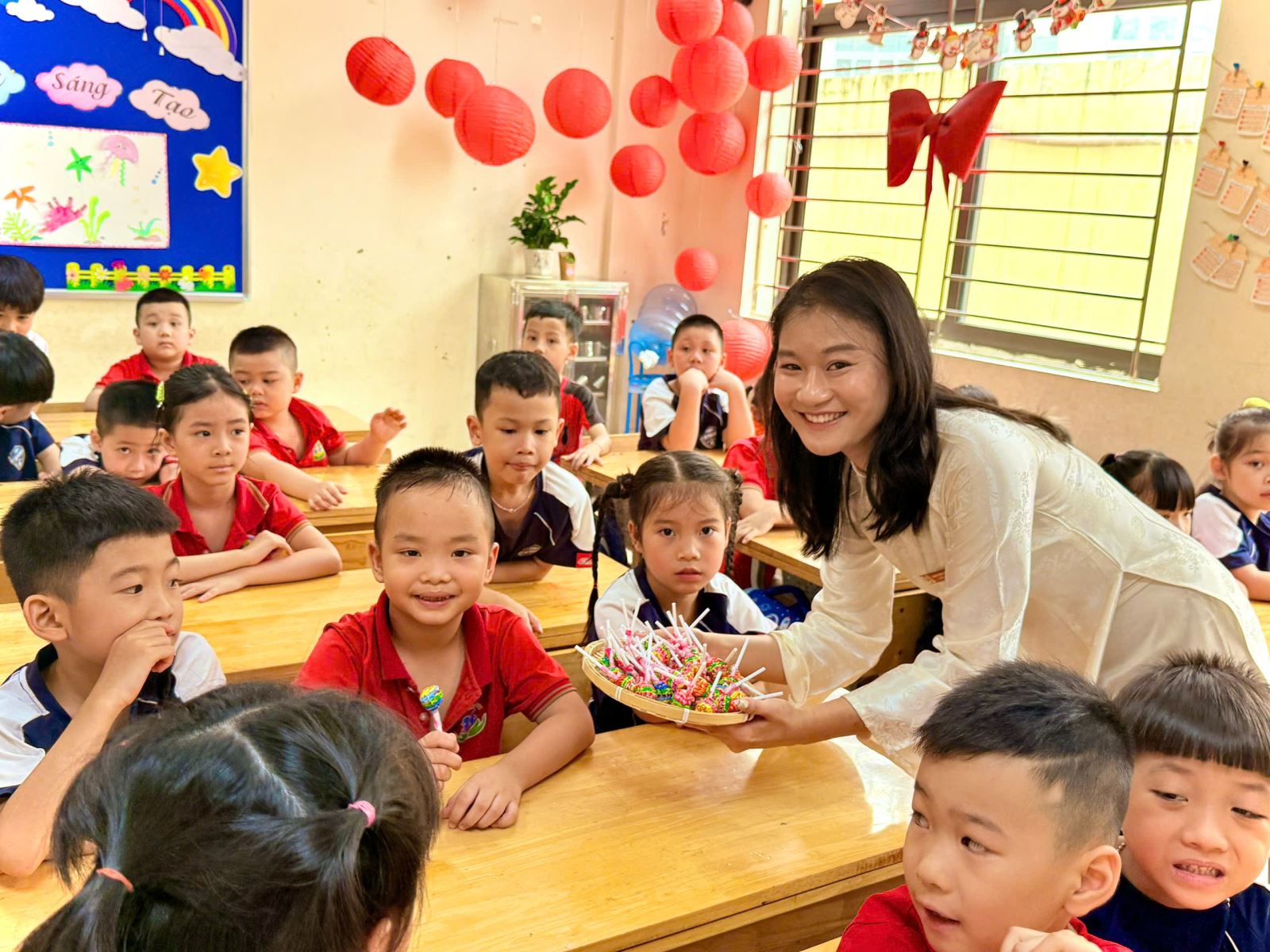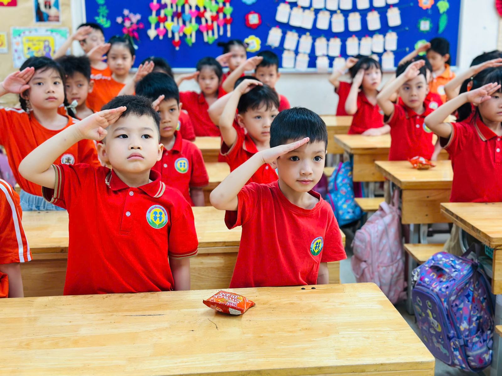 Trong suốt buổi tham quan, các bé còn được làm quen với một số hoạt động đặc trưng của học sinh tiểu học như cách ngồi học, giơ tay phát biểu, giữ gìn trật tự trong lớp. Thông qua những trải nghiệm trực quan và gần gũi, trẻ dần hình dung rõ hơn về môi trường học tập sắp tới, từ đó giảm bớt tâm lý bỡ ngỡ, lo lắng và hình thành niềm háo hức mong chờ ngày vào lớp Một.