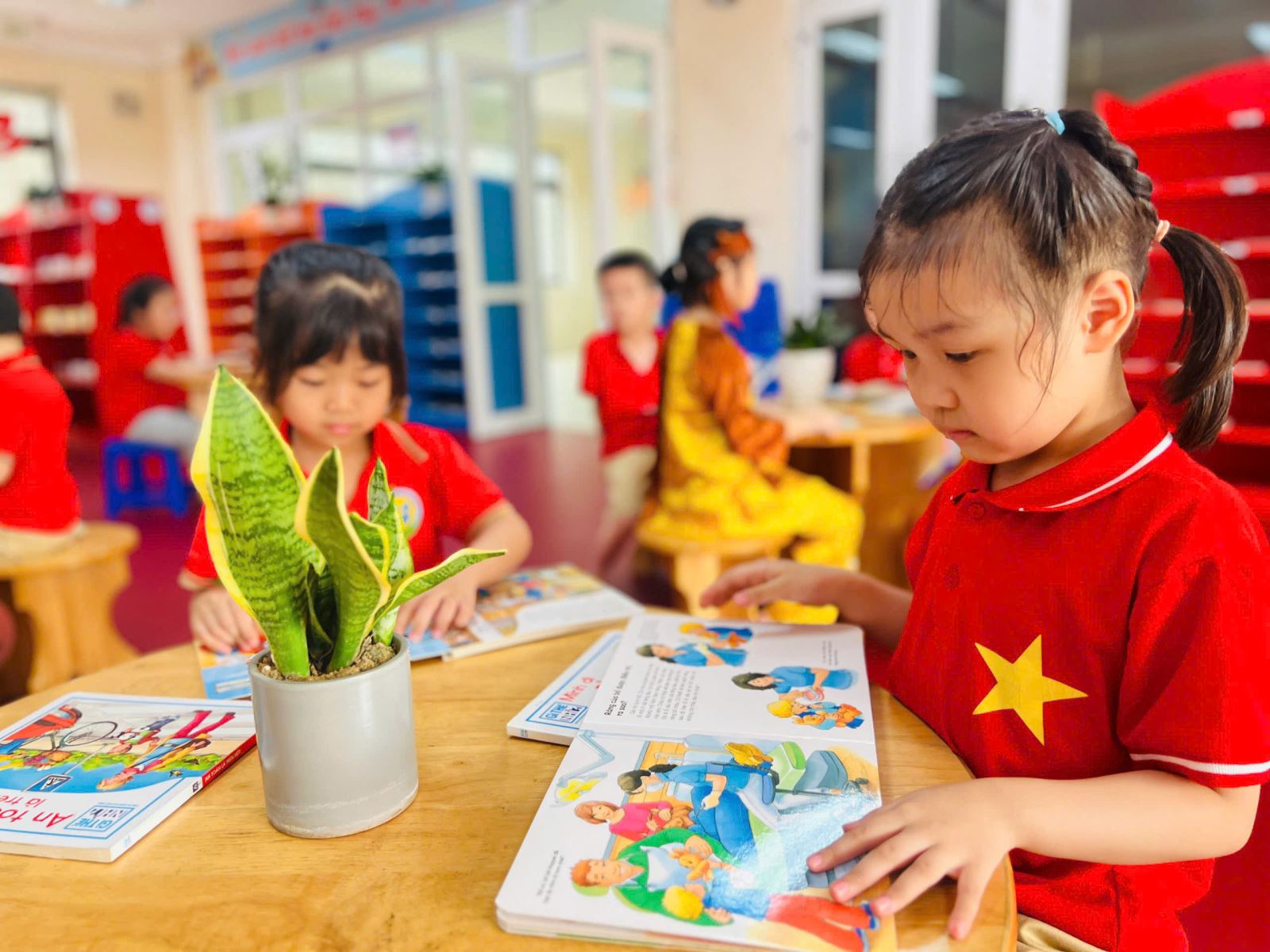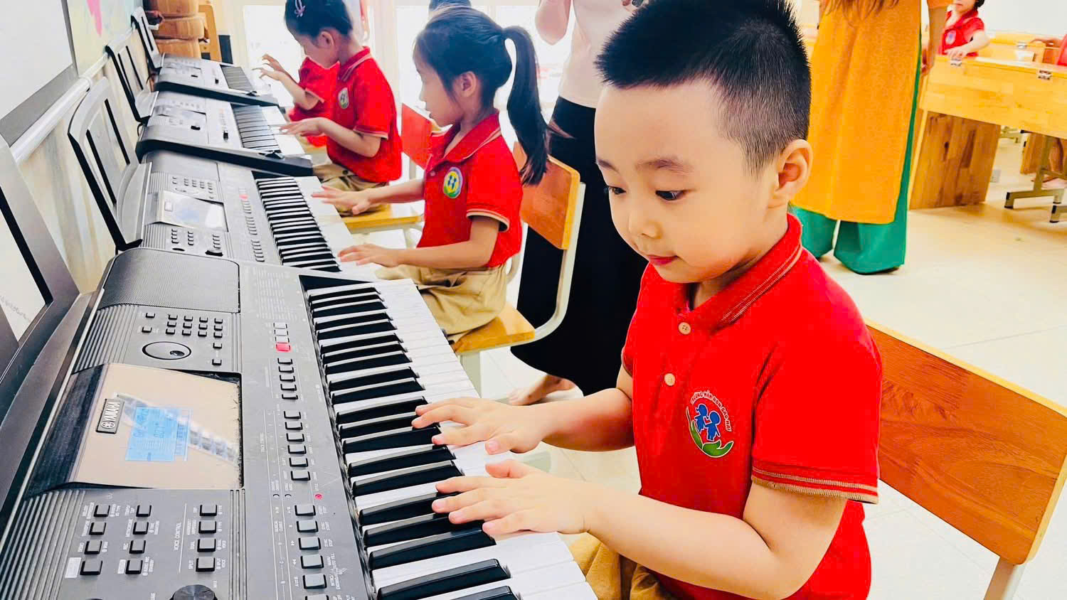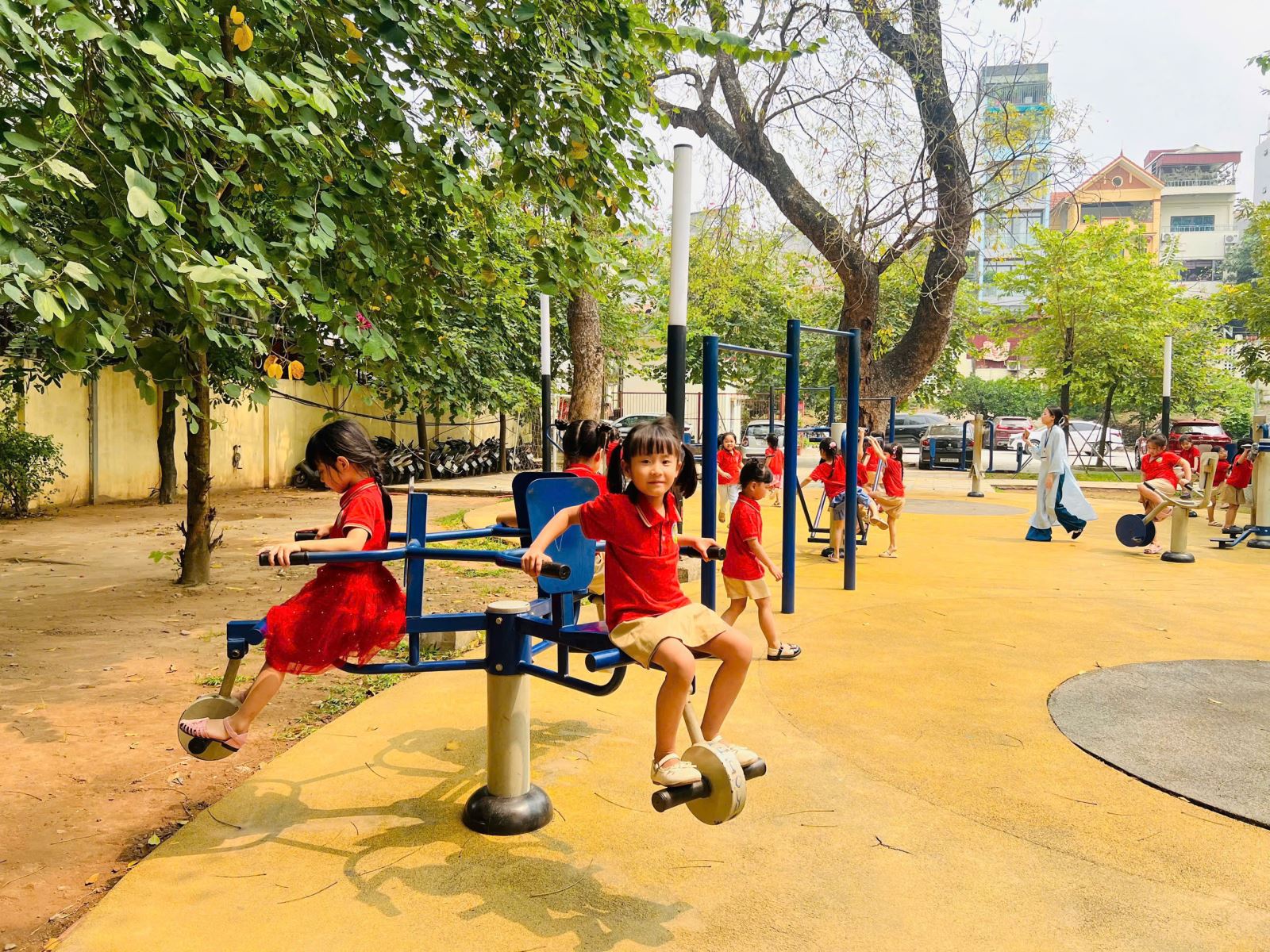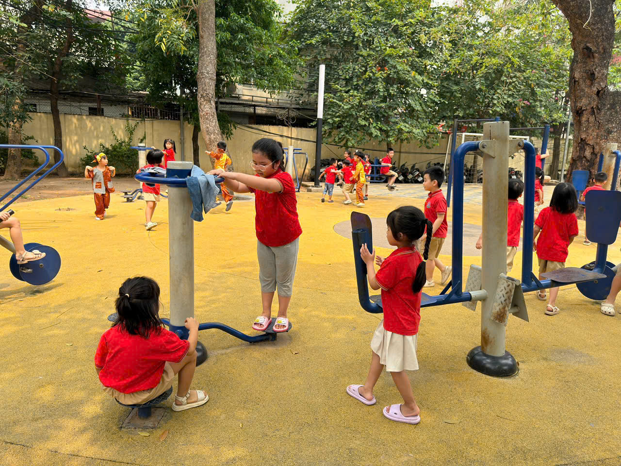 Trong suốt buổi tham quan, các bé còn được làm quen với một số hoạt động đặc trưng của học sinh tiểu học như cách ngồi học, giơ tay phát biểu, giữ gìn trật tự trong lớp. Thông qua những trải nghiệm trực quan và gần gũi, trẻ dần hình dung rõ hơn về môi trường học tập sắp tới, từ đó giảm bớt tâm lý bỡ ngỡ, lo lắng và hình thành niềm háo hức mong chờ ngày vào lớp Một.