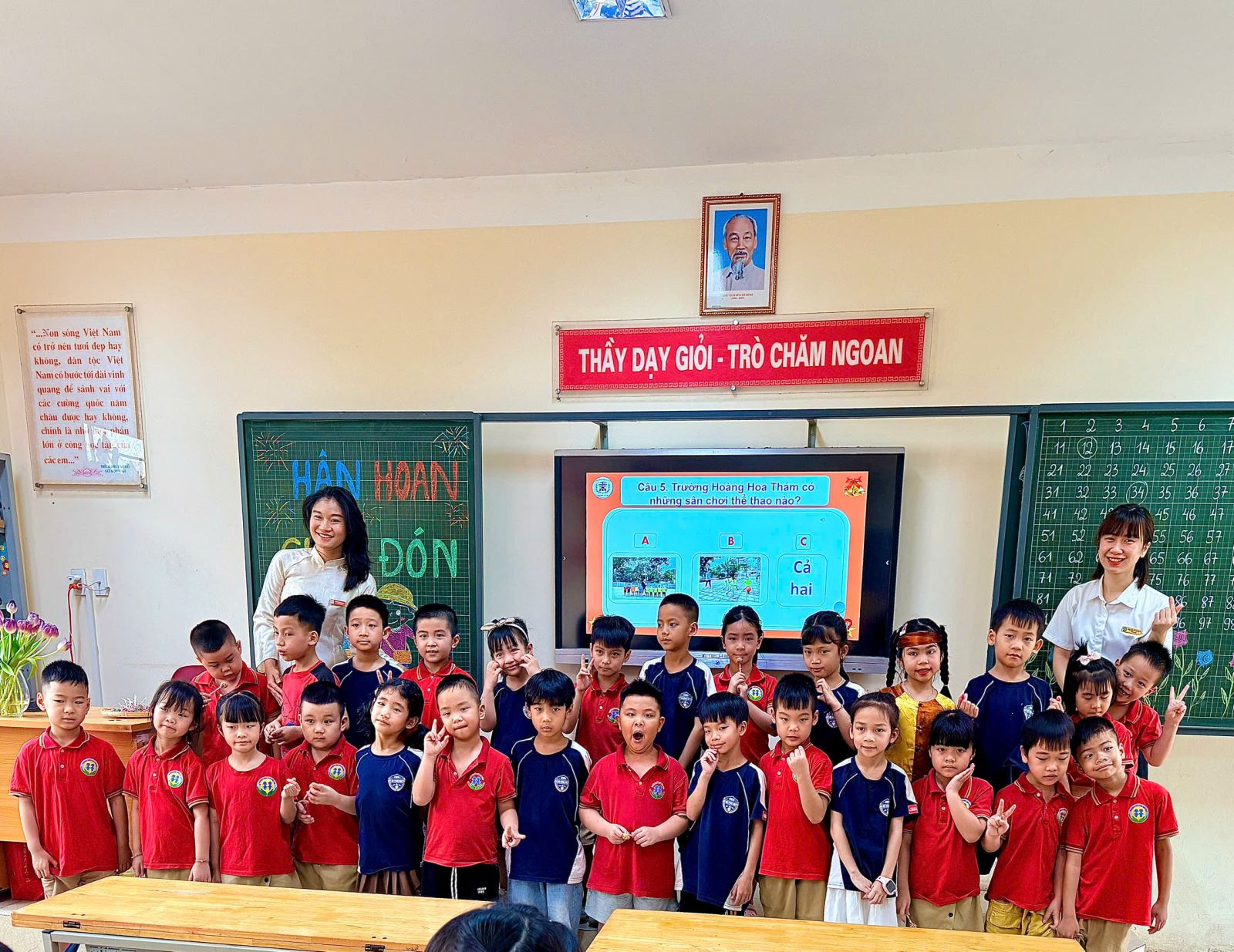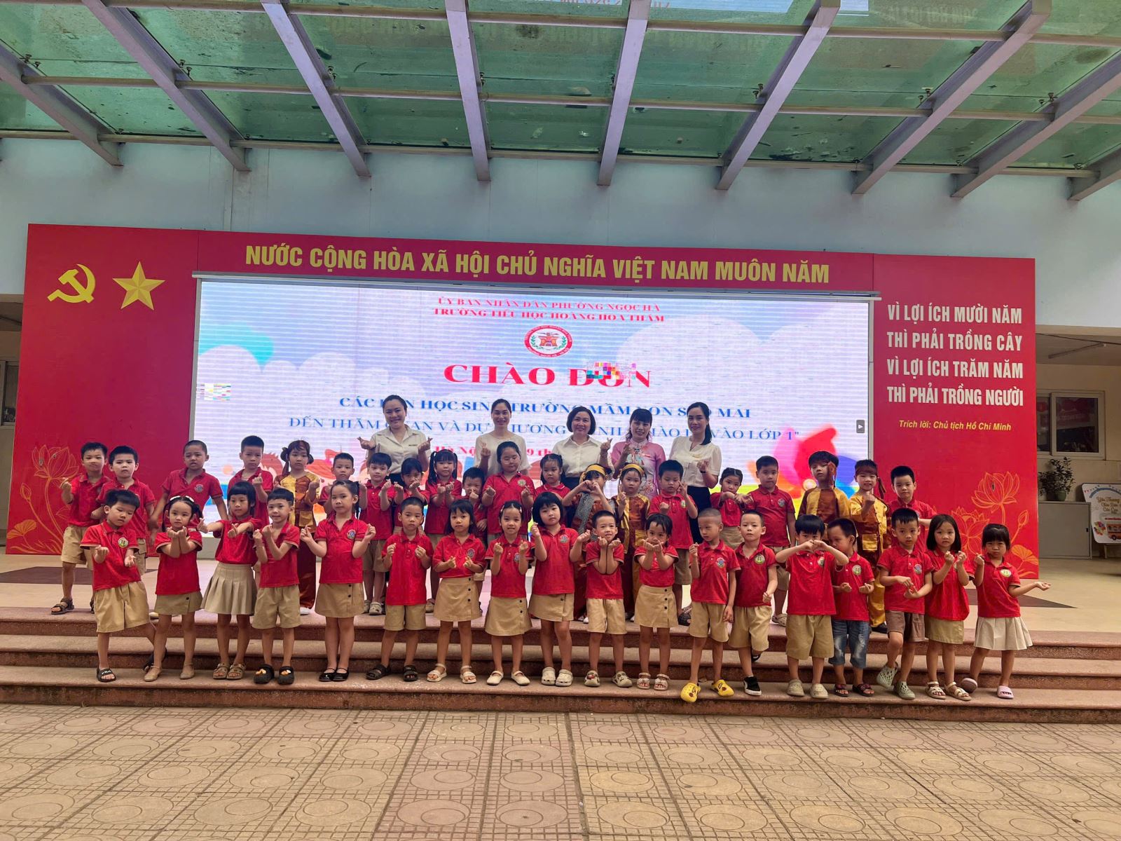Góp phần quan trọng tạo nên thành công của buổi tham quan chính là sự đón tiếp chu đáo, ân cần và nồng hậu của Ban Giám hiệu cùng các thầy cô giáo Trường Tiểu học Hoàng Hoa Thám. Các thầy cô đã chuẩn bị kỹ lưỡng nội dung giới thiệu, hướng dẫn nhẹ nhàng, thân thiện, luôn quan tâm, động viên để các bé cảm thấy an tâm và tự tin. Sự gần gũi, cởi mở ấy đã để lại ấn tượng đẹp trong lòng các con ngay từ lần đầu làm quen với ngôi trường tiểu học.