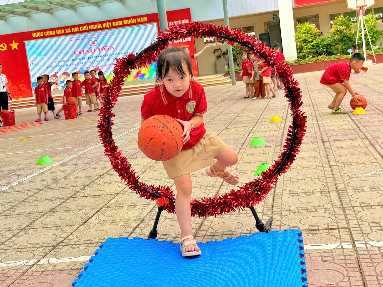 Hào hứng hoạt động tham quan Trường Tiểu học Hoàng Hoa Thám của học sinh khối mẫu giáo lớn Trường Mầm non Sao Mai