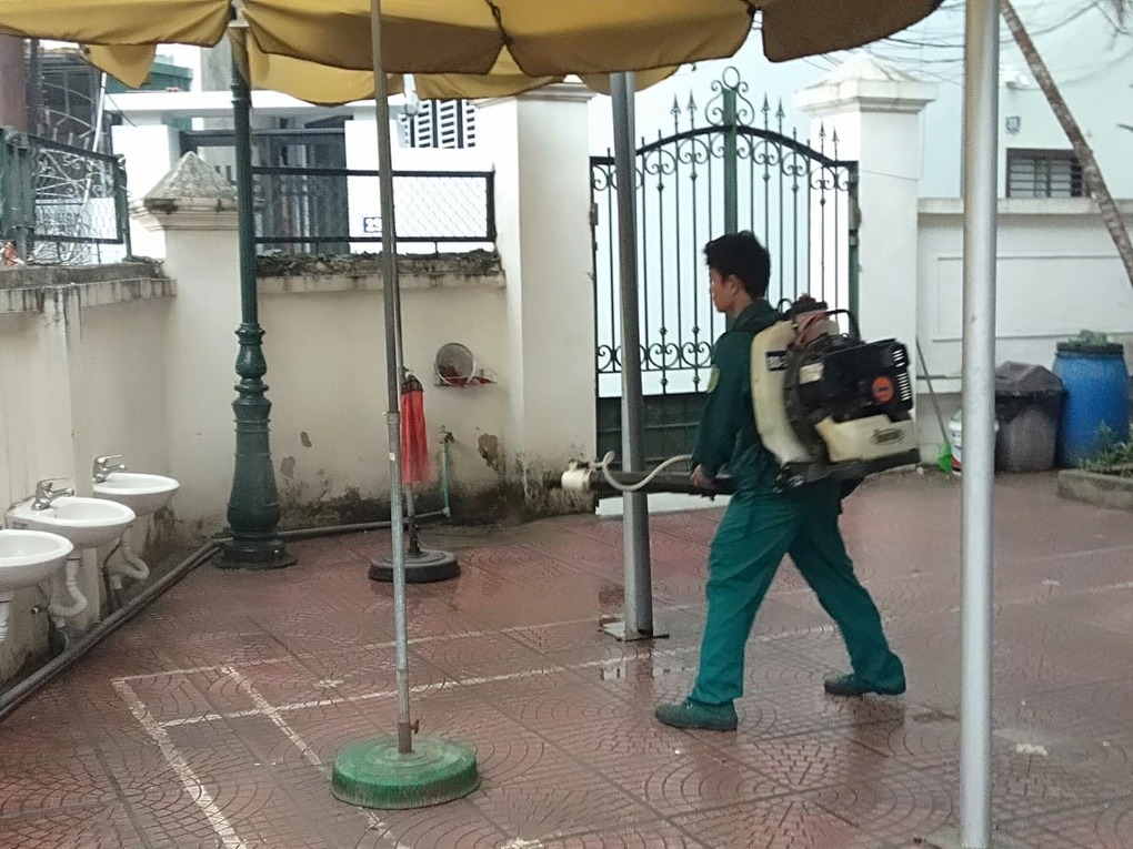 Hoạt động phun khử khuẩn tại trường Mầm non Sao Mai - Ba Đình