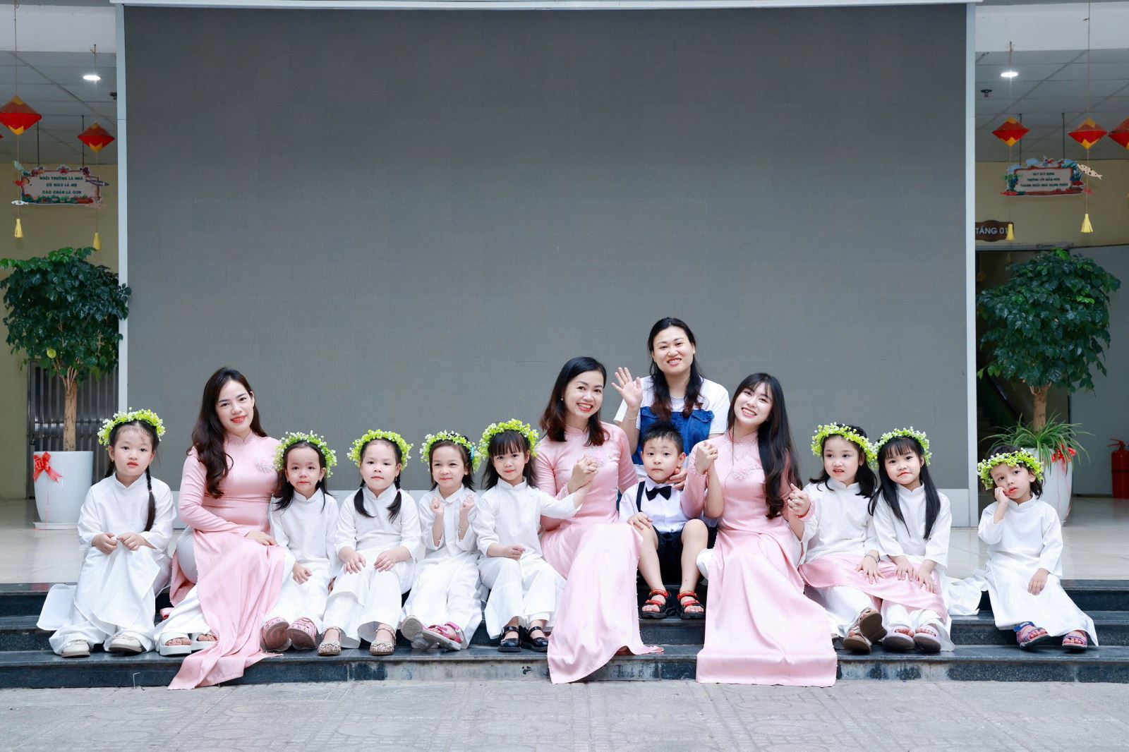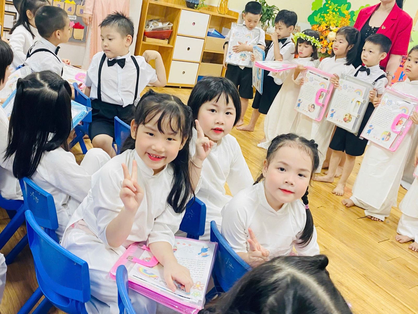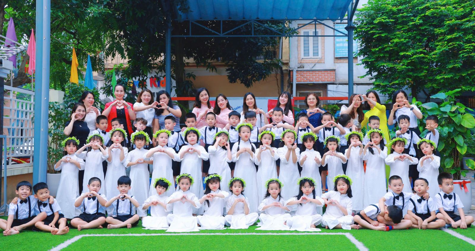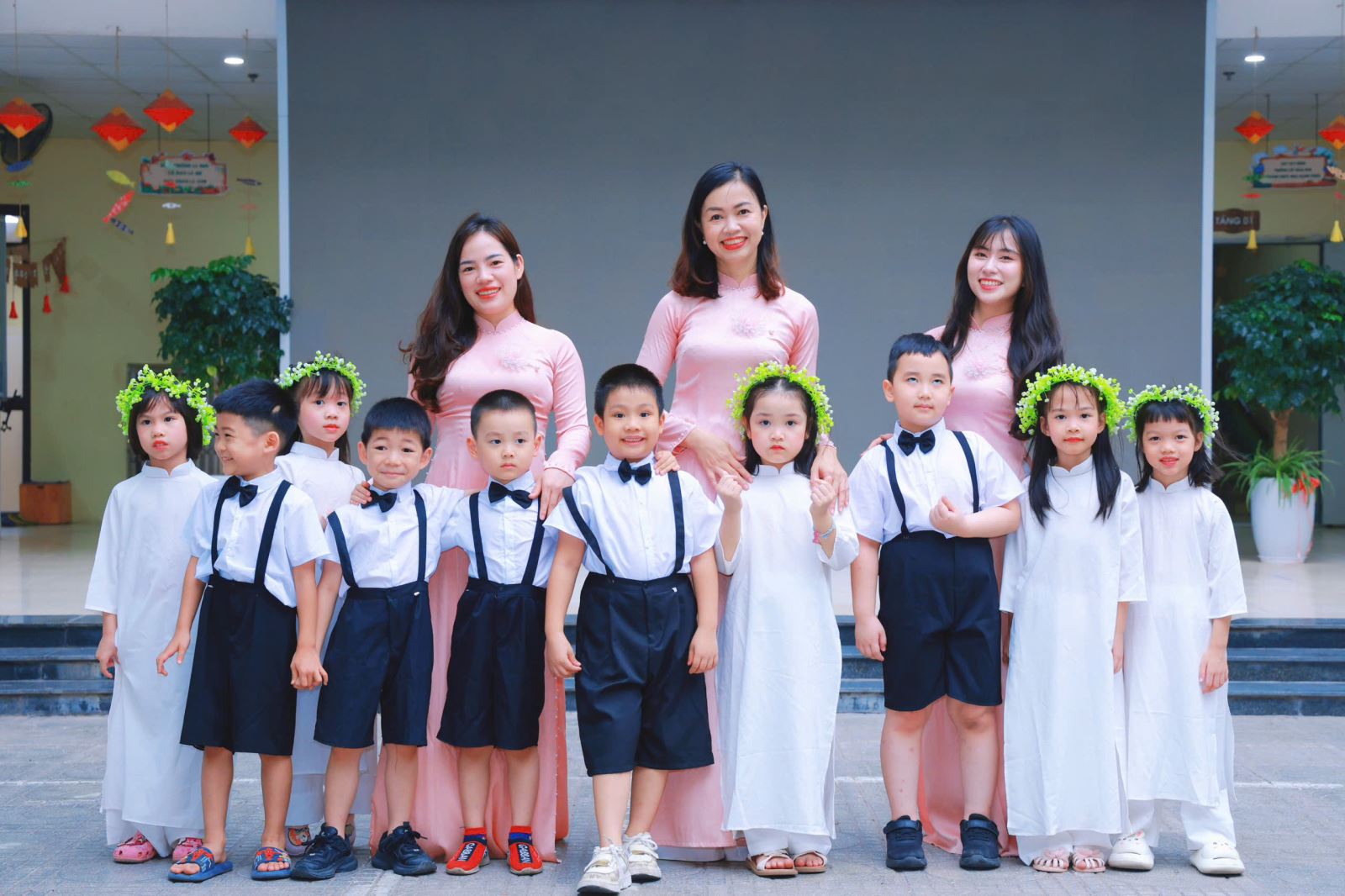 Tiếng hát, điệu múa của các bé vang lên như lời chào tạm biệt dịu dàng, như lời cảm ơn các cô giáo – người đã chăm chút từng giấc ngủ, từng bữa ăn, uốn nắn từng nét chữ đầu đời. Những bó hoa tươi thắm, những ánh mắt quyến luyến là minh chứng cho một năm học trọn vẹn nghĩa tình.