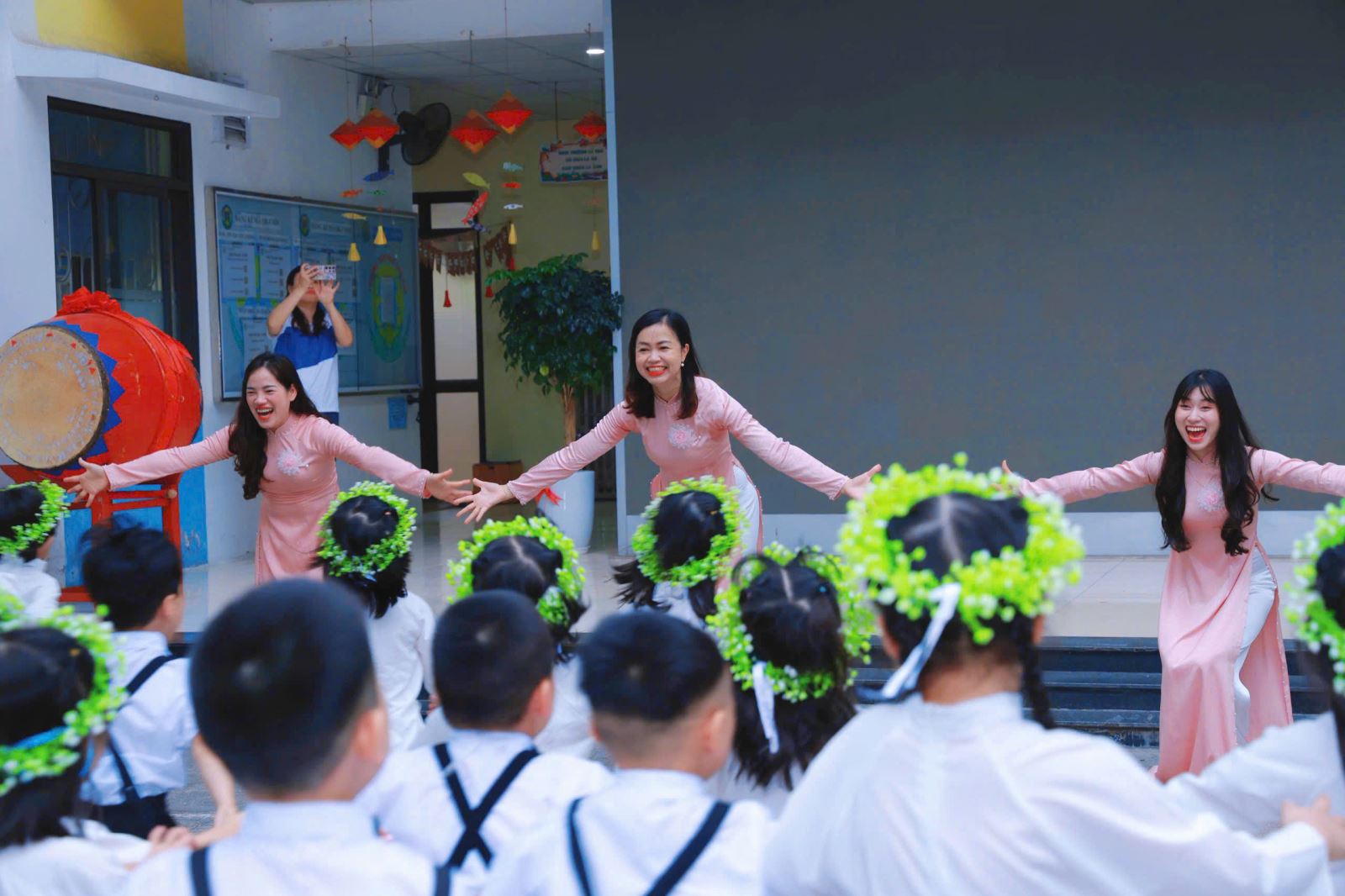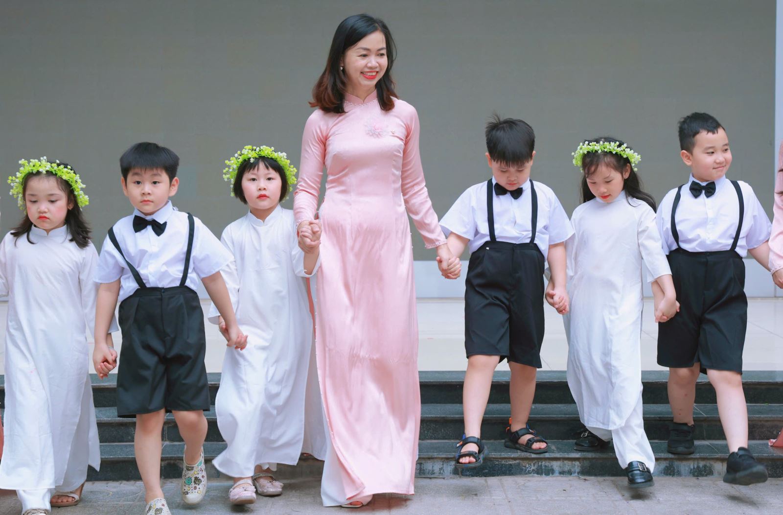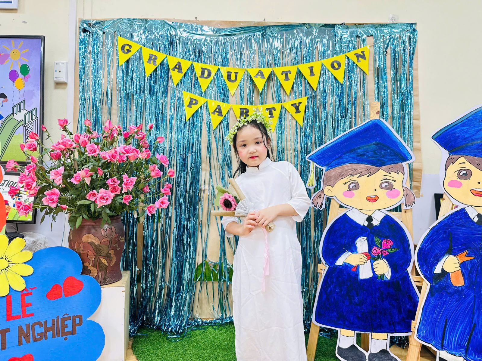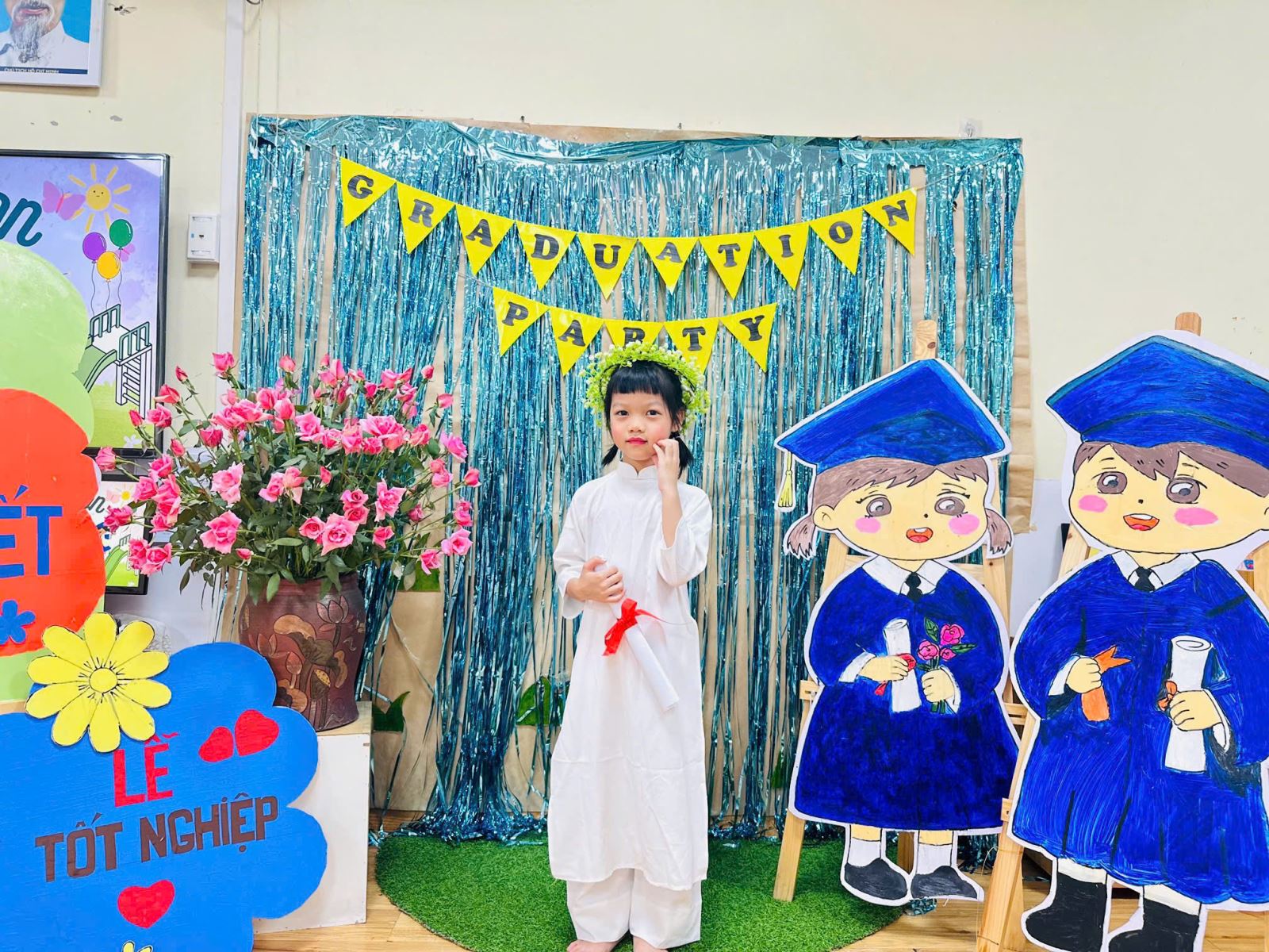 Tiếng hát, điệu múa của các bé vang lên như lời chào tạm biệt dịu dàng, như lời cảm ơn các cô giáo – người đã chăm chút từng giấc ngủ, từng bữa ăn, uốn nắn từng nét chữ đầu đời. Những bó hoa tươi thắm, những ánh mắt quyến luyến là minh chứng cho một năm học trọn vẹn nghĩa tình.