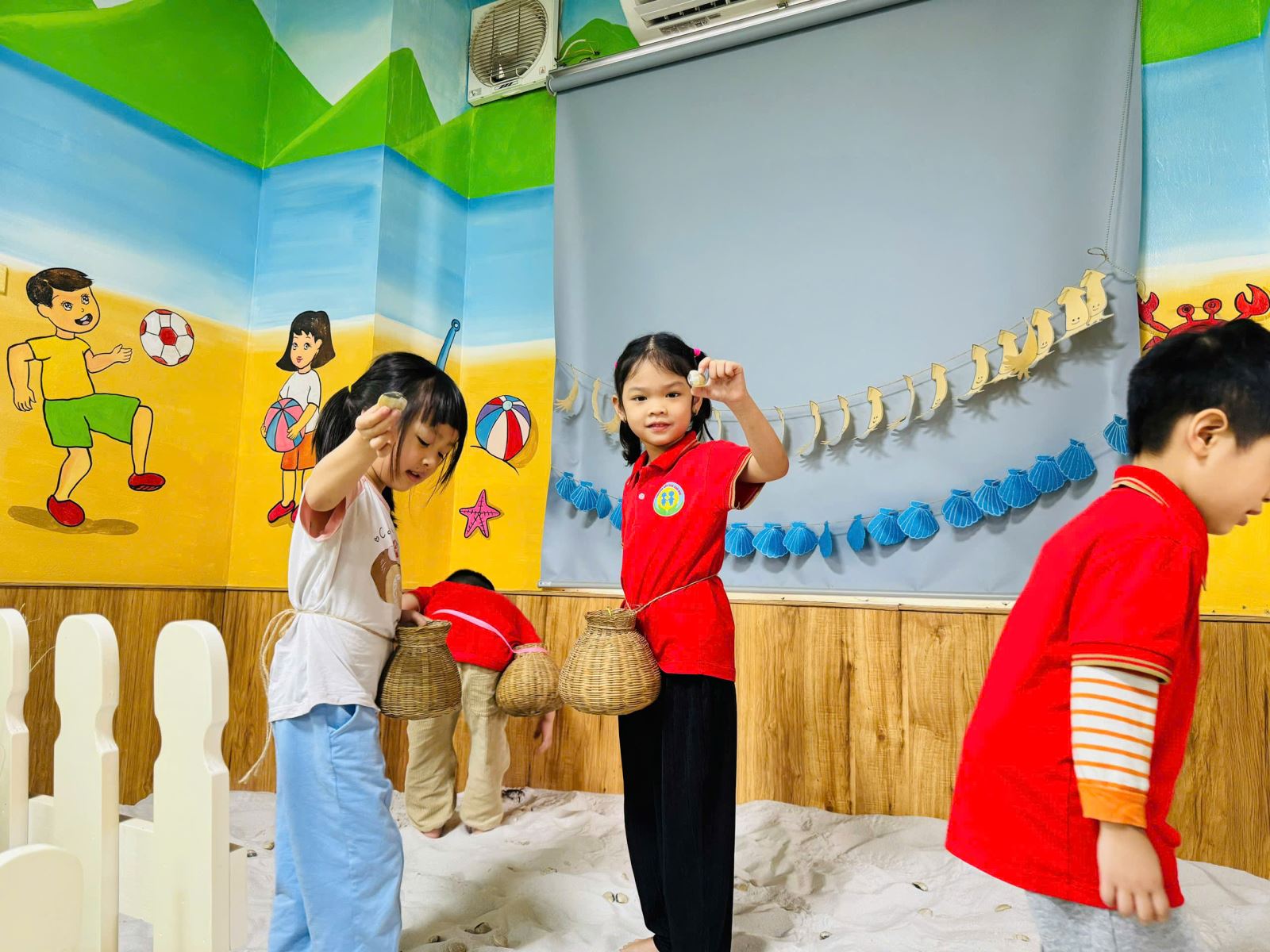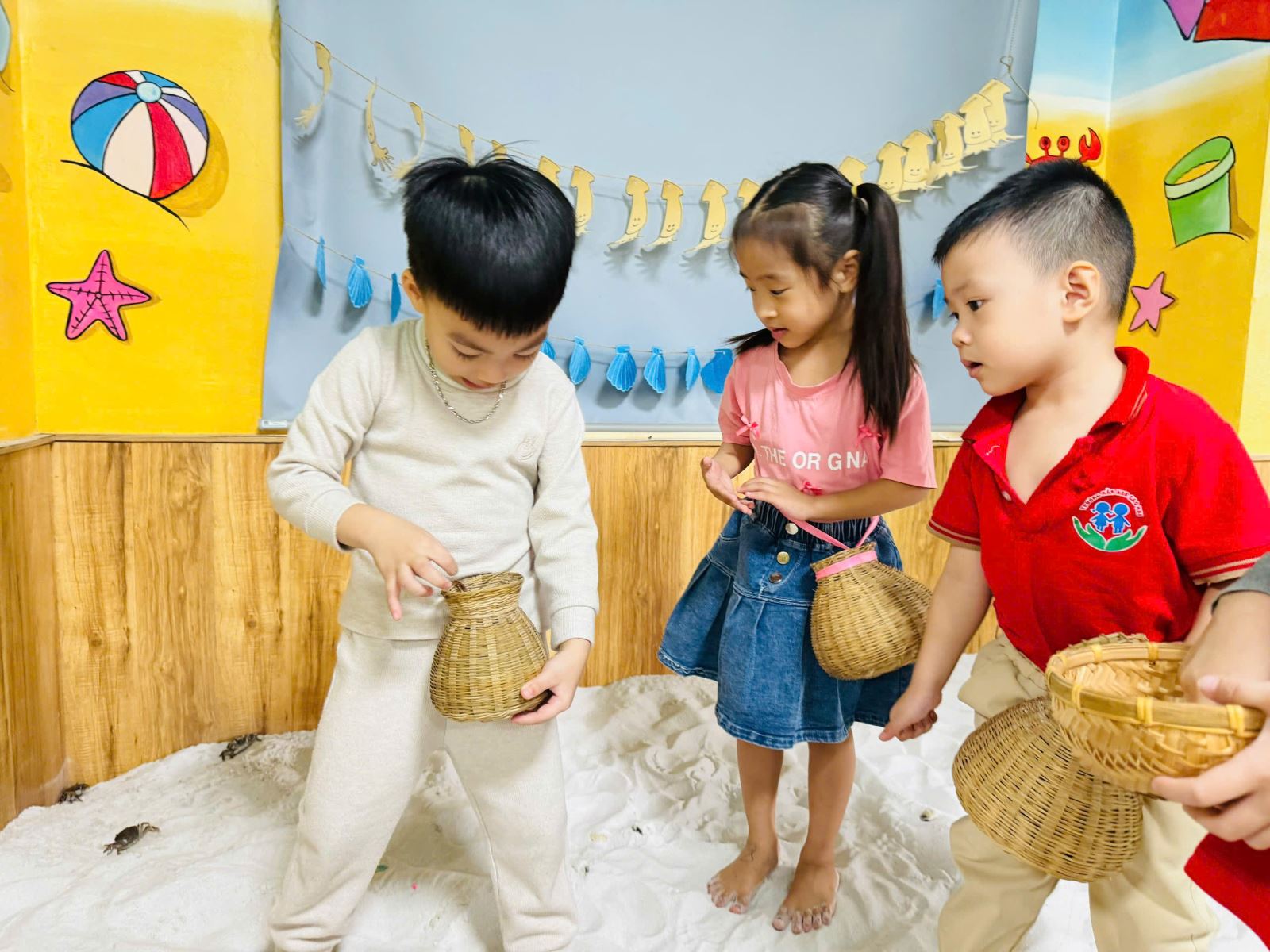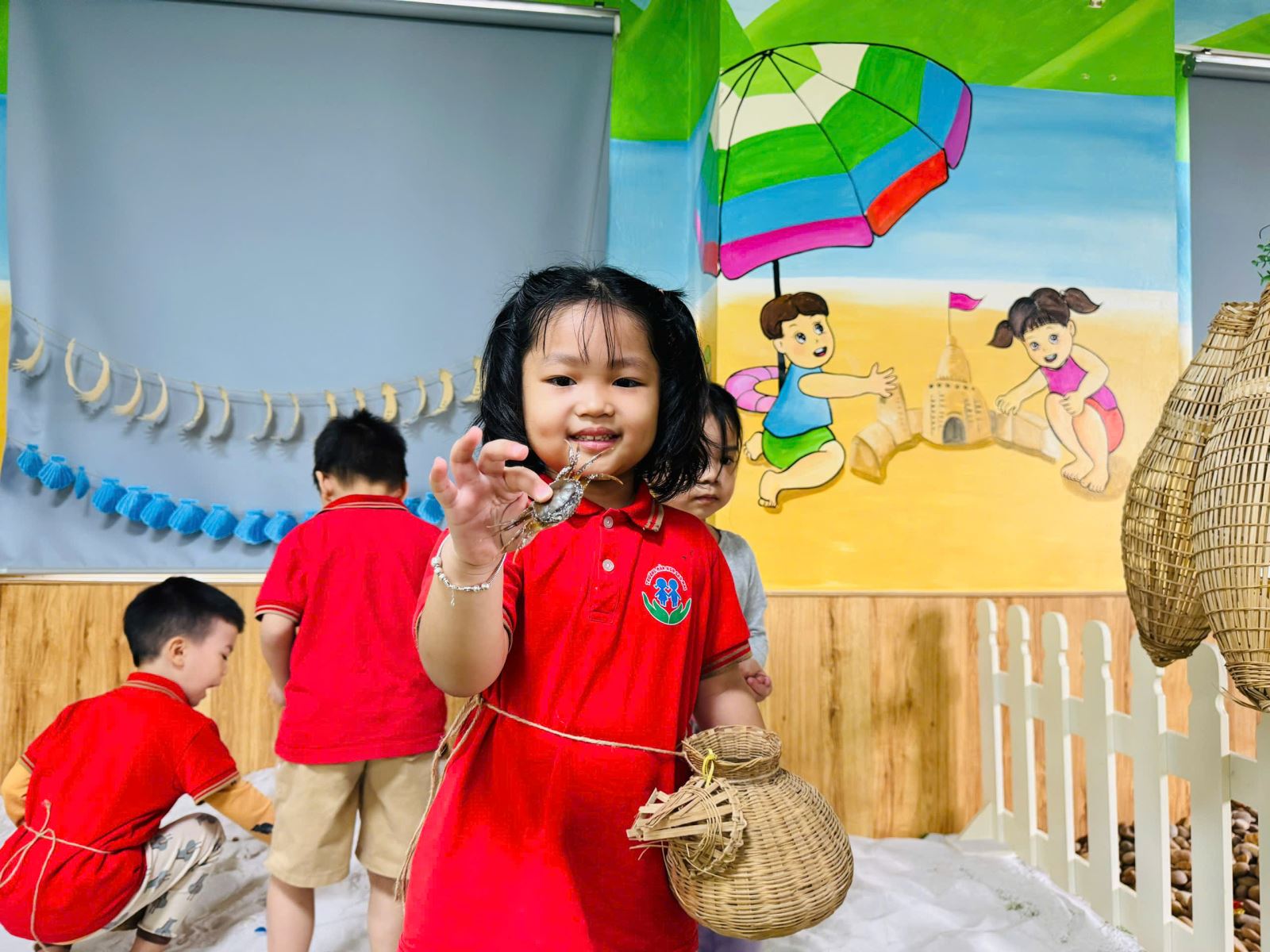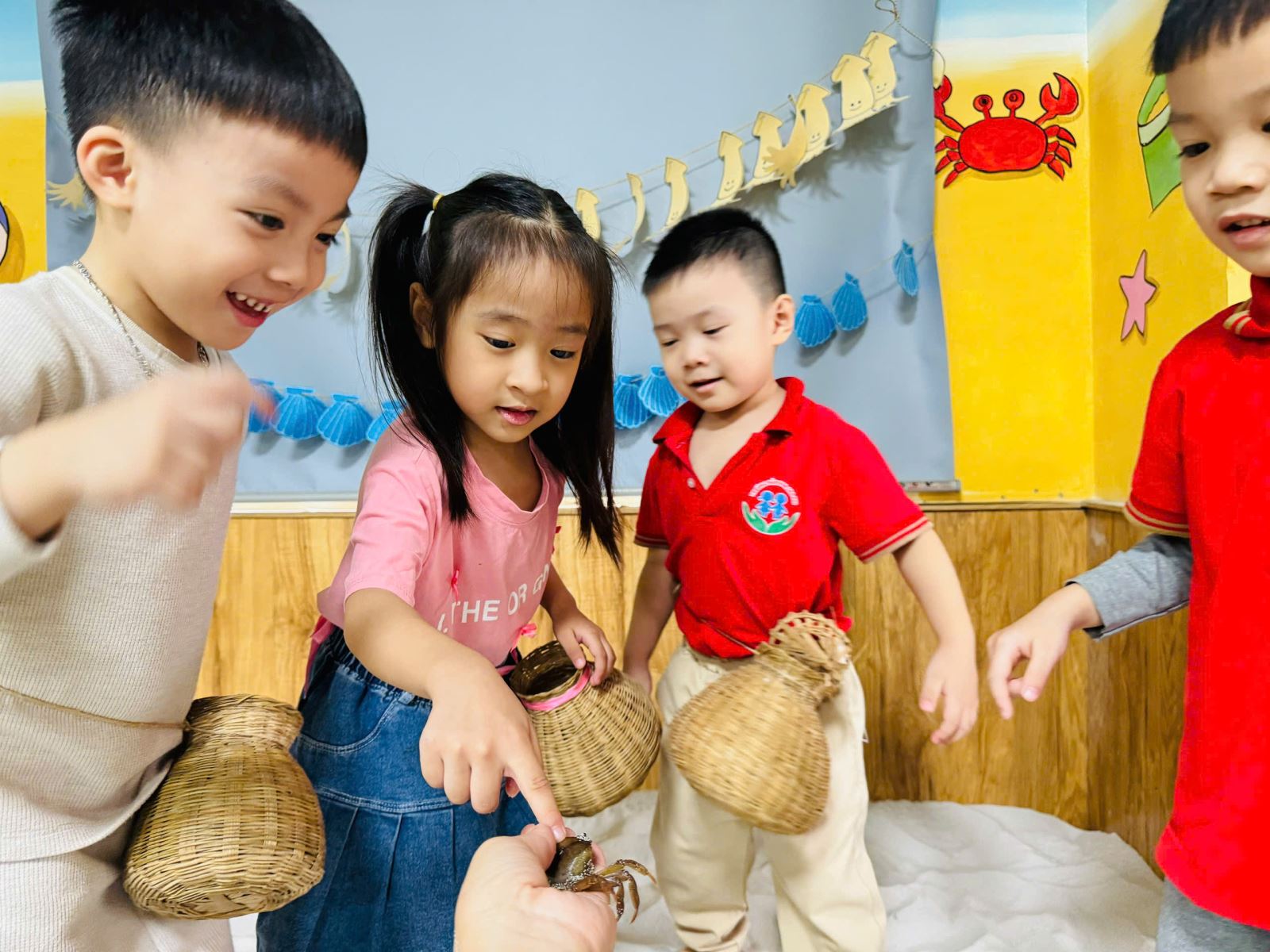 Với những con vật quen thuộc như ngao, cua và những vật dụng gắn liền với làng quê Việt Nam như: nón lá, đó, mẹt, thúng, giỏ tre...các bé yêu đã có 1 buổi trải nghiệm làm ngư dân thật tuyệt vời.
