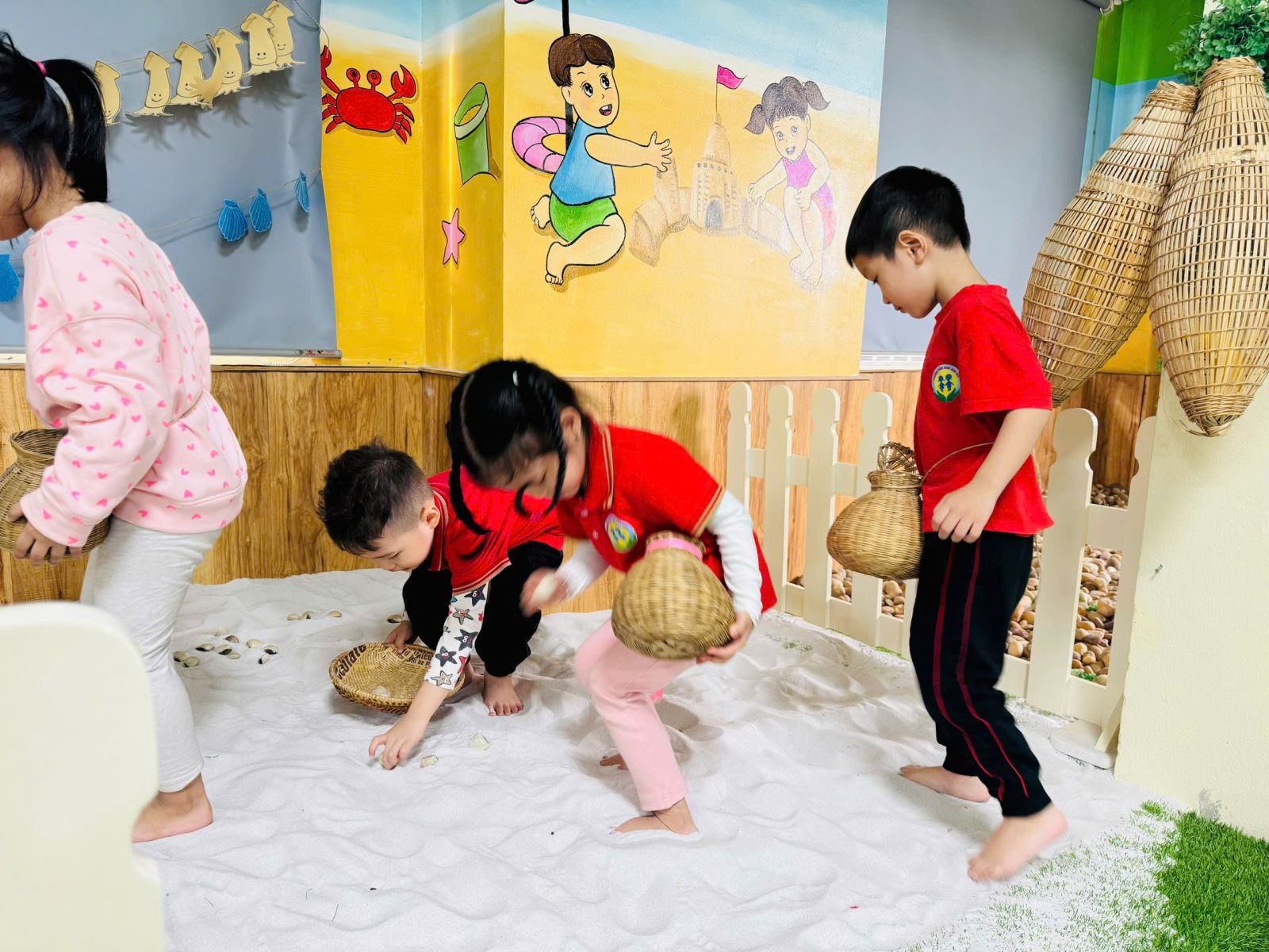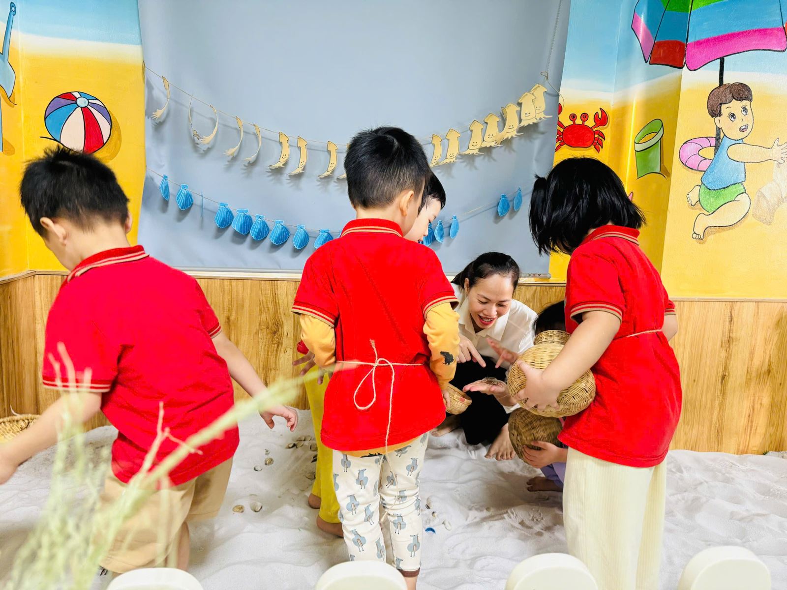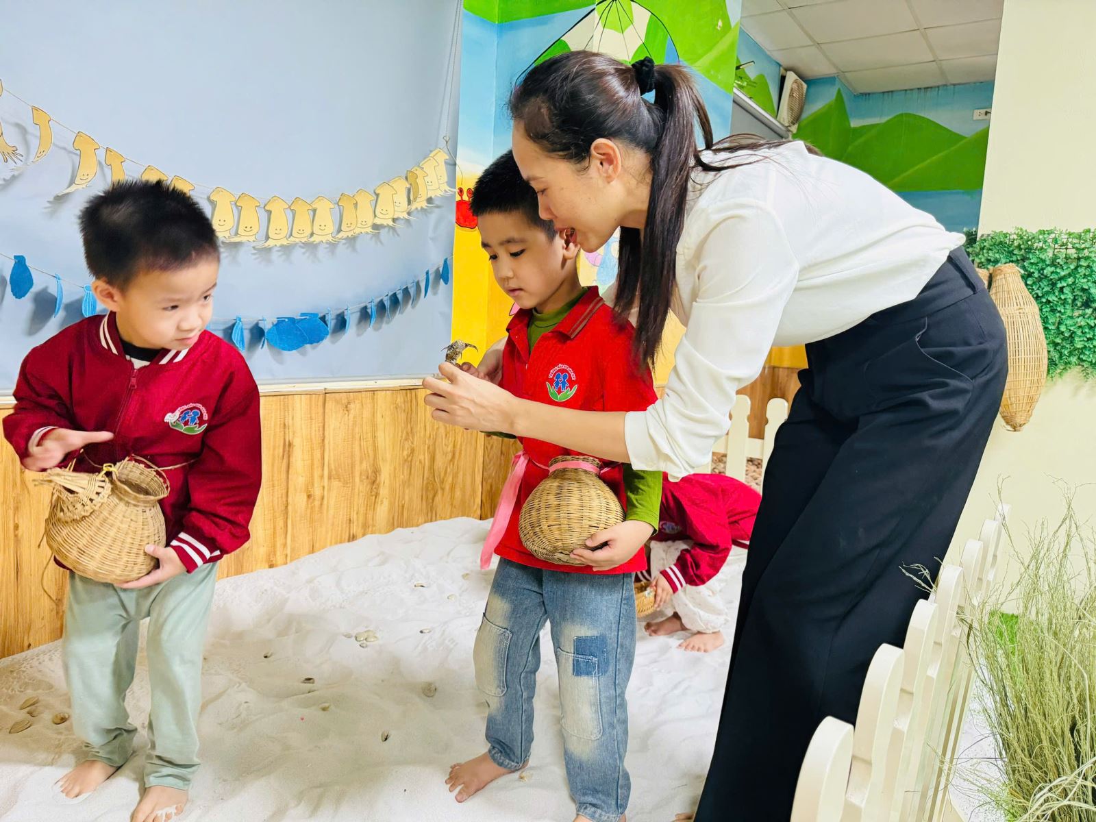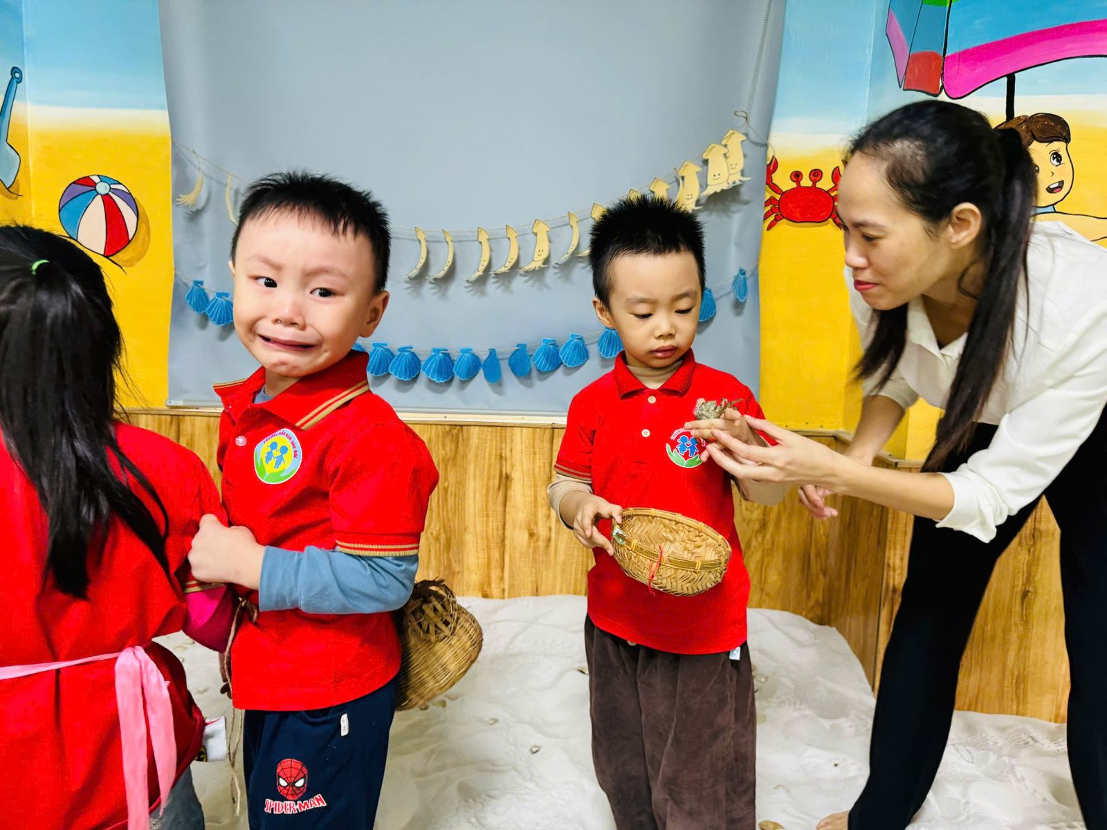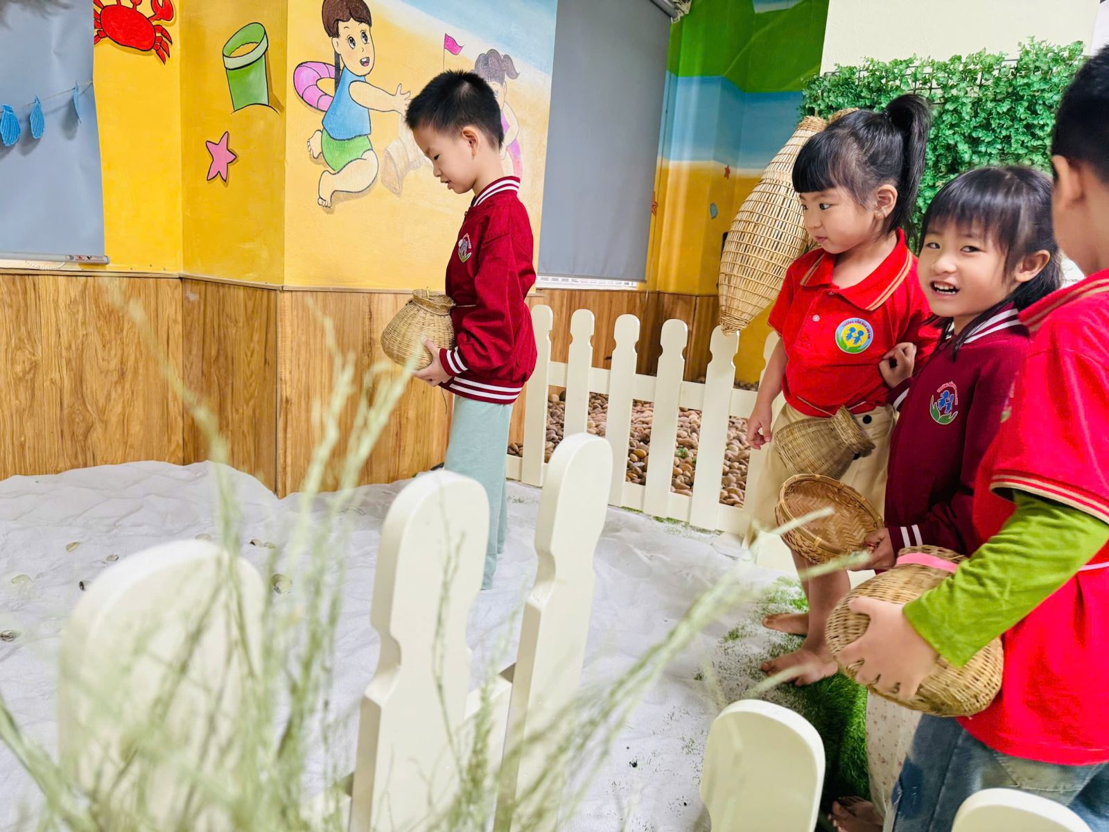 Với những con vật quen thuộc như ngao, cua và những vật dụng gắn liền với làng quê Việt Nam như: nón lá, đó, mẹt, thúng, giỏ tre...các bé yêu đã có 1 buổi trải nghiệm làm ngư dân thật tuyệt vời.