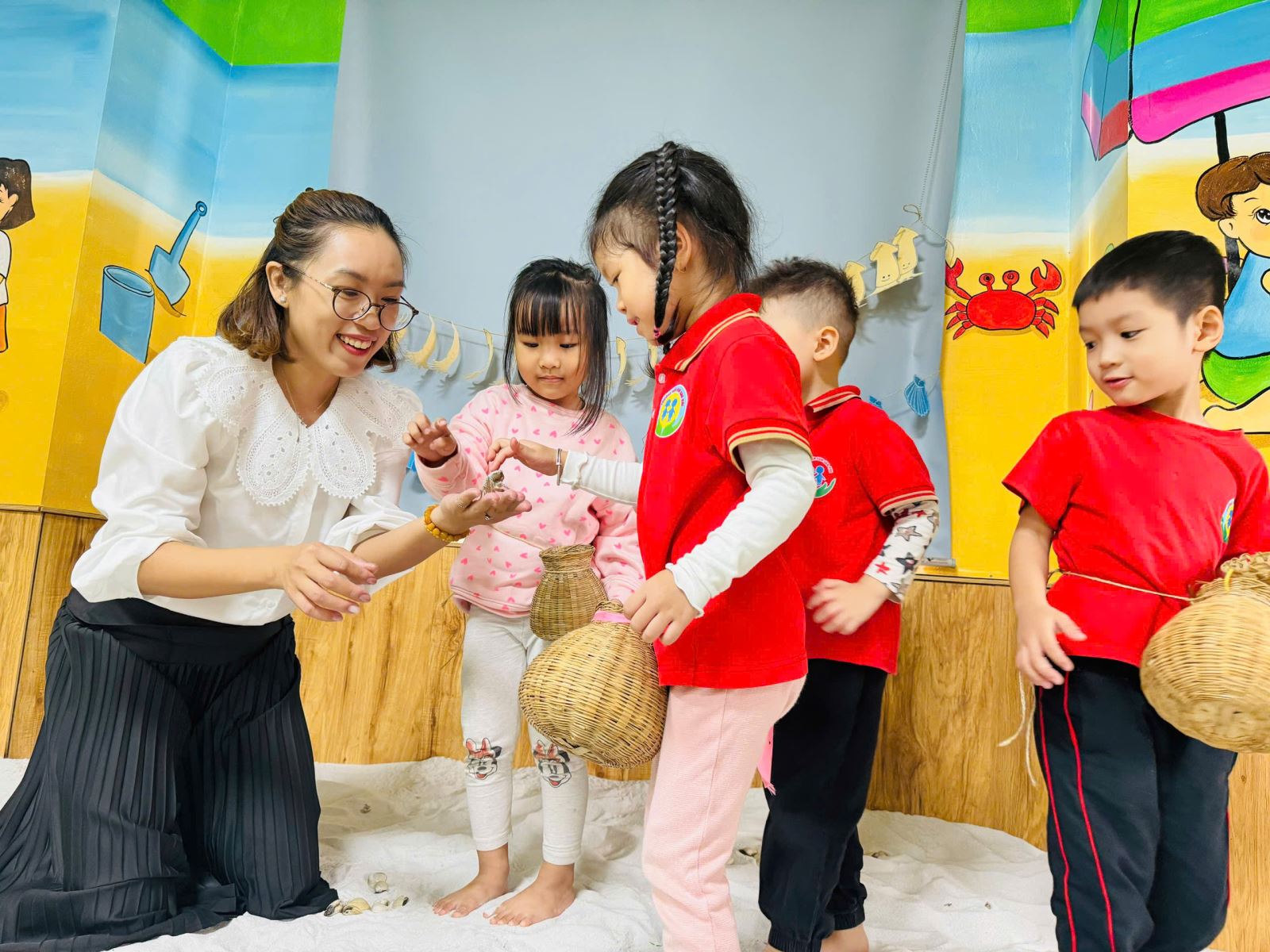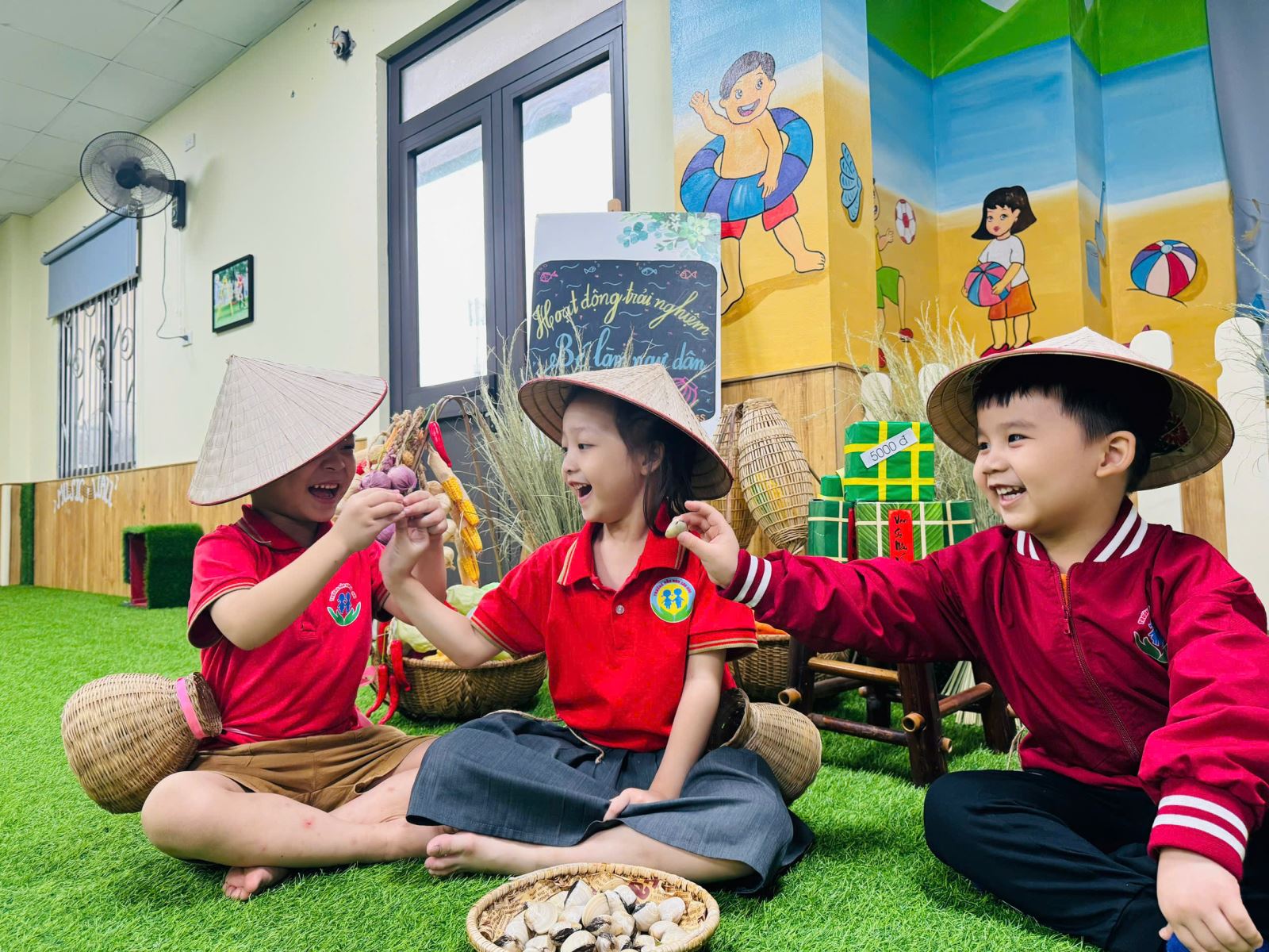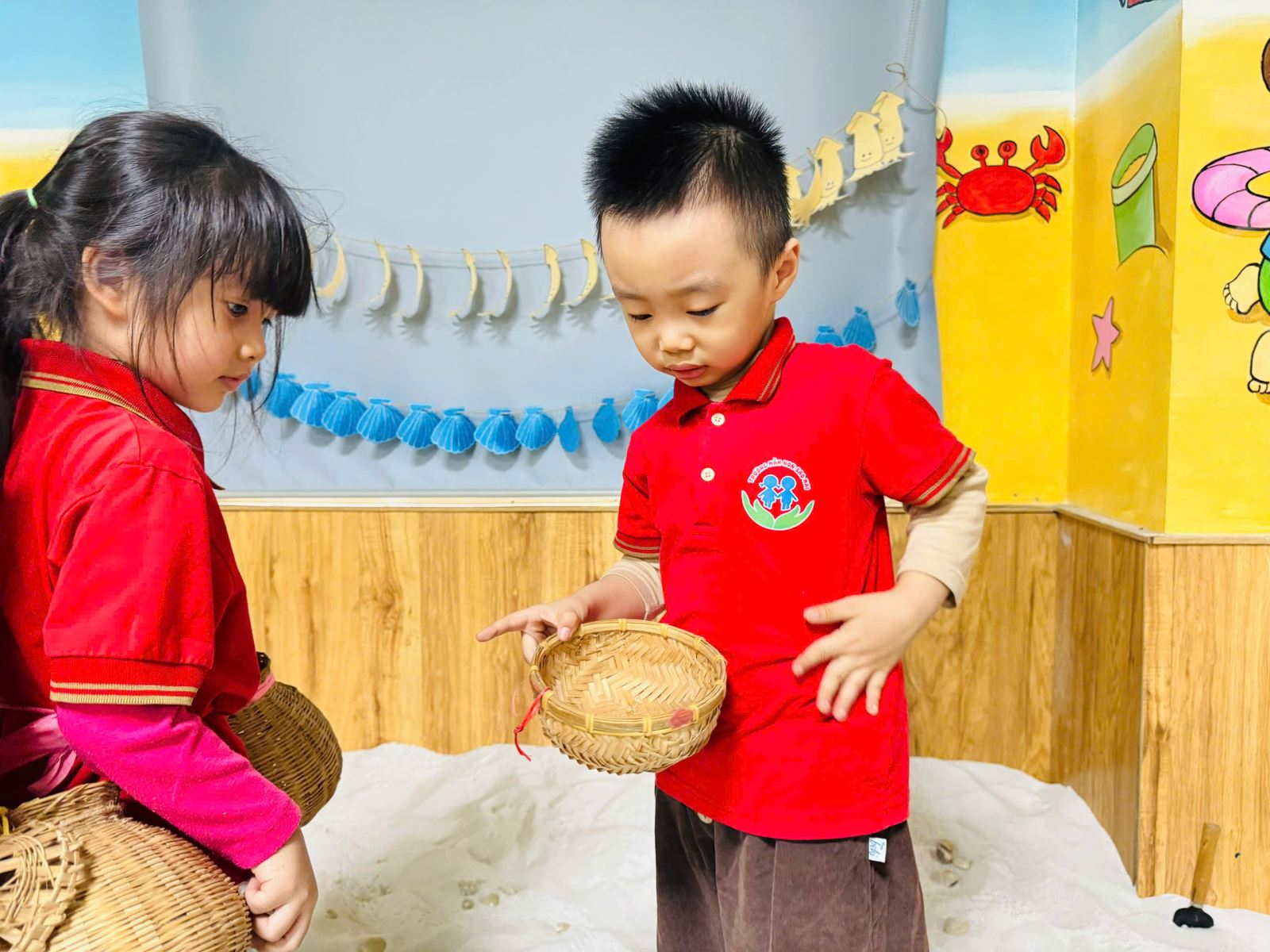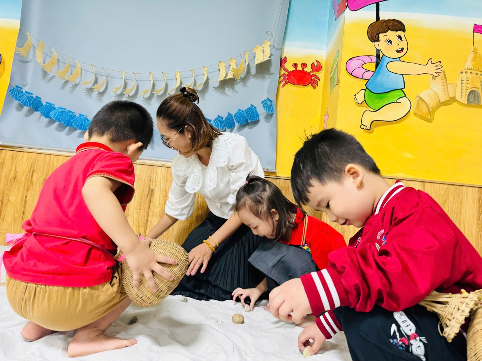 Với những con vật quen thuộc như ngao, cua và những vật dụng gắn liền với làng quê Việt Nam như: nón lá, đó, mẹt, thúng, giỏ tre...các bé yêu đã có 1 buổi trải nghiệm làm ngư dân thật tuyệt vời.