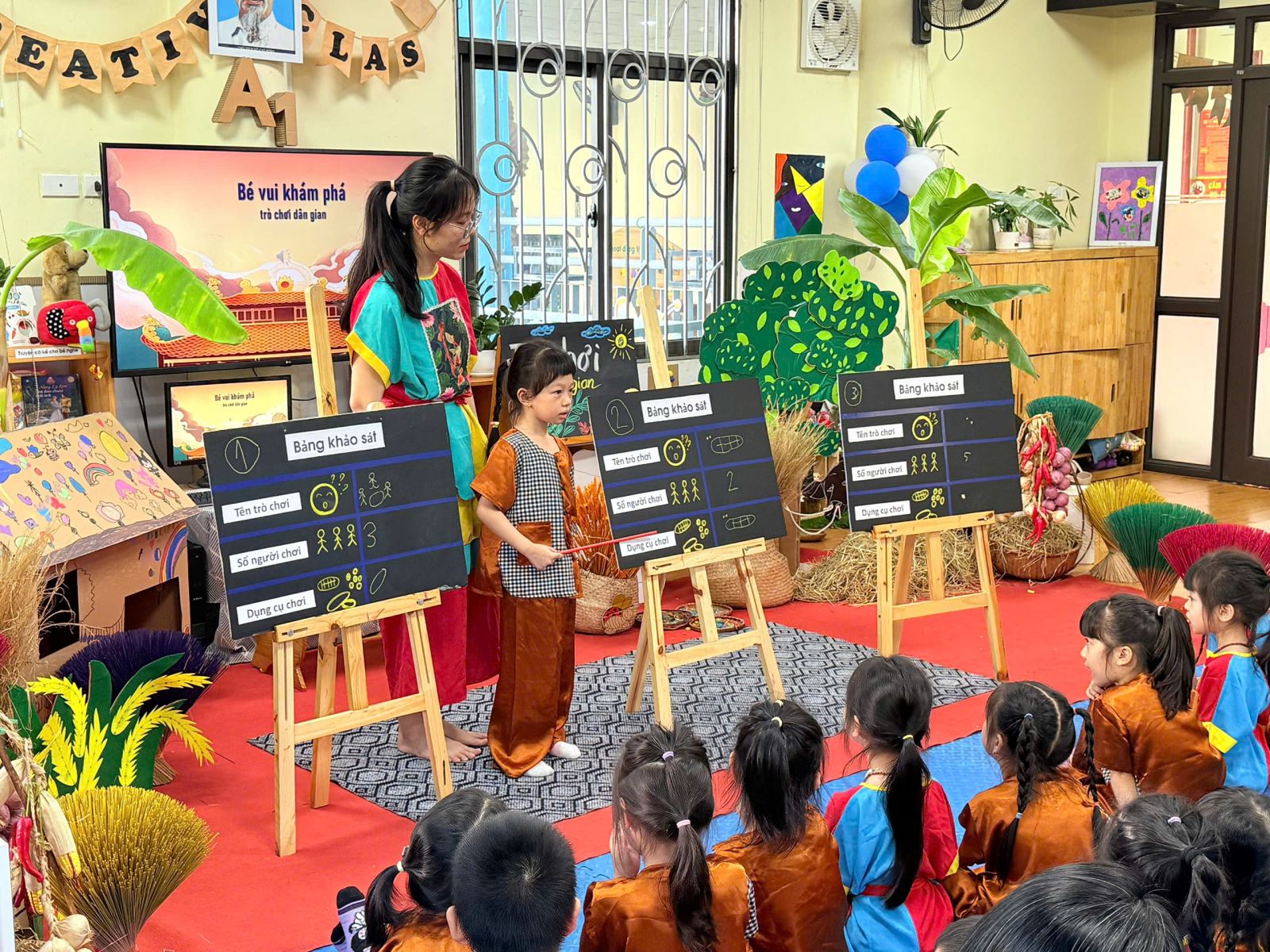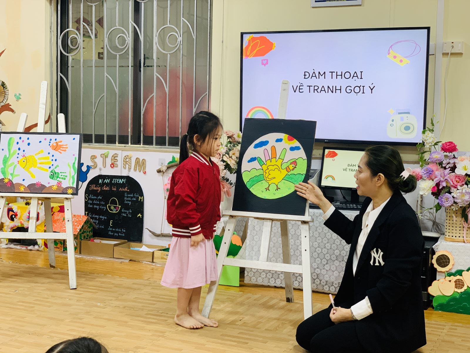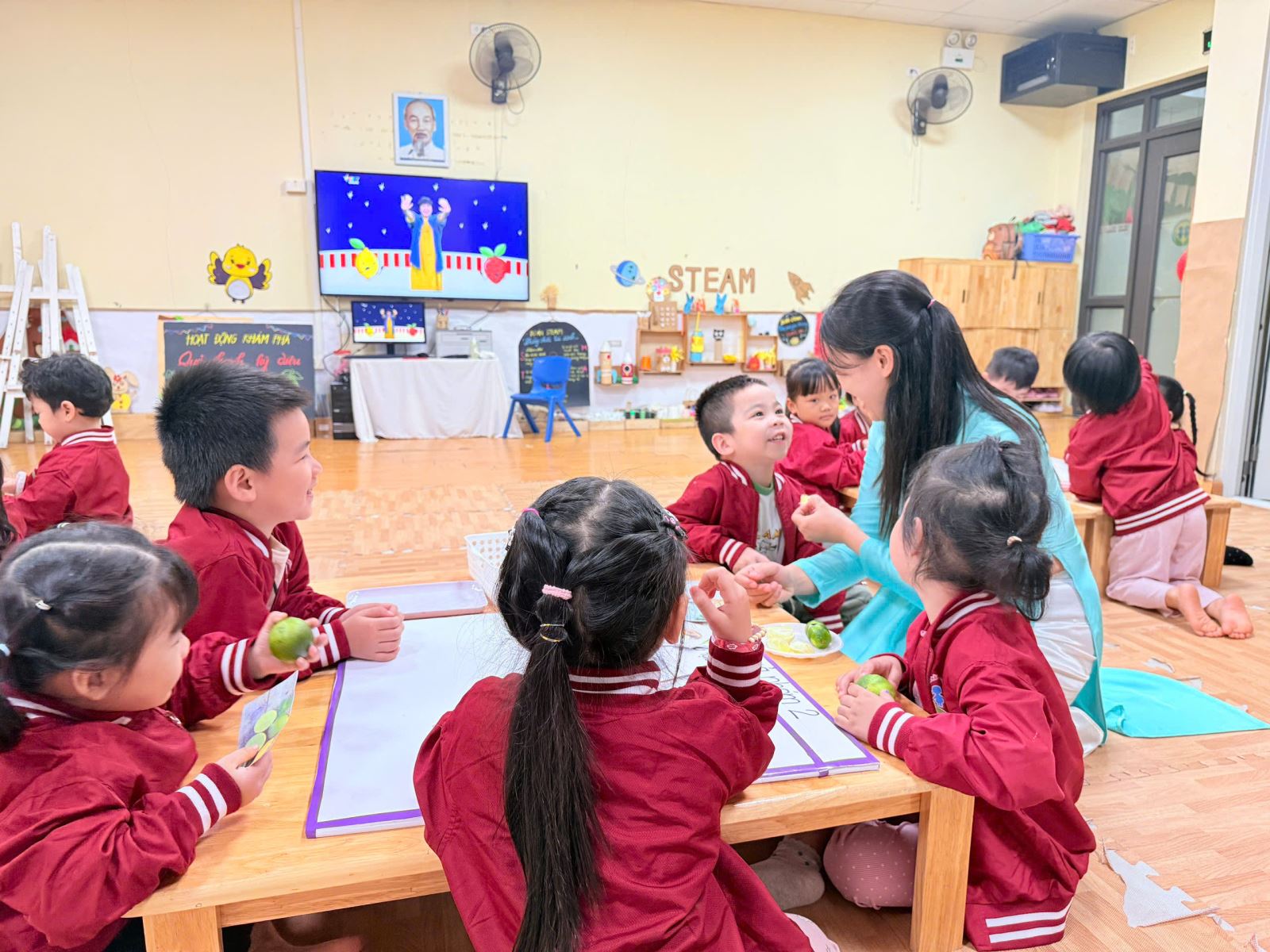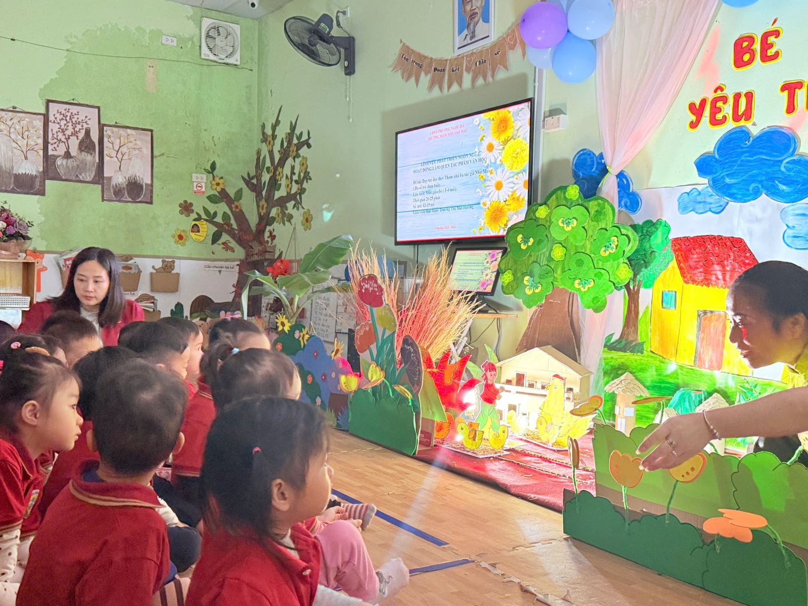 Trong đợt hội giảng năm nay, các hoạt động dạy học được chuẩn bị công phu, phong phú về nội dung và hình thức. Nhiều tiết dạy được đánh giá cao nhờ khai thác hiệu quả phương pháp giáo dục lấy trẻ làm trung tâm, ứng dụng linh hoạt trò chơi, trải nghiệm thực tế và tích hợp văn hóa dân gian vào hoạt động học. Trẻ được tham gia khám phá, thảo luận, thực hành, qua đó phát huy tính mạnh dạn, sáng tạo và niềm yêu thích học tập.