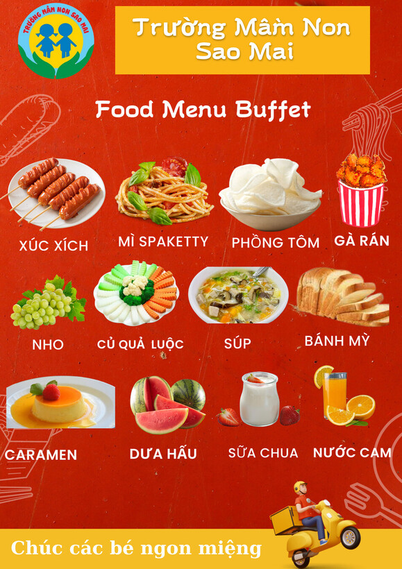 Thực đơn Tiệc Buffe của bé Chào Xuân Quý Mão của cô và trò Trường Mầm non Sao Mai.